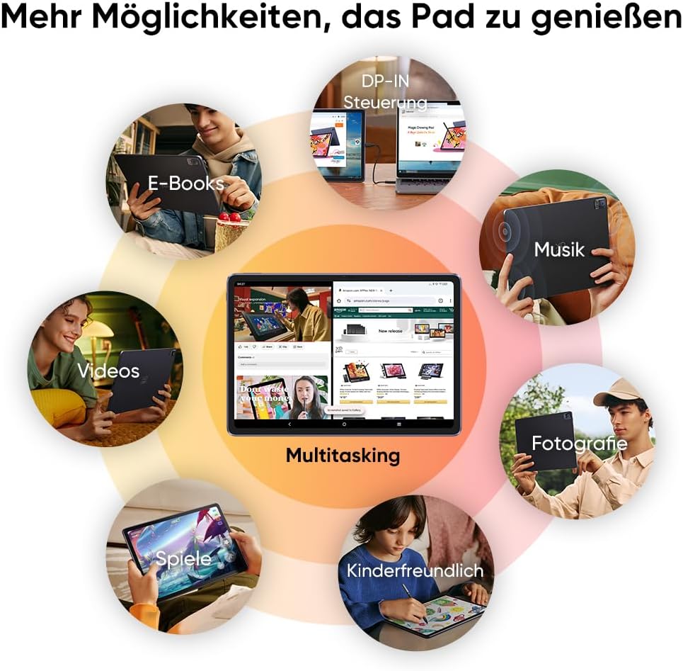 • Още начини за използване на подложката: електронни книги, видеоклипове, игри, музика, фотография - каквото се сетите! Поддържа два прозореца, което ви позволява да извършвате много задачи едновременно без усилие. Подходяща е и за деца, тъй като разполага с режим на четене и устойчив на падане корпус за допълнителна защита.