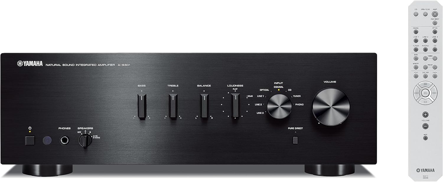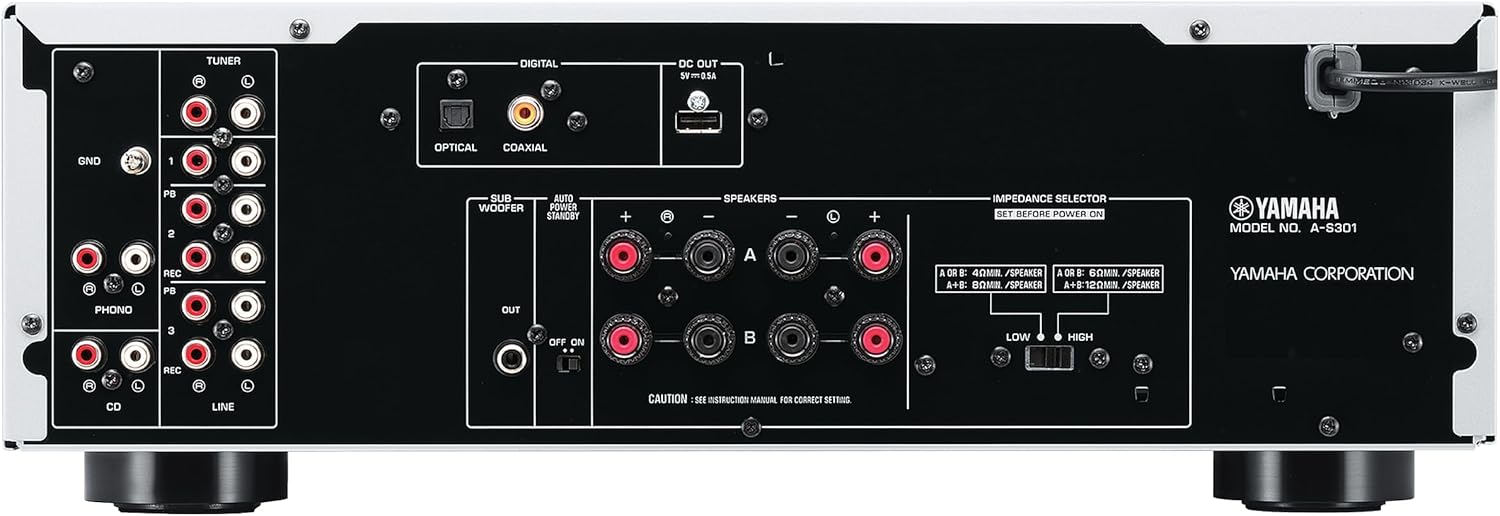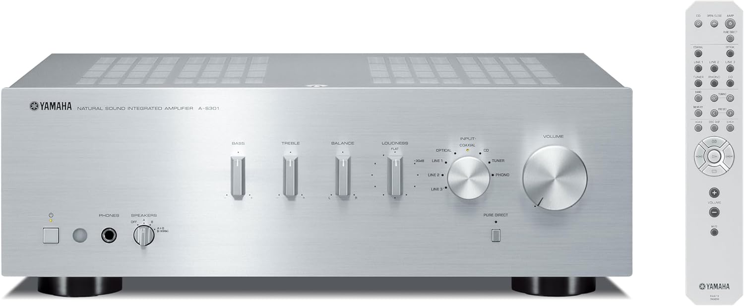 • Съдържание на кутията: Yamaha A-S301 стерео усилвател, включително D/A конвертор, сребрист, дистанционно управление, 2 батерии (AA), ръководство за употреба (английски език не е гарантиран)