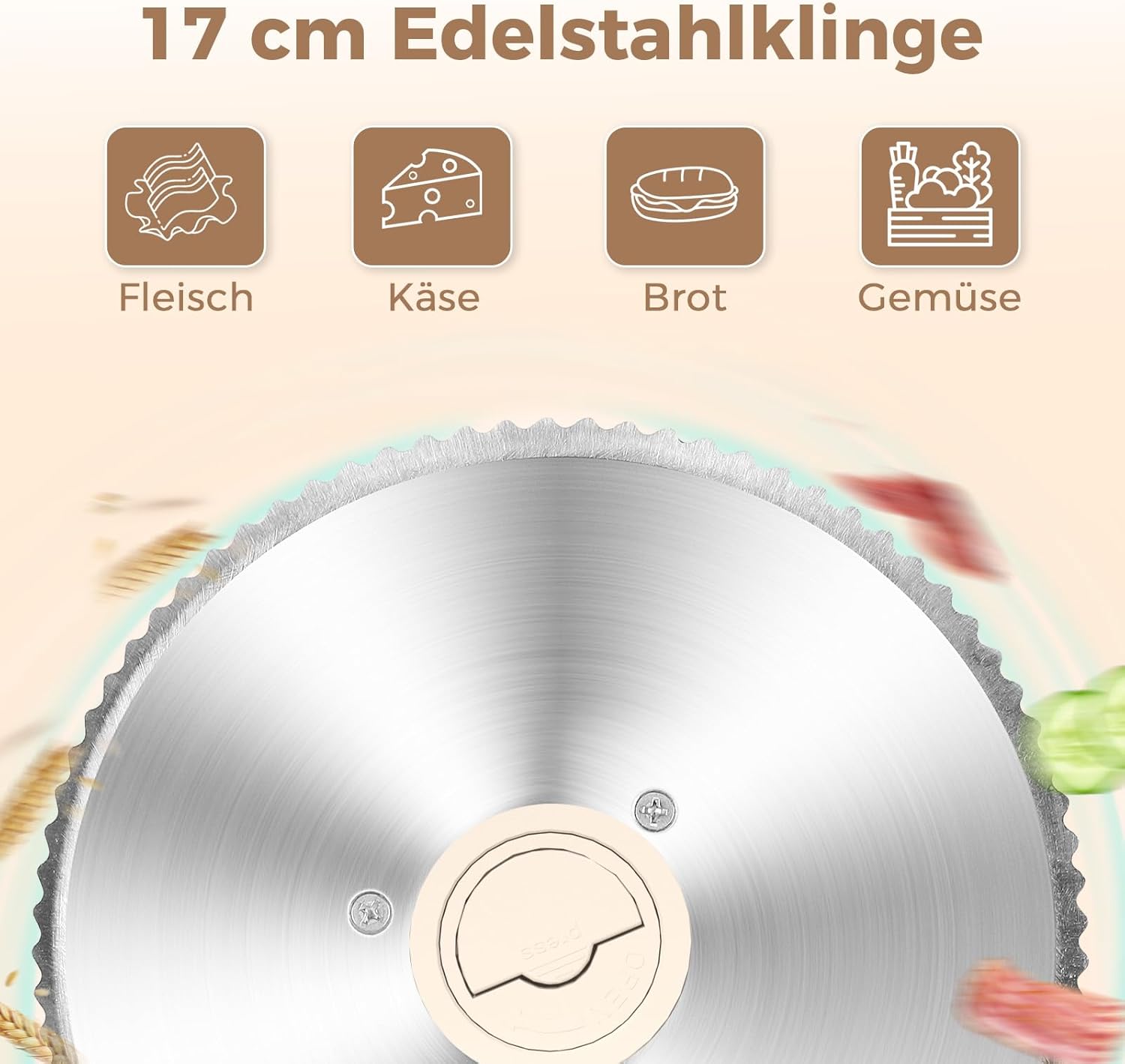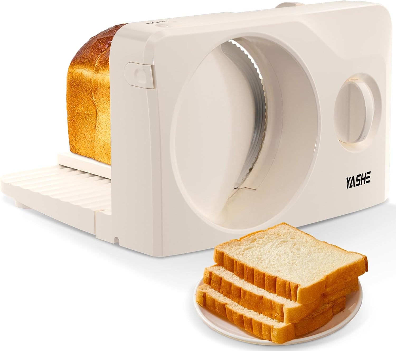 YASHE Електрическа сгъваема универсална резачка за хляб, 180 W резачка за хляб с назъбено острие 17 см, регулируема дебелина на рязане 0-15 мм, за месо, сирене, хляб, зеленчуци