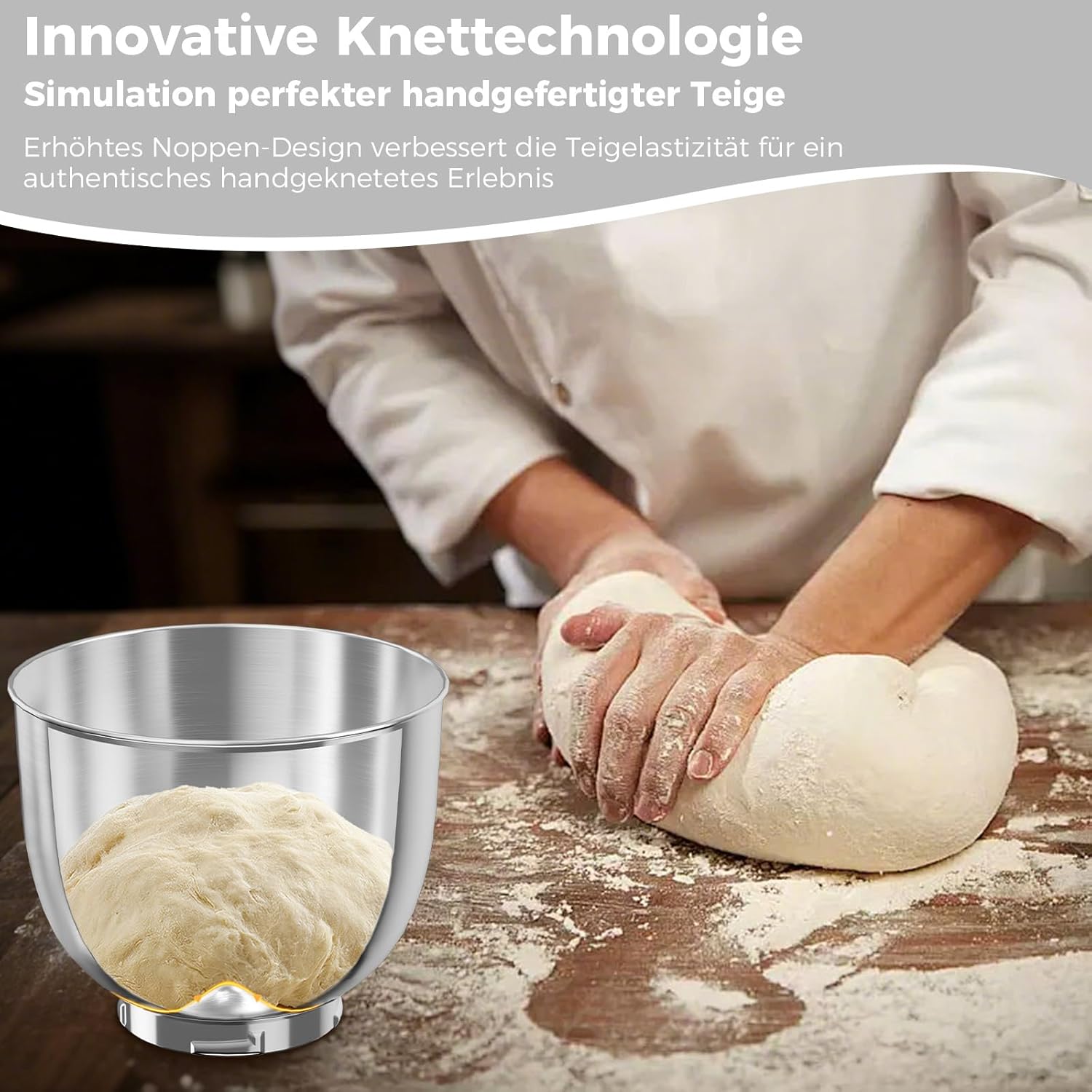 • Универсален дизайн с двойна купа: кухненският робот YASHE е оборудван с две купи за смесване - купа от неръждаема стомана с обем 4,5 л и 5 л. Идеален за едновременно приготвяне на множество рецепти. Компактният дизайн с възможност за подреждане улеснява съхранението и ви позволява да обработвате различни съставки поотделно.
