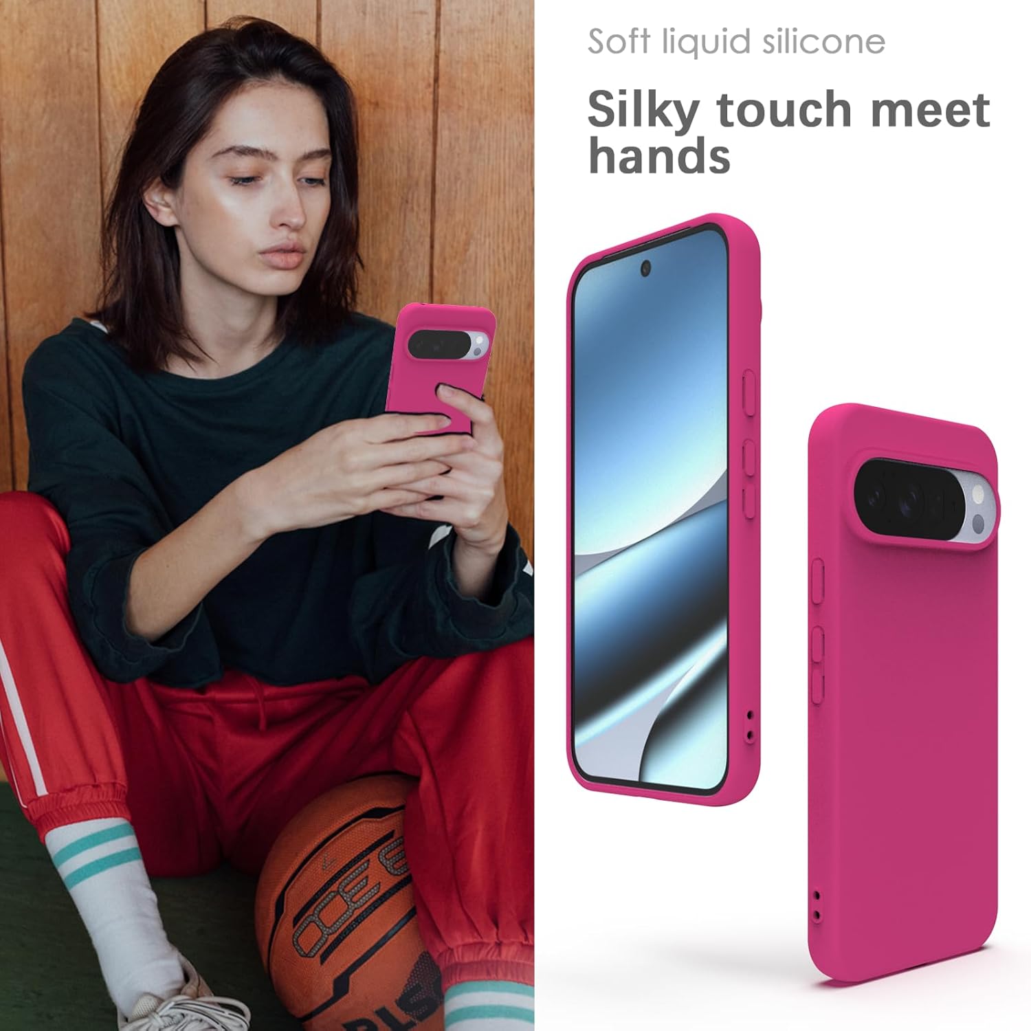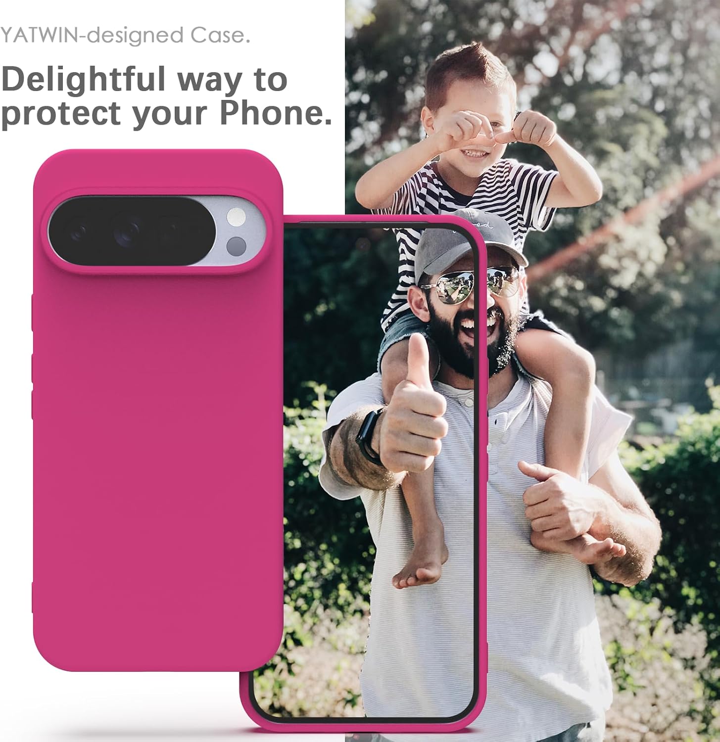 YATWIN калъф за Google Pixel 10 Pro XL, първокласен силиконов калъф за мобилен телефон със защита на камерата, копринен, мек на допир, ултра тънък, удароустойчив, устойчив на надраскване, защитен калъф, магента