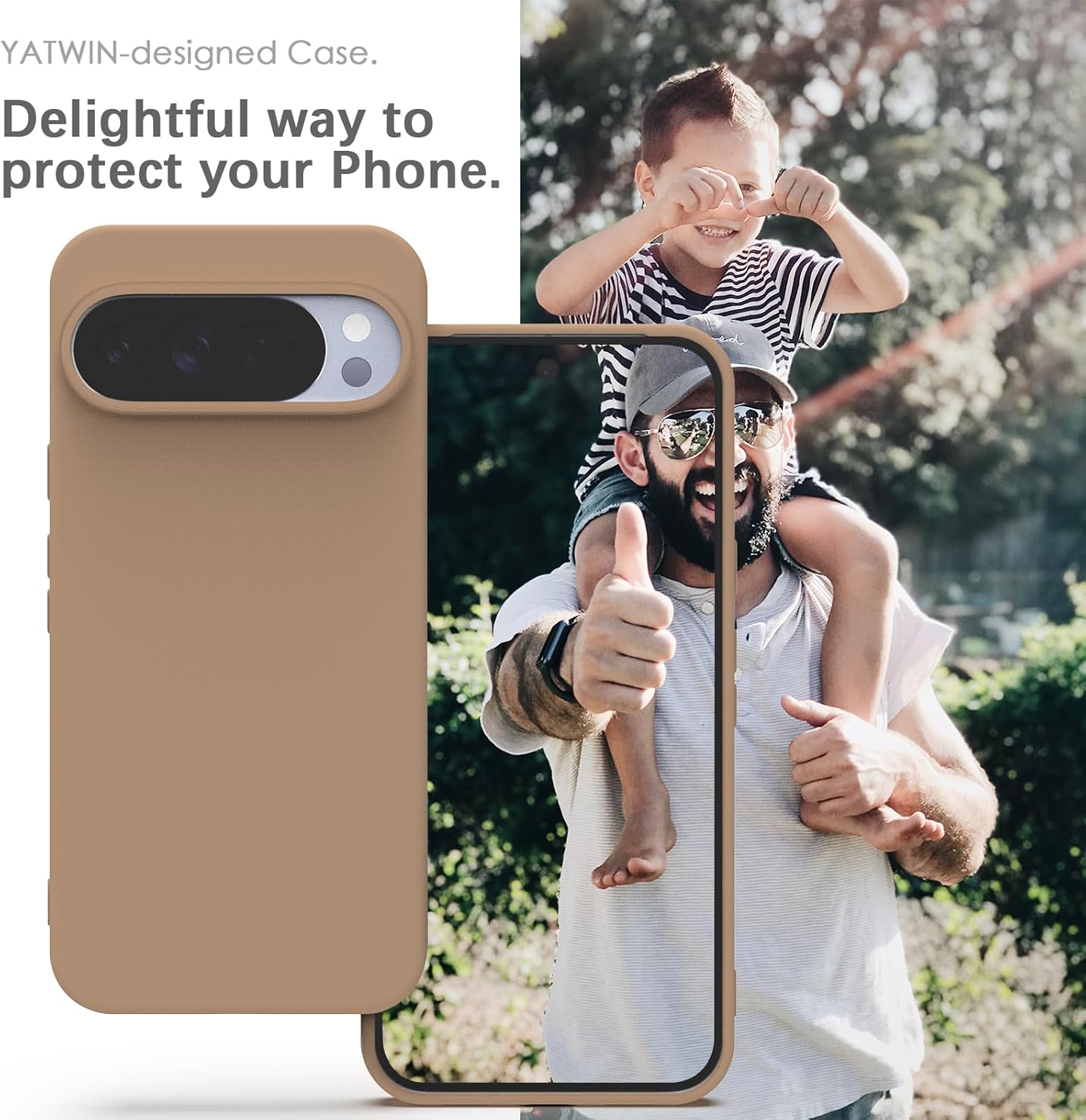 YATWIN калъф за Google Pixel 10 Pro XL, първокласен силиконов калъф за мобилен телефон със защита на камерата, копринен, мек на допир, ултра тънък, удароустойчив, устойчив на надраскване, защитен калъф, цвят чай с мляко