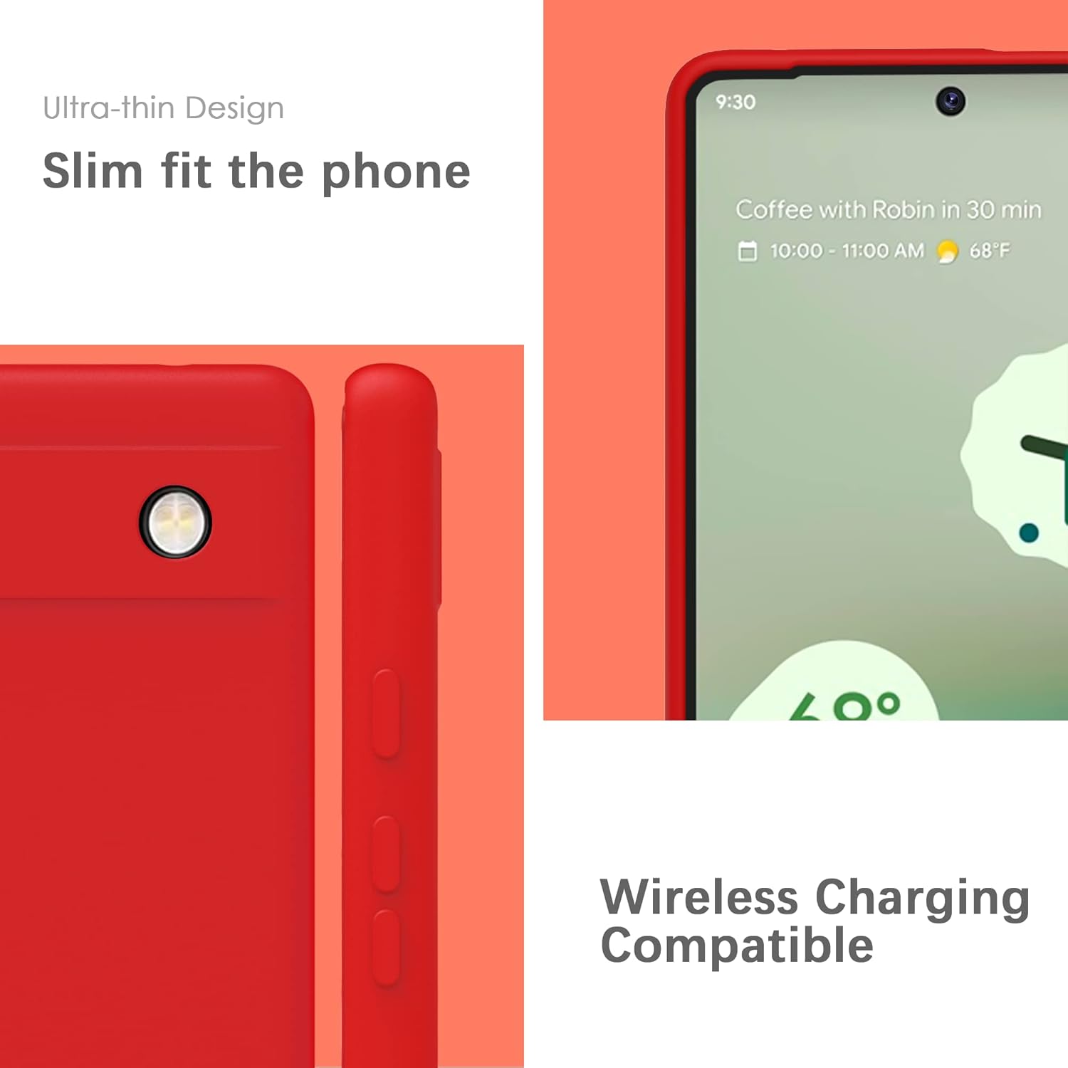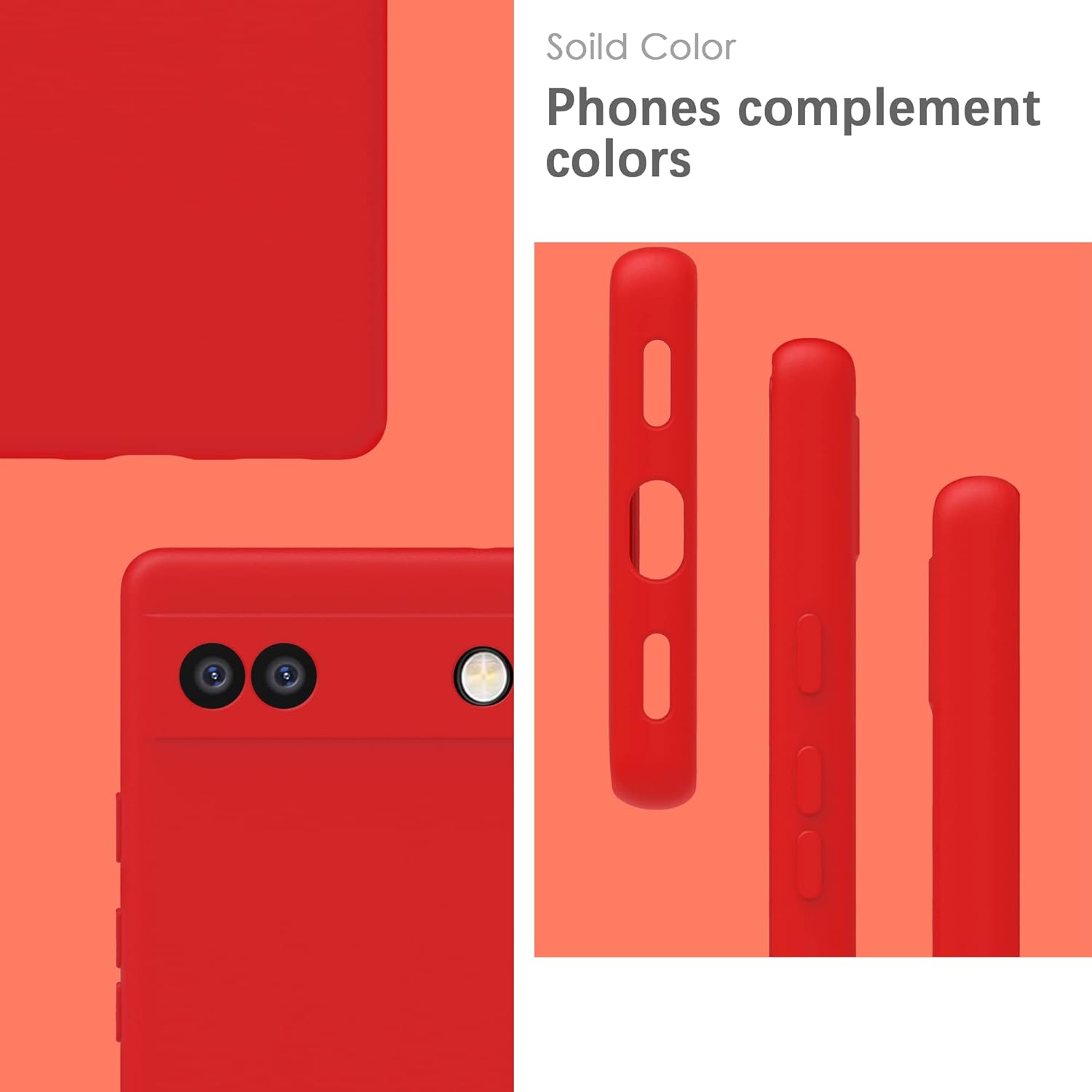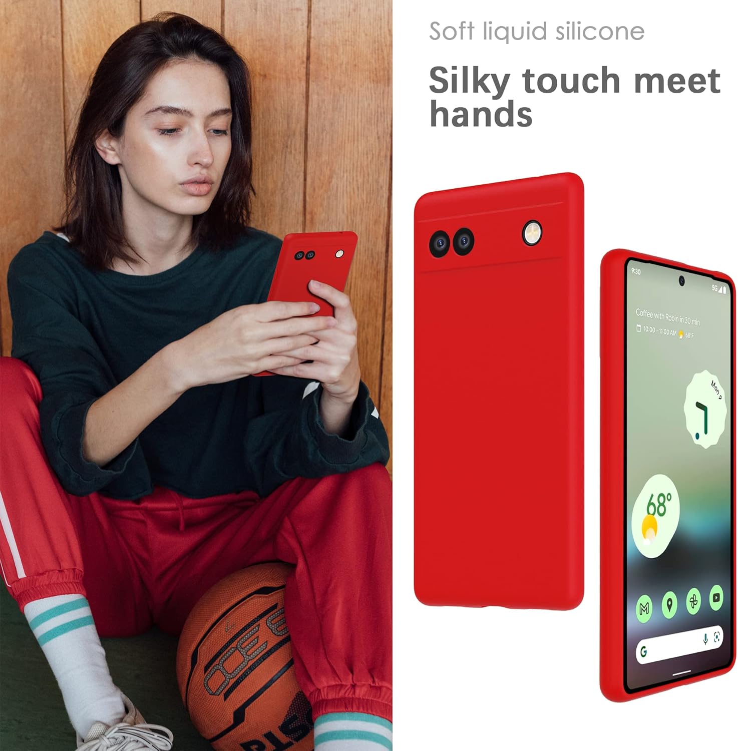 YATWIN калъф за Google Pixel 6A, първокласен силиконов калъф за мобилен телефон със защита на камерата, копринен, мек на допир, ултра тънък, удароустойчив, устойчив на надраскване, защитен калъф, червен