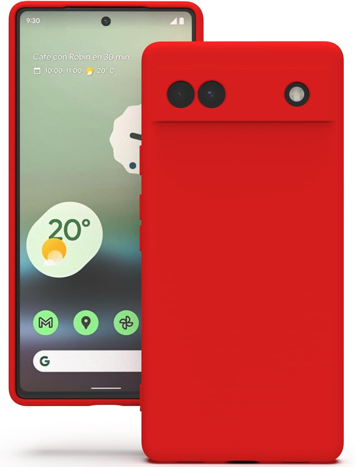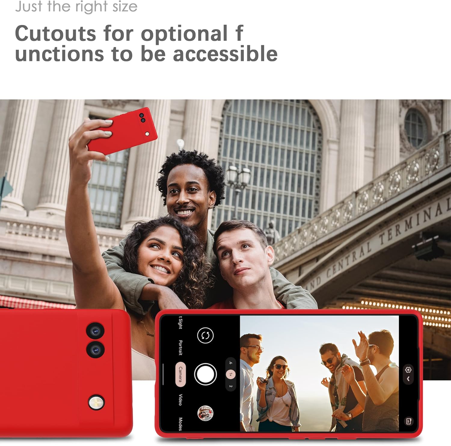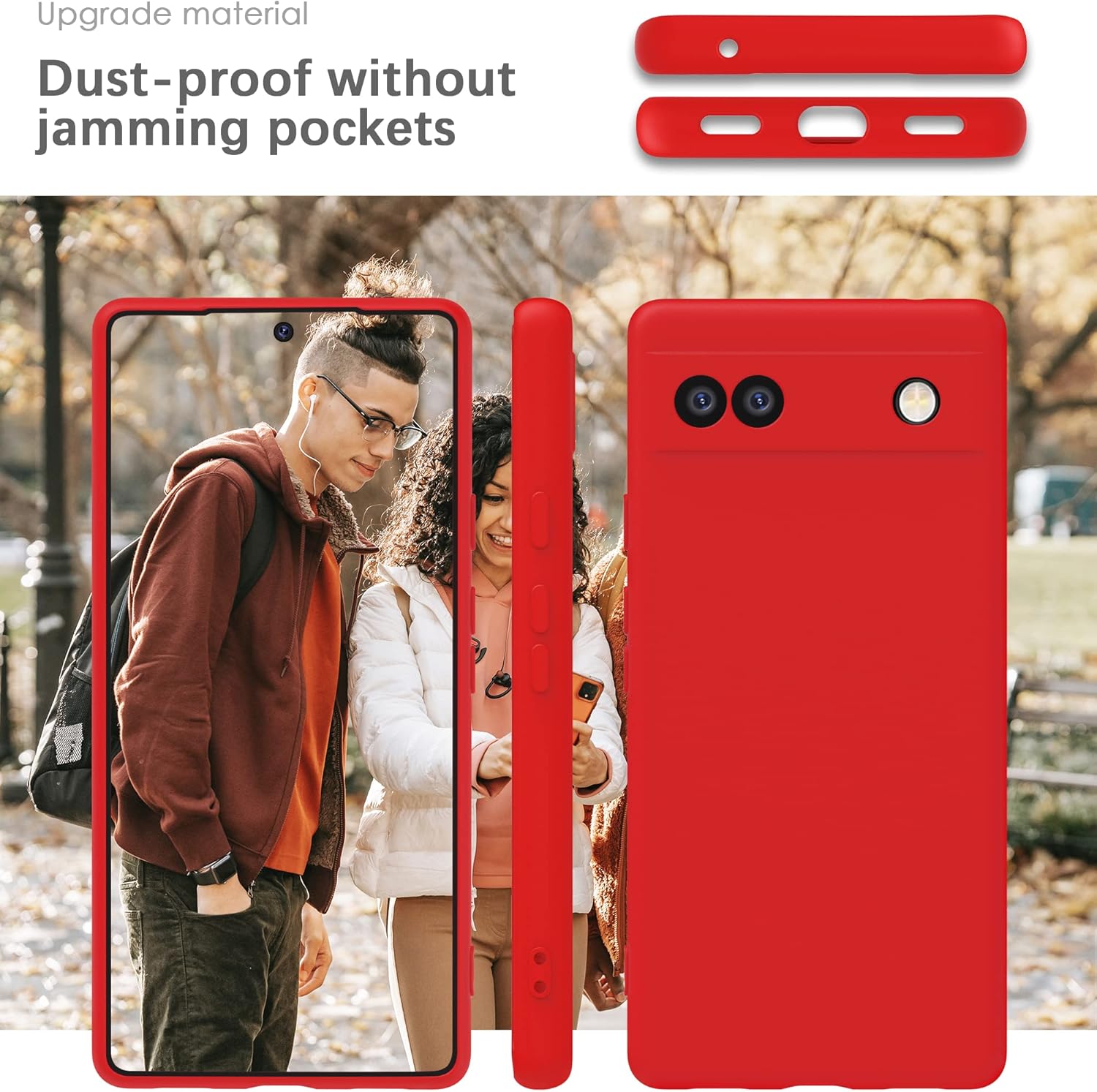 YATWIN калъф за Google Pixel 6A, първокласен силиконов калъф за мобилен телефон със защита на камерата, копринен, мек на допир, ултра тънък, удароустойчив, устойчив на надраскване, защитен калъф, червен