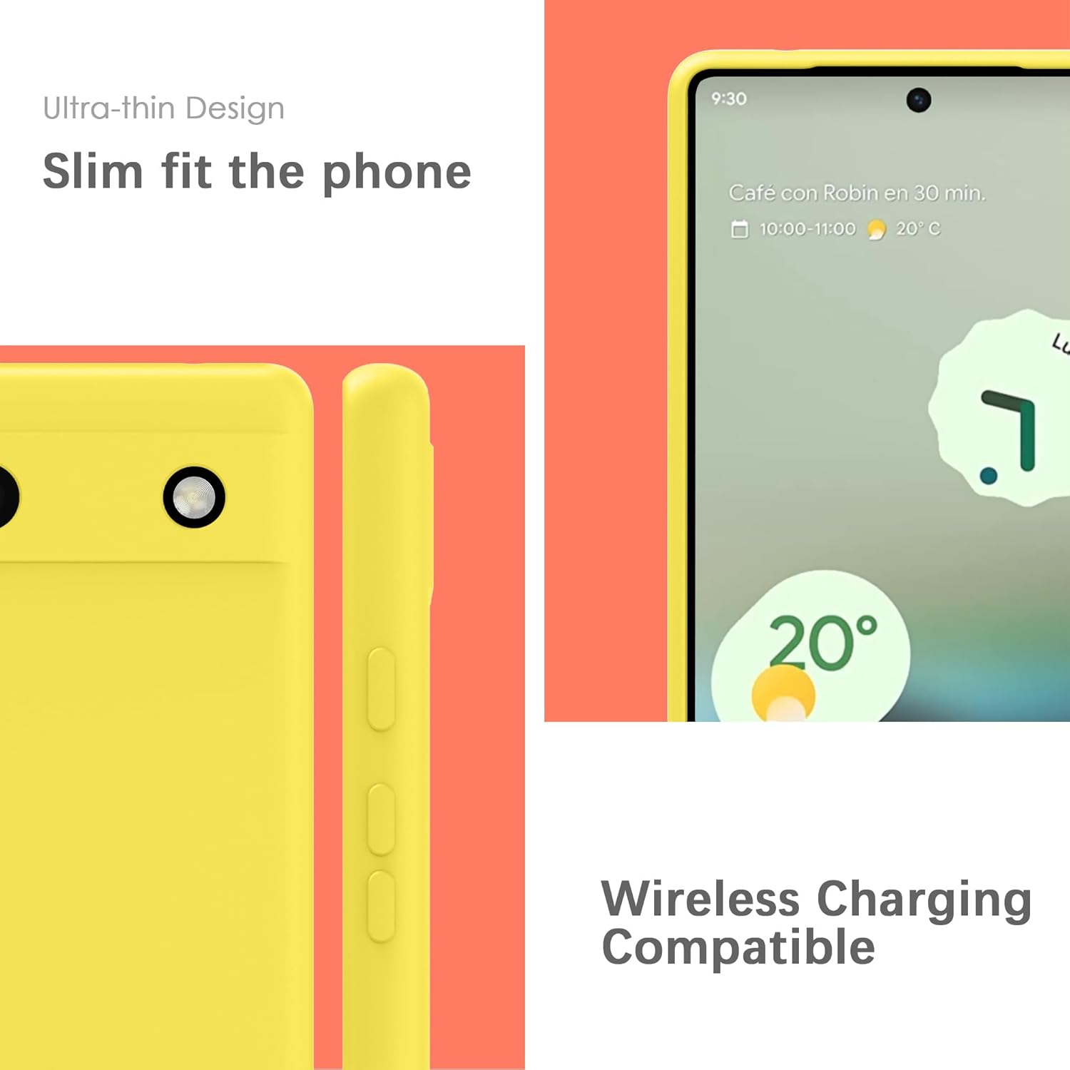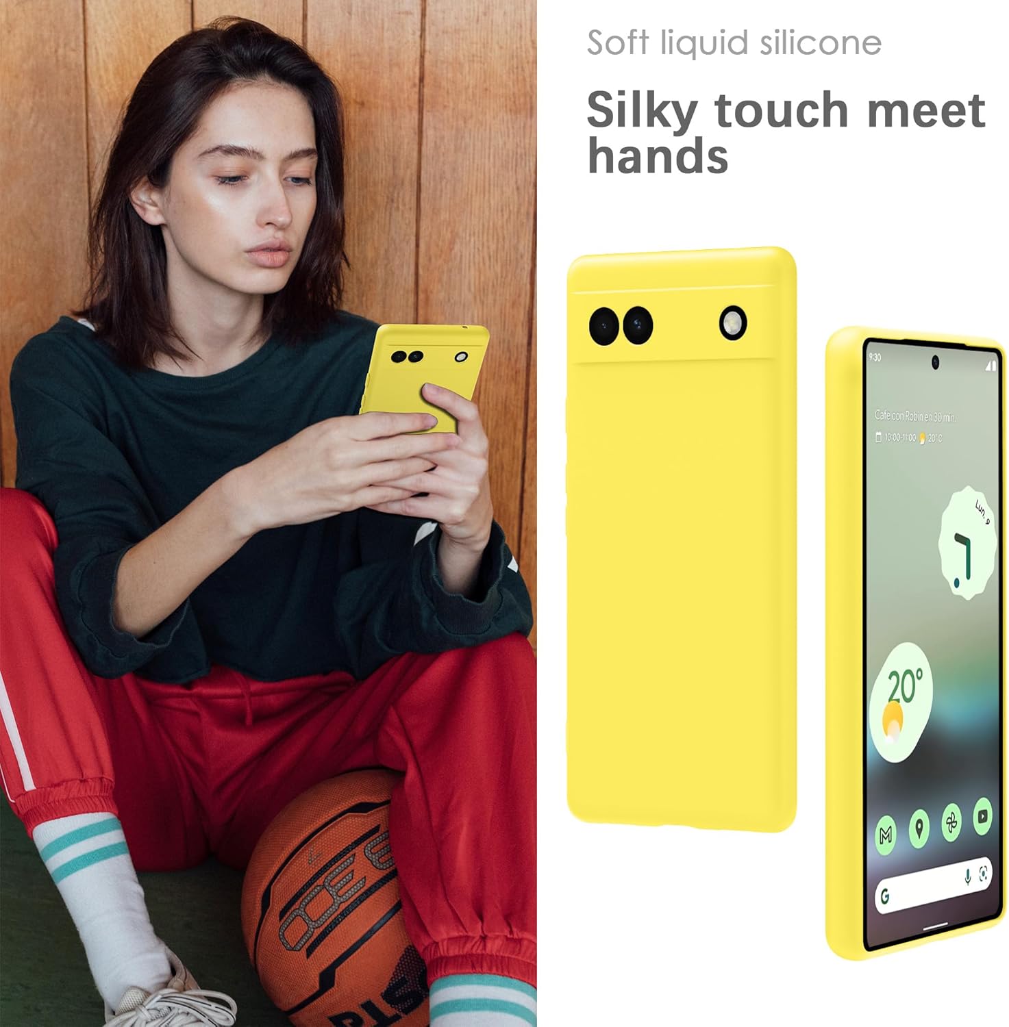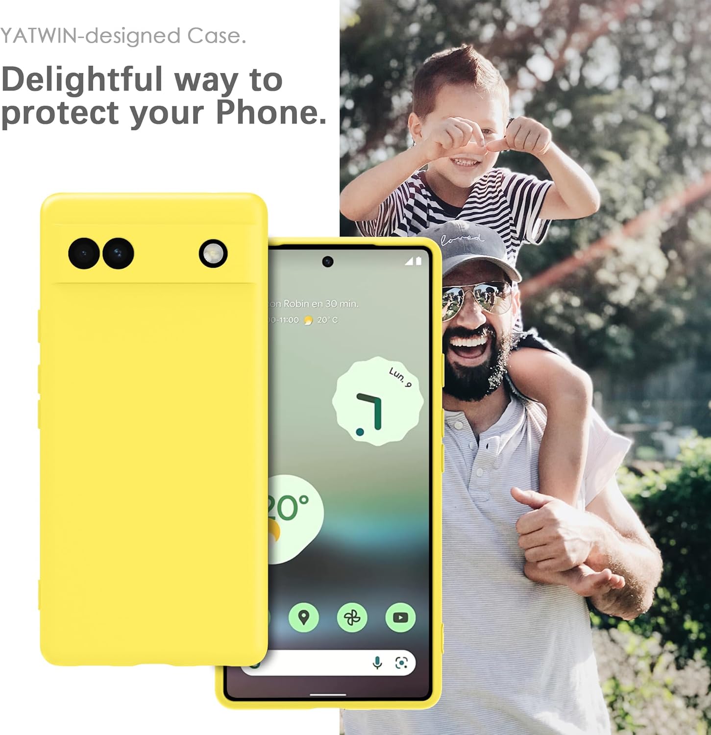 YATWIN калъф за Google Pixel 6A, първокласен силиконов калъф за мобилен телефон със защита на камерата, копринен, мек на допир, ултра тънък, удароустойчив, устойчив на надраскване, защитен калъф, жълт