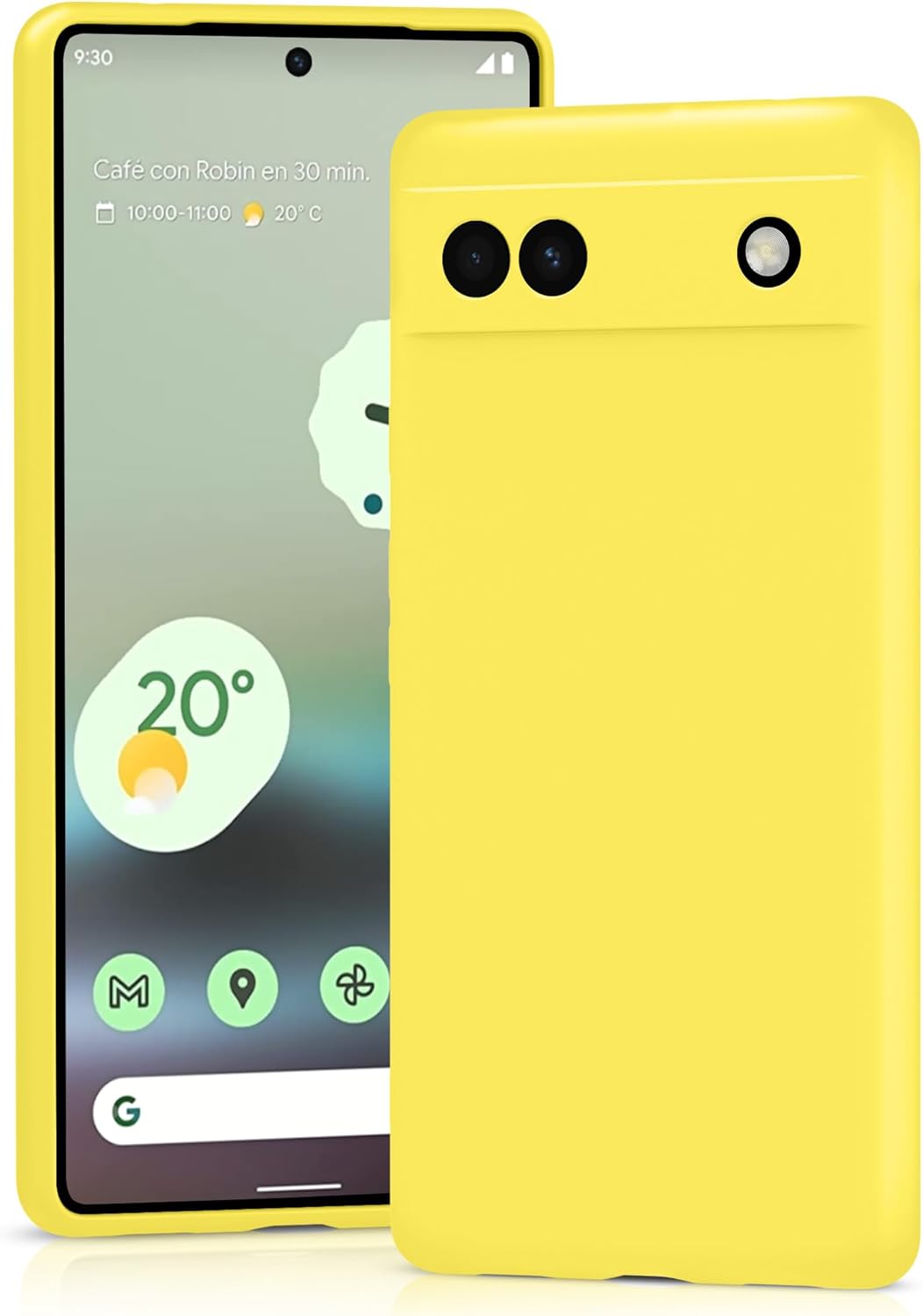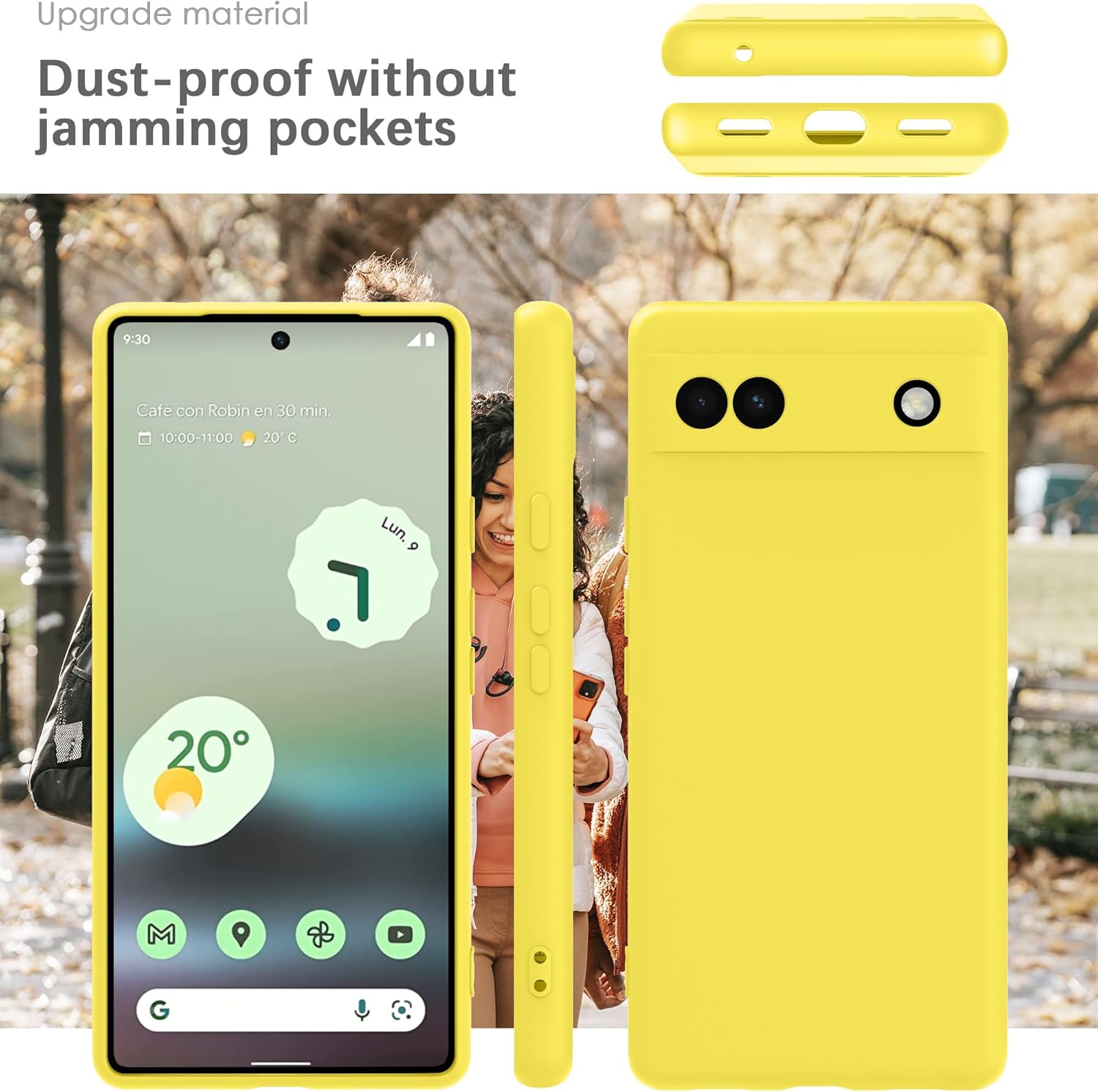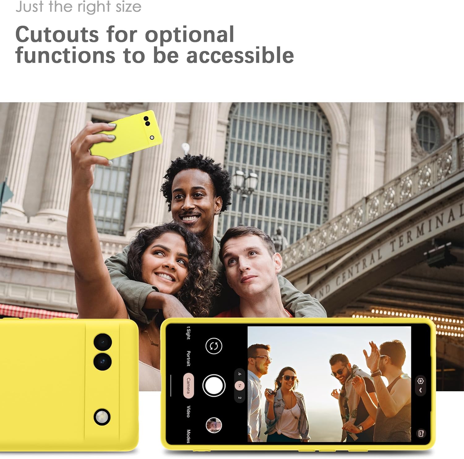YATWIN калъф за Google Pixel 6A, първокласен силиконов калъф за мобилен телефон със защита на камерата, копринен, мек на допир, ултра тънък, удароустойчив, устойчив на надраскване, защитен калъф, жълт