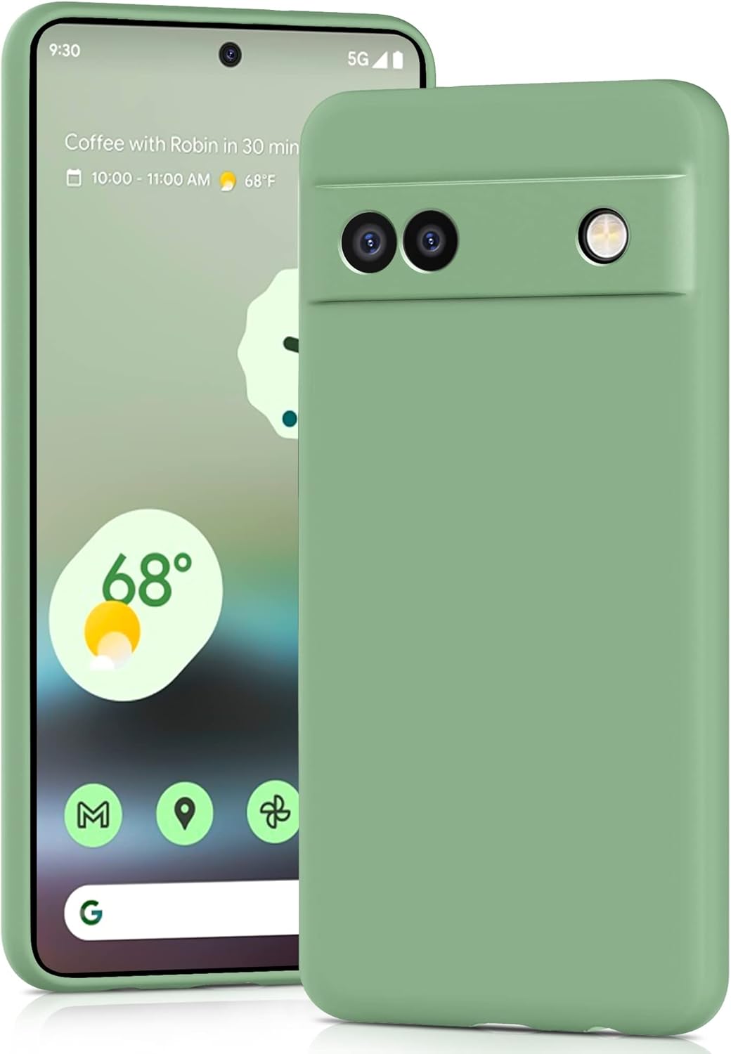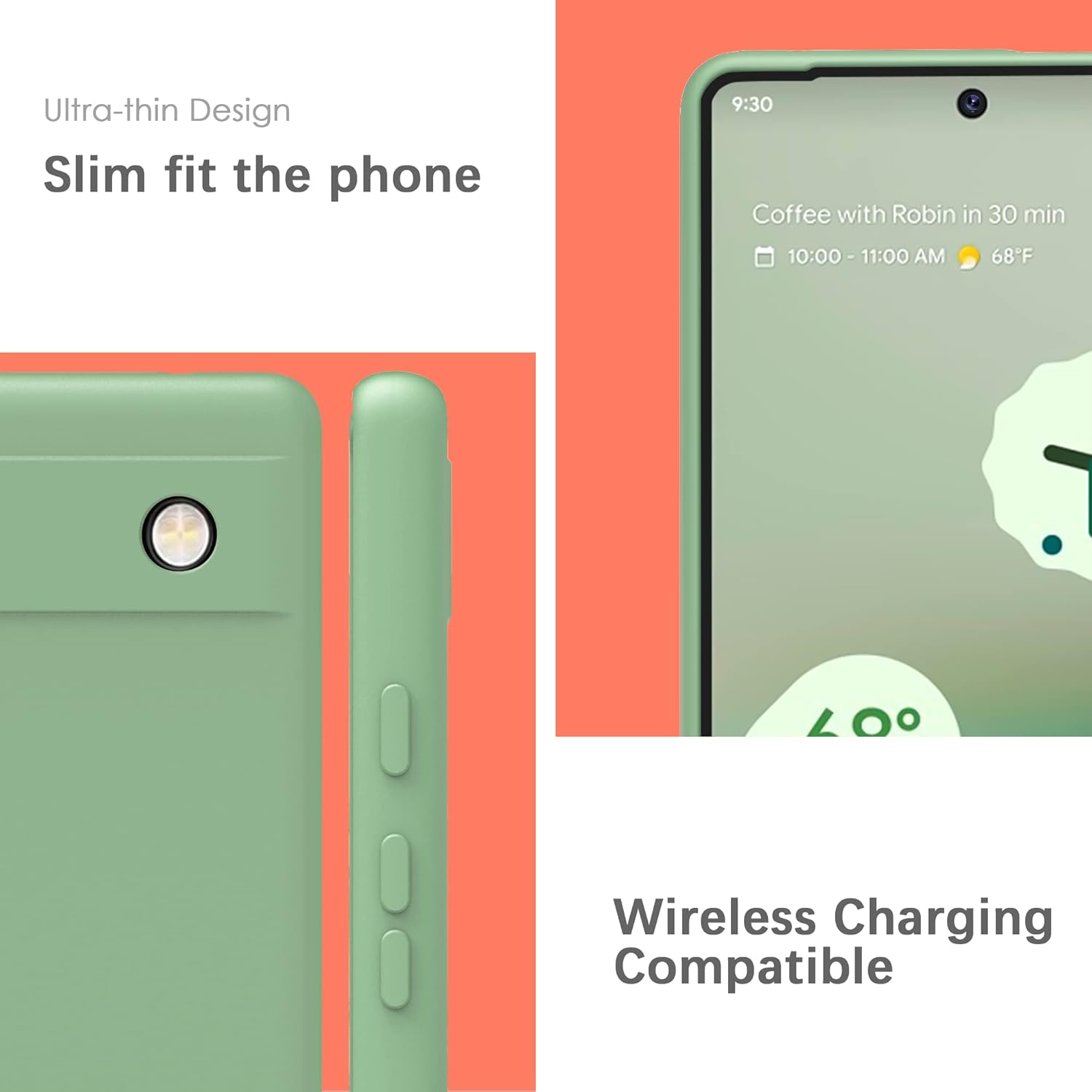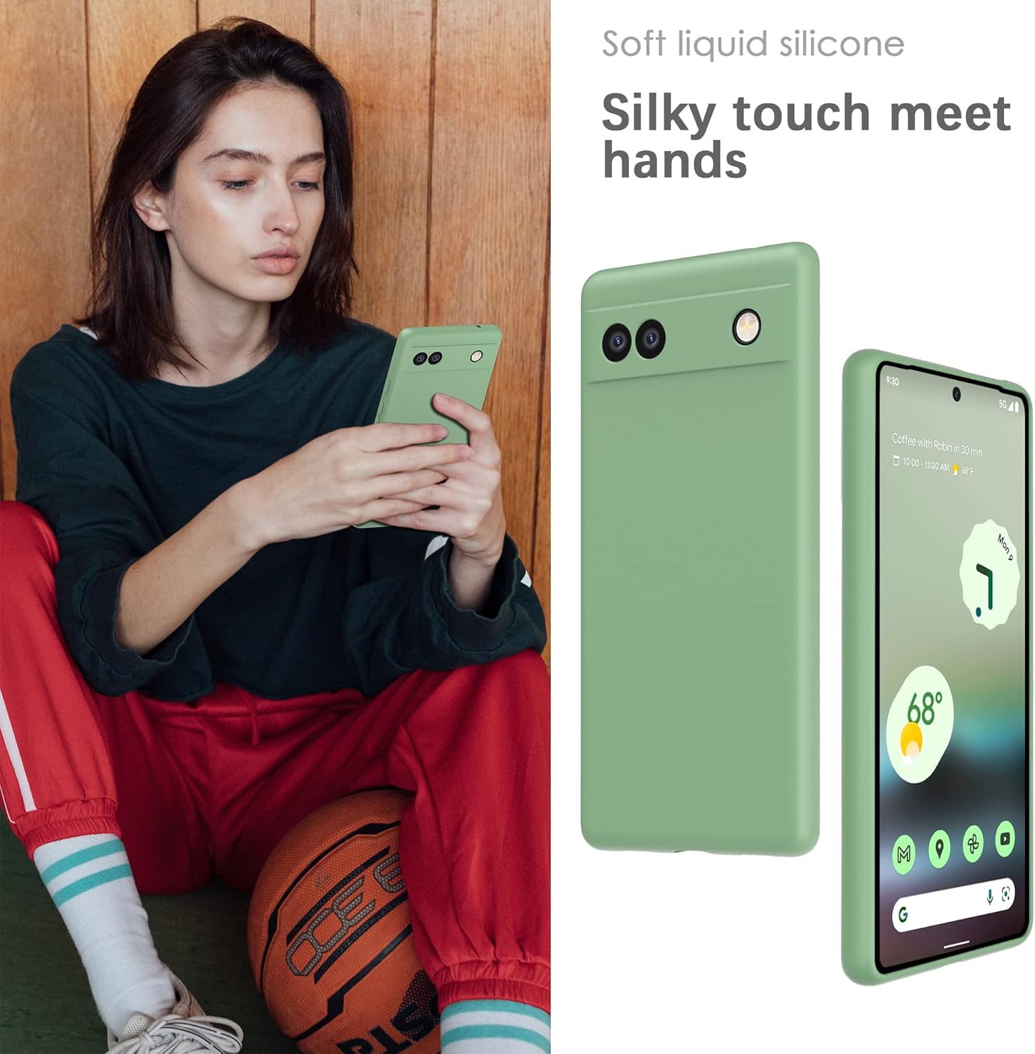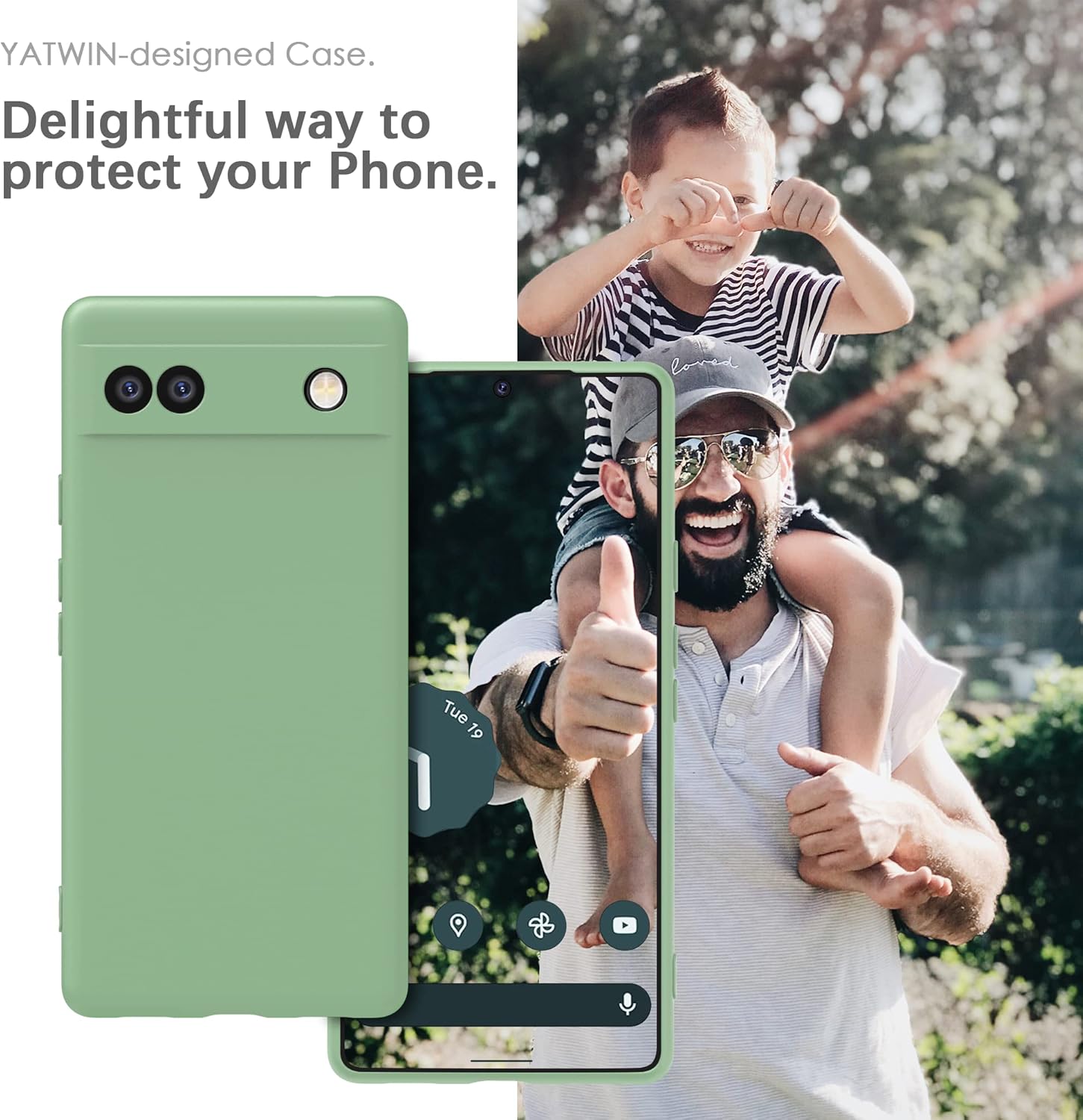 YATWIN калъф за Google Pixel 6A, първокласен силиконов калъф за мобилен телефон със защита на камерата, копринен, мек на допир, ултра тънък, удароустойчив, устойчив на надраскване, защитен калъф, ментово зелен