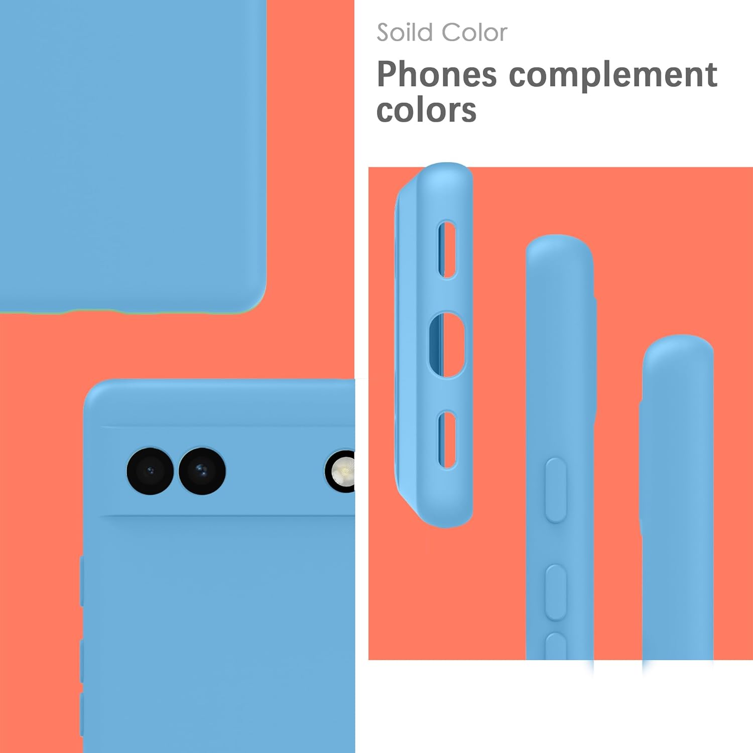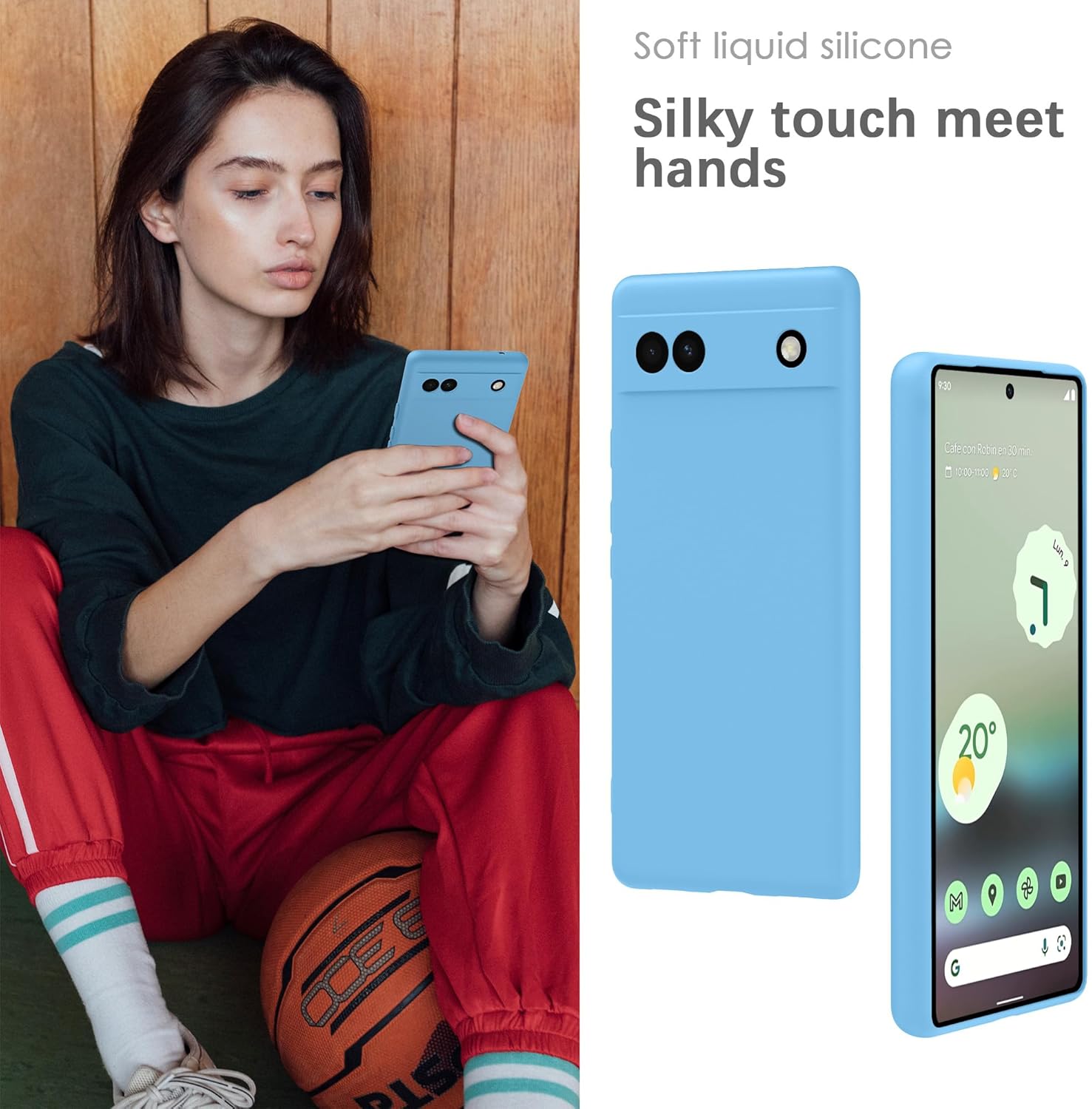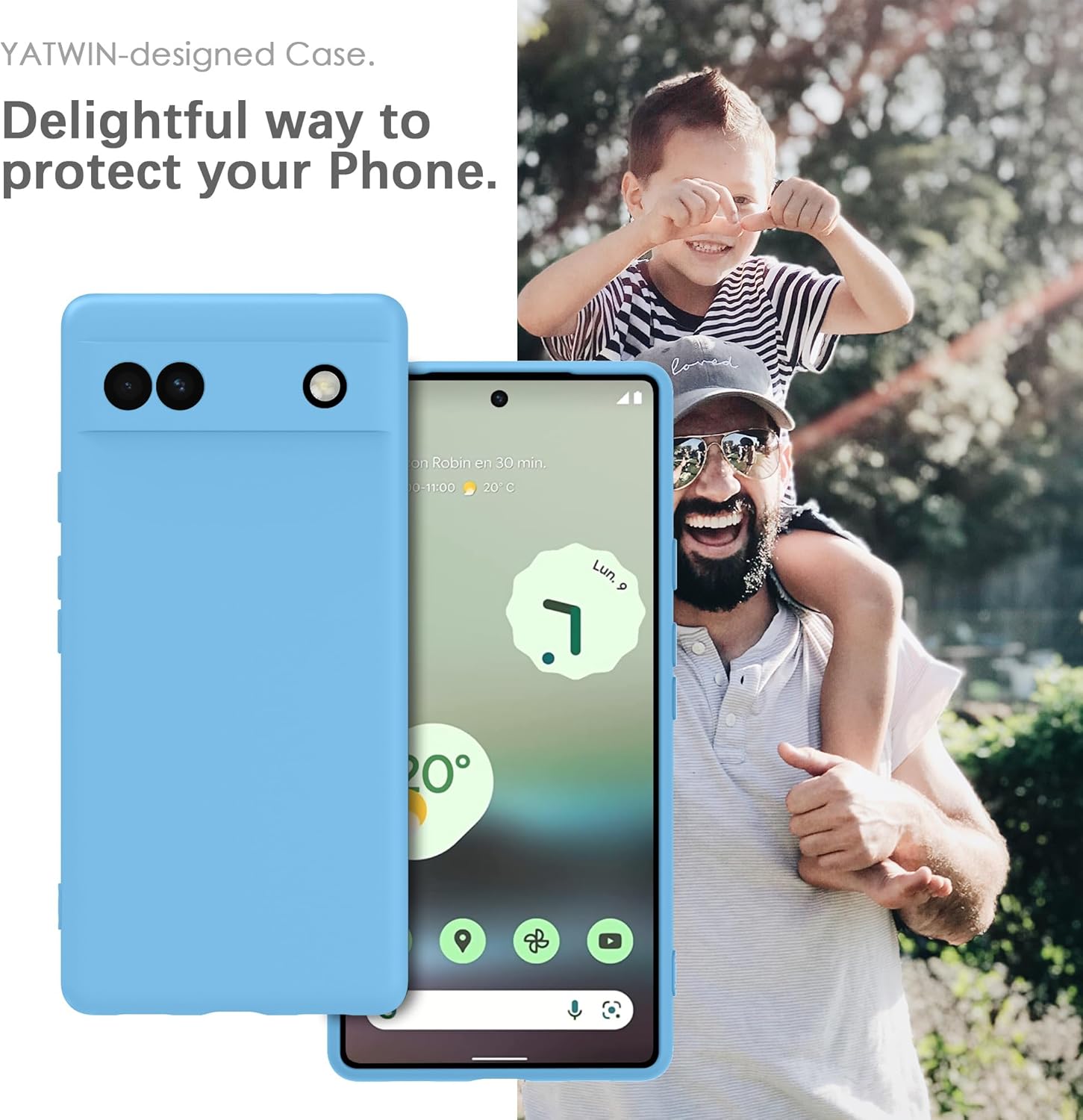 YATWIN калъф за Google Pixel 6A, първокласен силиконов калъф за мобилен телефон със защита на камерата, копринен, мек на допир, ултра тънък, удароустойчив, устойчив на надраскване, защитен калъф, небесно син