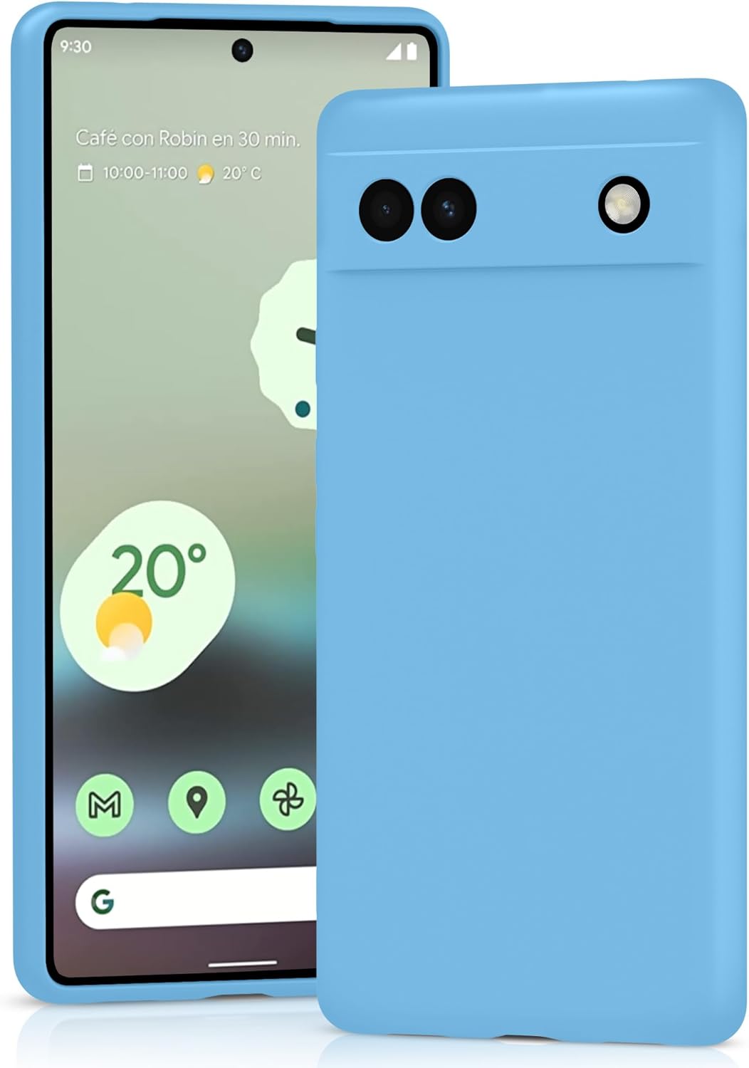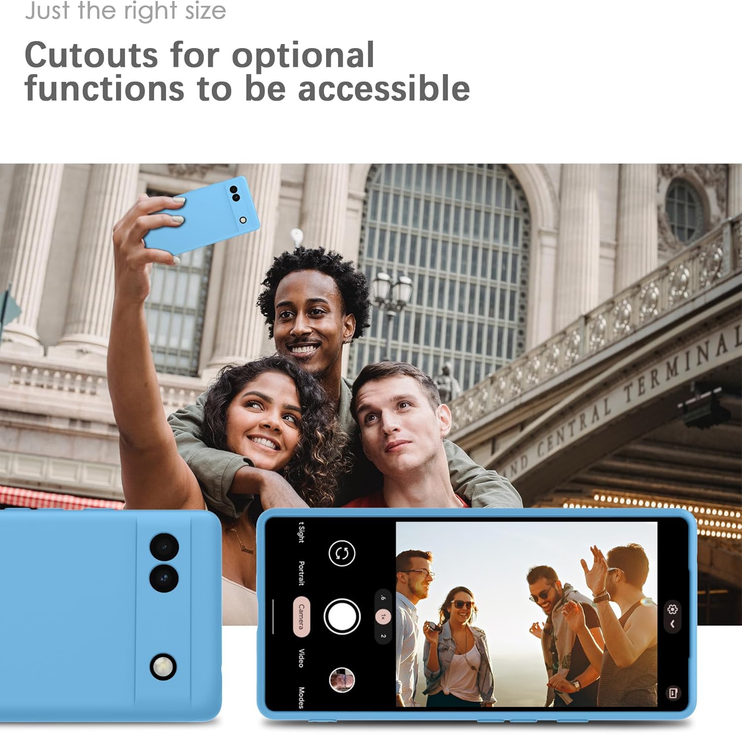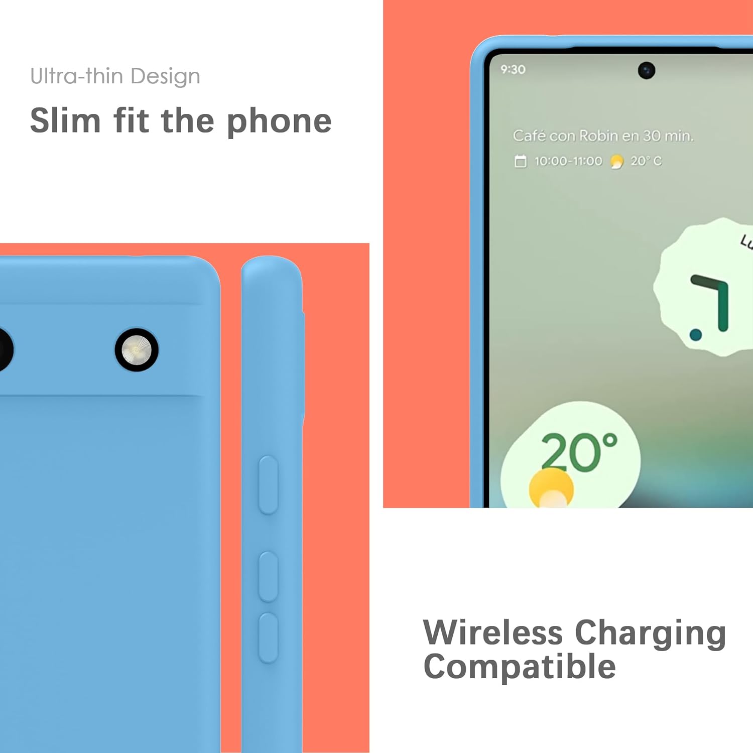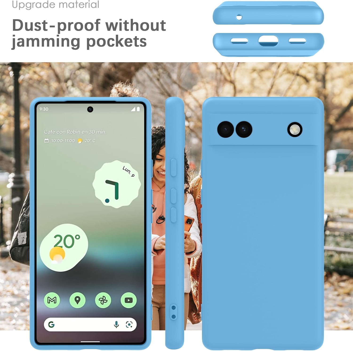 YATWIN калъф за Google Pixel 6A, първокласен силиконов калъф за мобилен телефон със защита на камерата, копринен, мек на допир, ултра тънък, удароустойчив, устойчив на надраскване, защитен калъф, небесно син