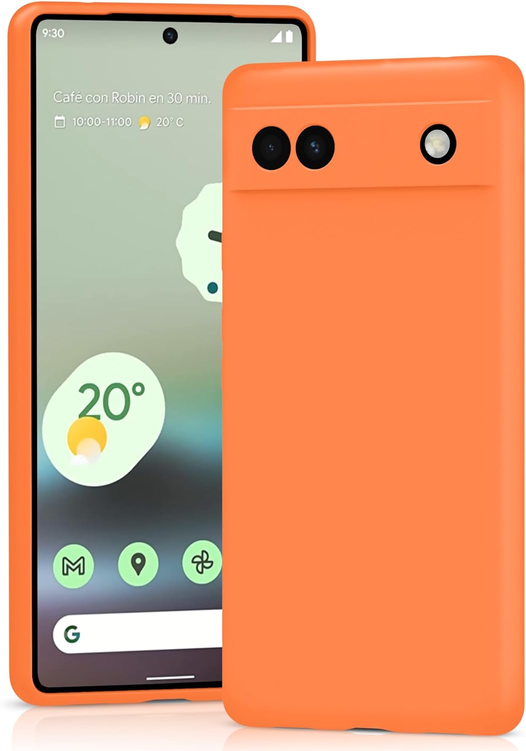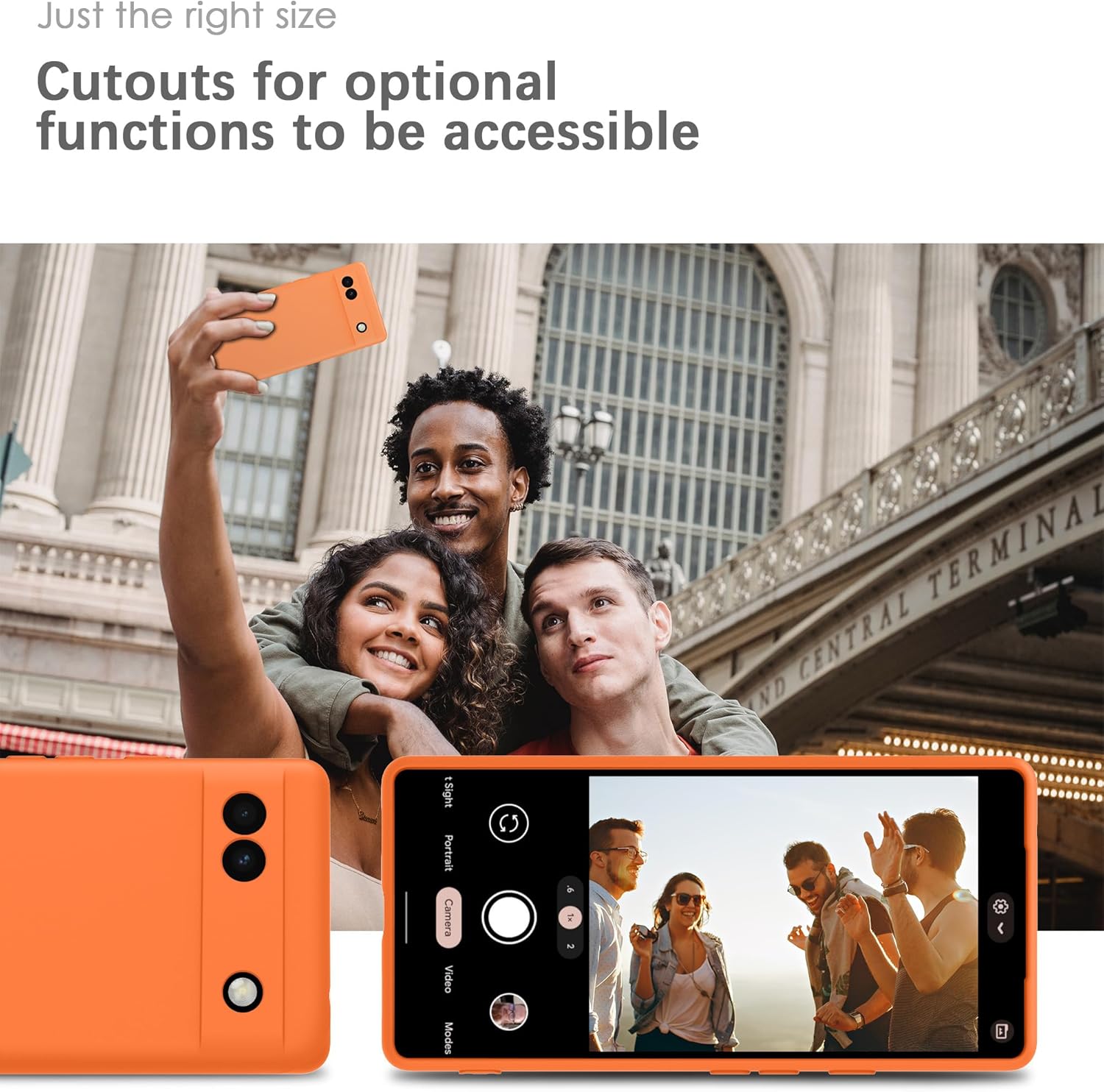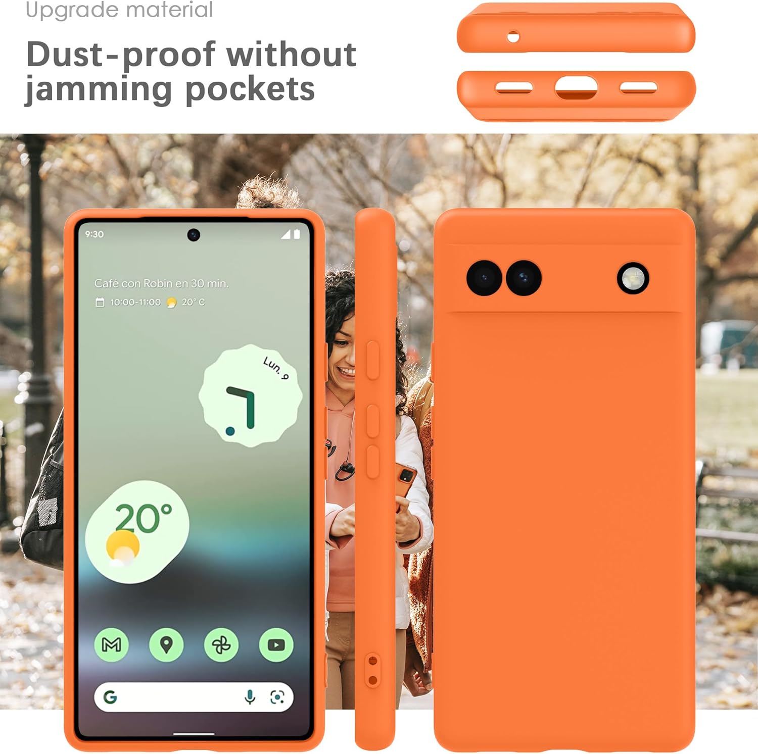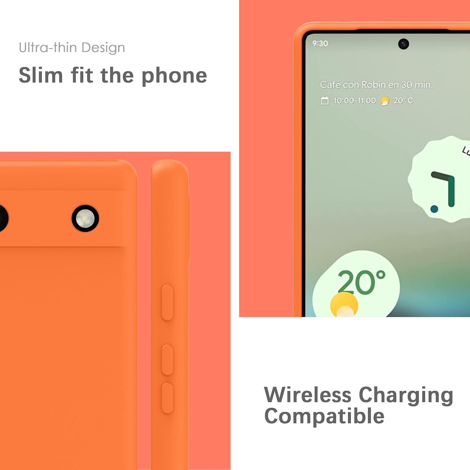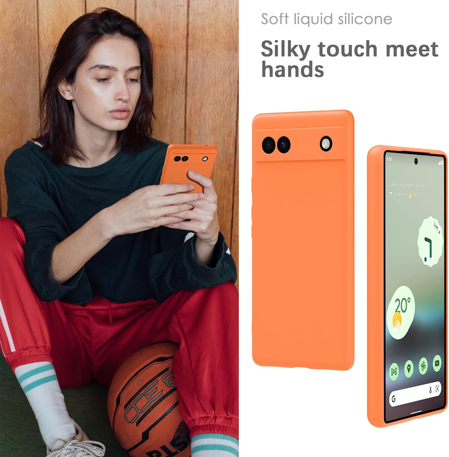 YATWIN калъф за Google Pixel 6A, първокласен силиконов калъф за мобилен телефон със защита на камерата, копринен, мек на допир, ултра тънък, удароустойчив, устойчив на надраскване, защитен калъф, оранжев