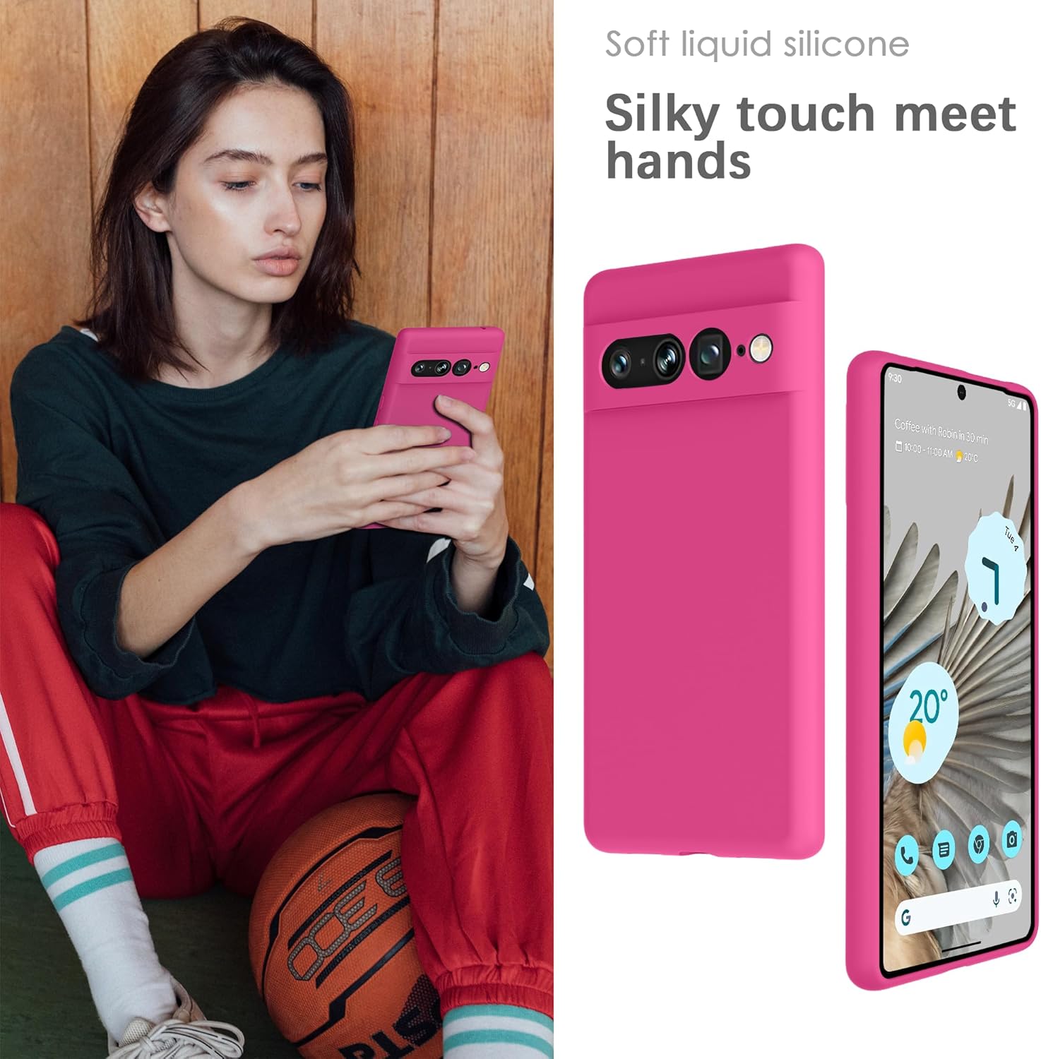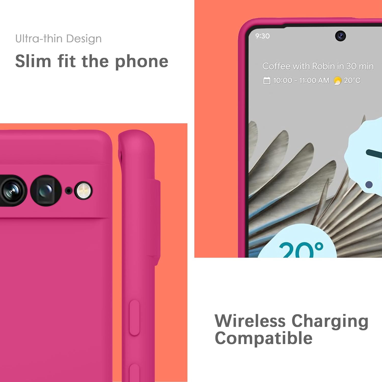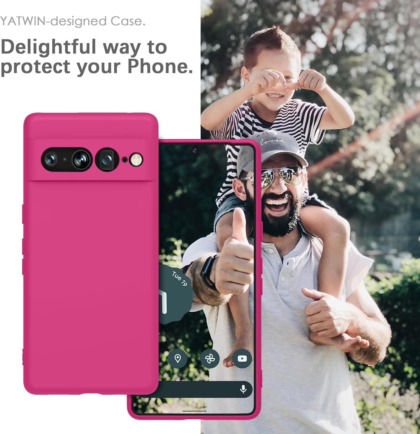 YATWIN калъф за Google Pixel 7 Pro, първокласен силиконов калъф за мобилен телефон със защита на камерата, копринен, мек на допир, ултра тънък, удароустойчив, устойчив на надраскване, защитен калъф, магента