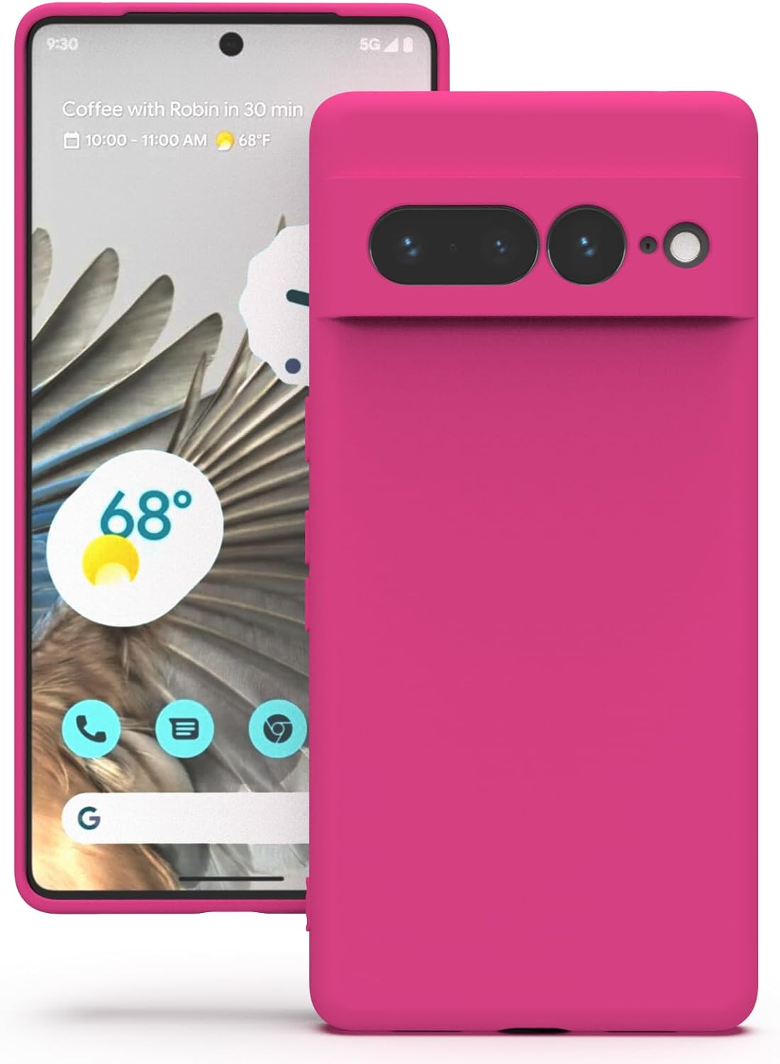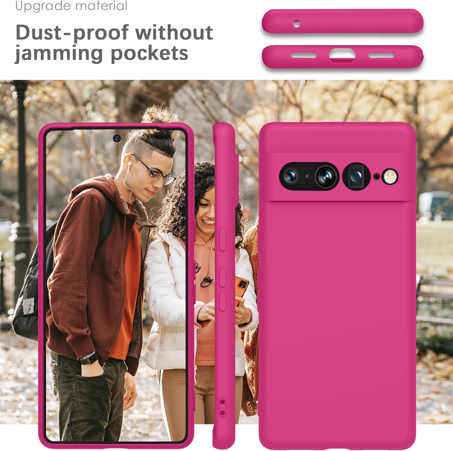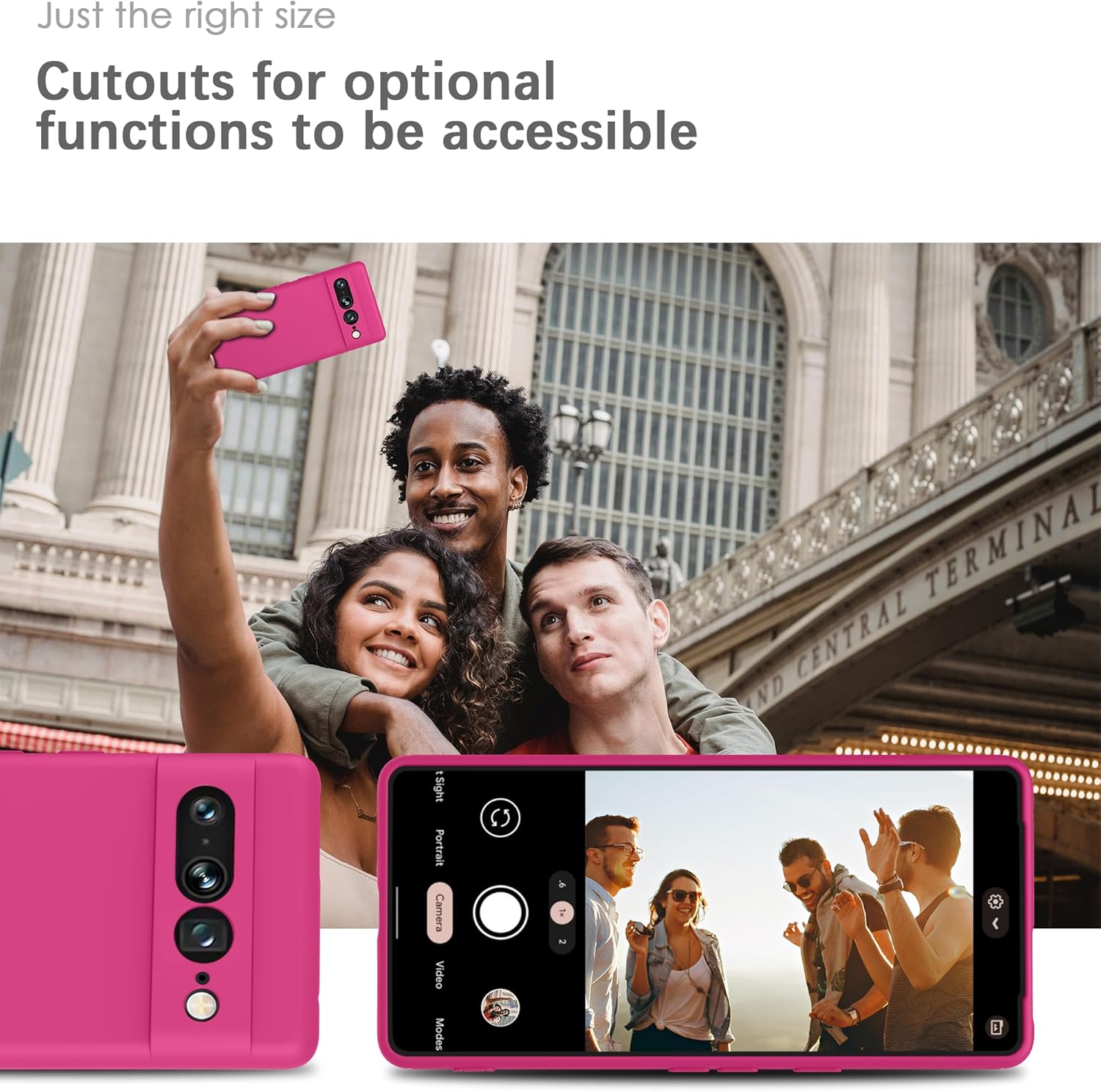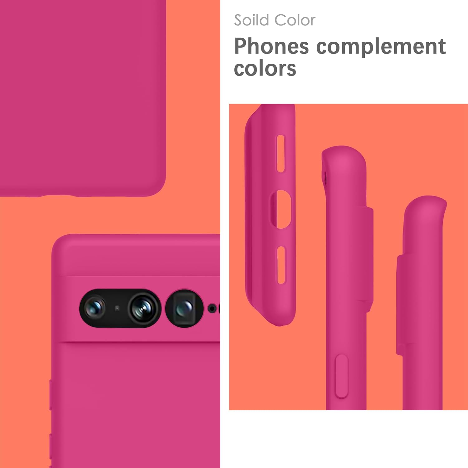 YATWIN калъф за Google Pixel 7 Pro, първокласен силиконов калъф за мобилен телефон със защита на камерата, копринен, мек на допир, ултра тънък, удароустойчив, устойчив на надраскване, защитен калъф, магента