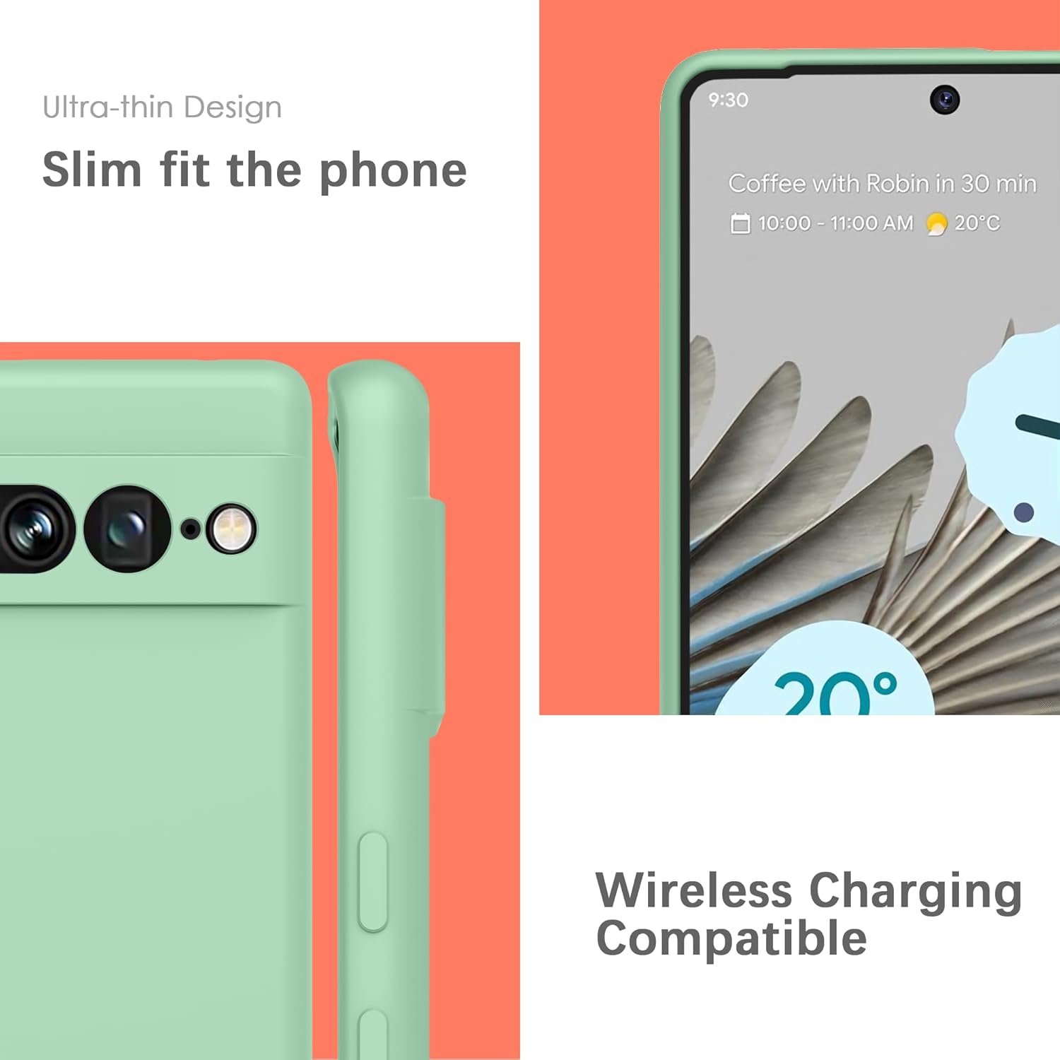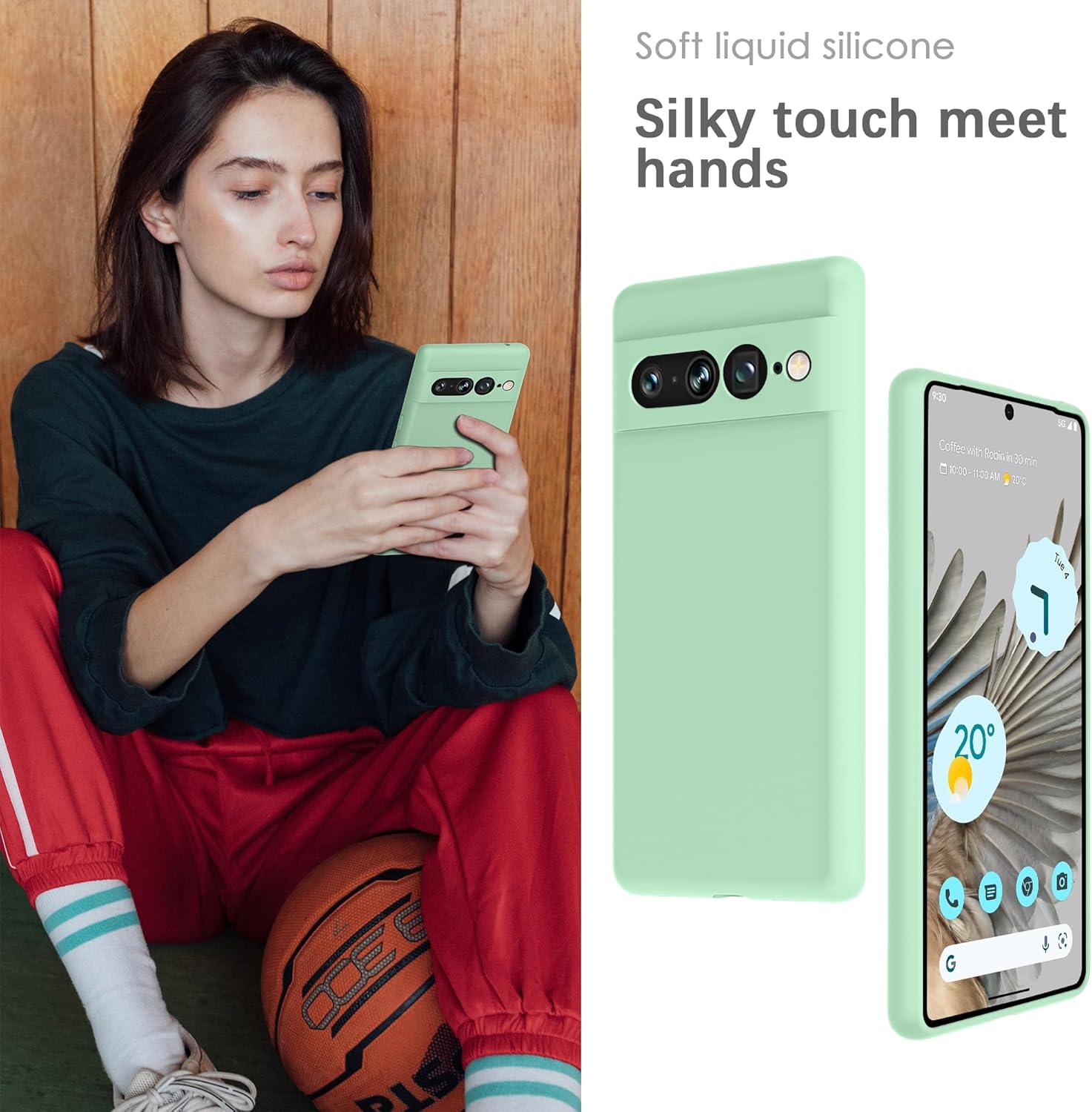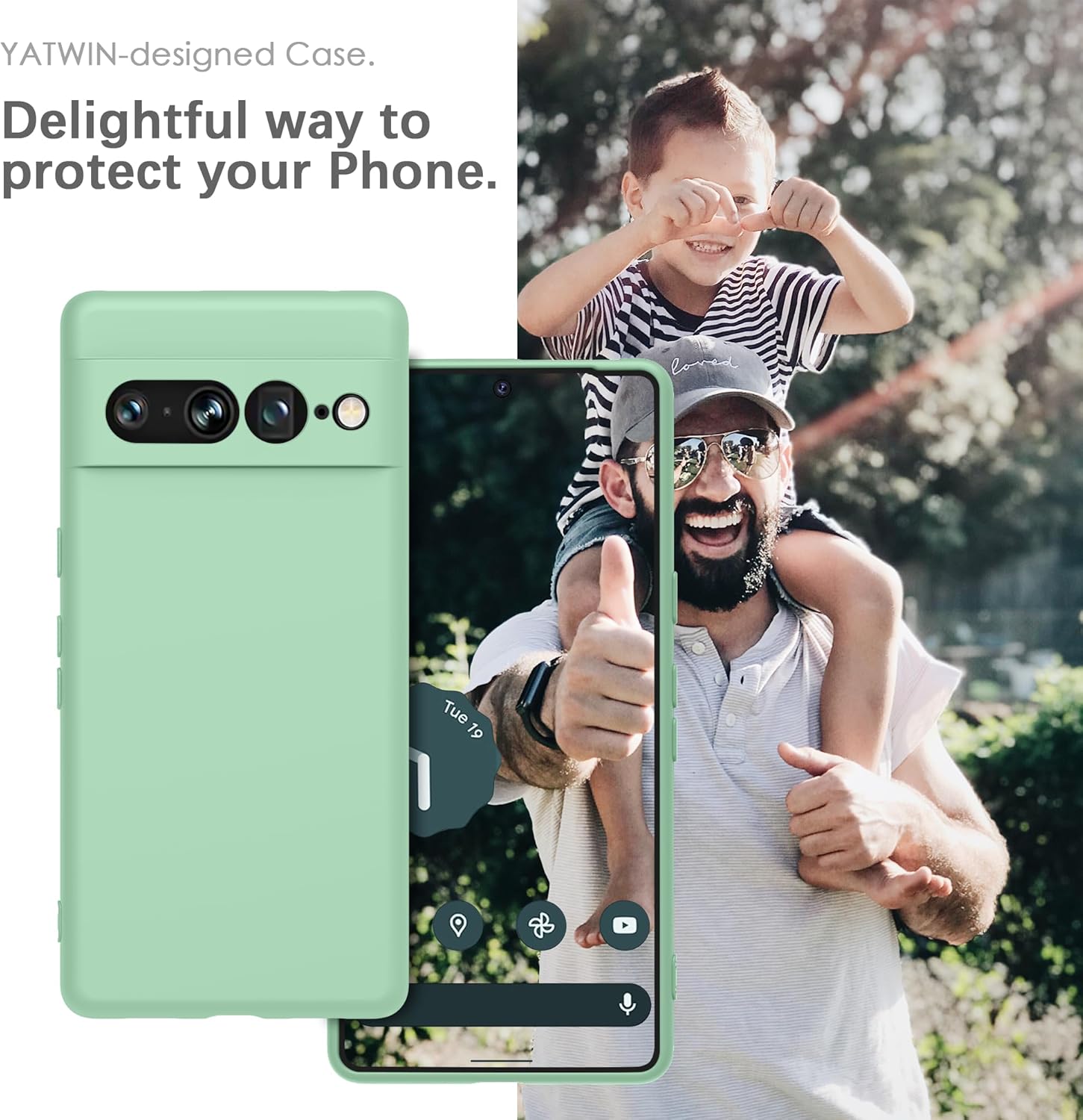 YATWIN калъф за Google Pixel 7 Pro, първокласен силиконов калъф за мобилен телефон със защита на камерата, копринен, мек на допир, ултра тънък, удароустойчив, устойчив на надраскване, защитен калъф, светло циан