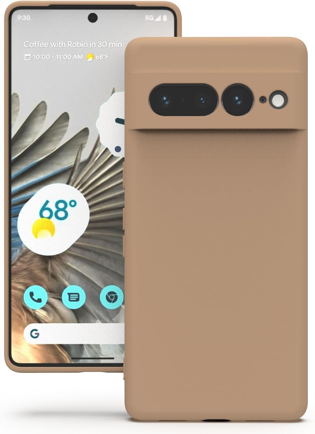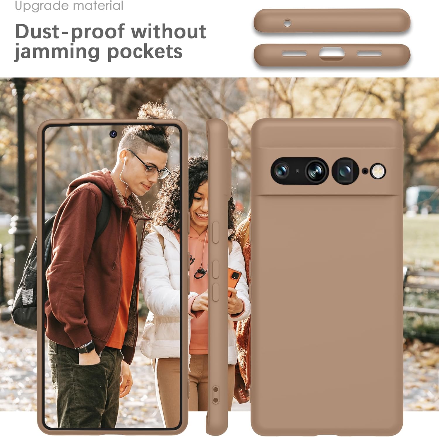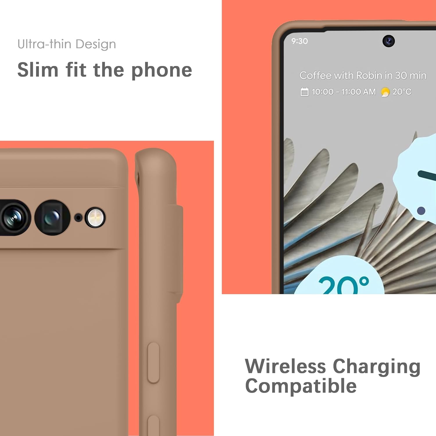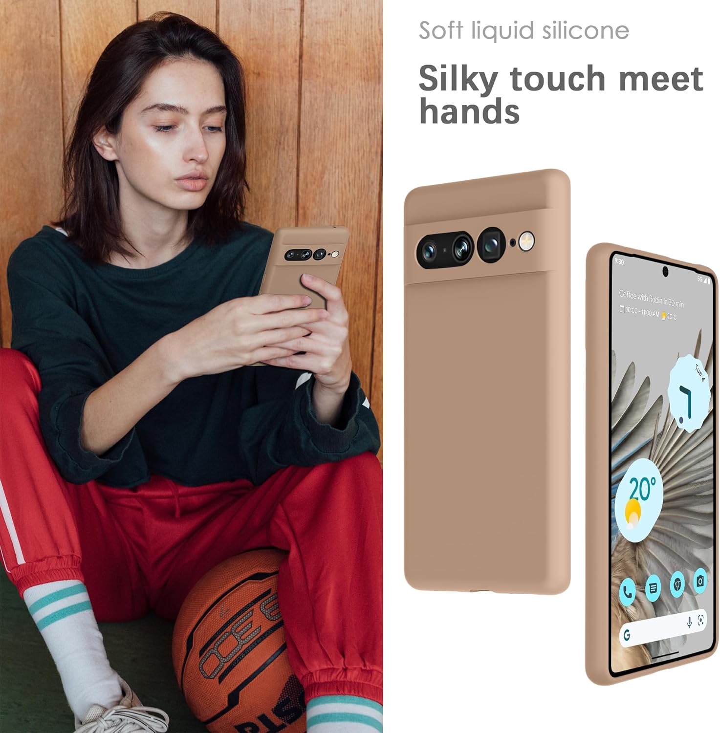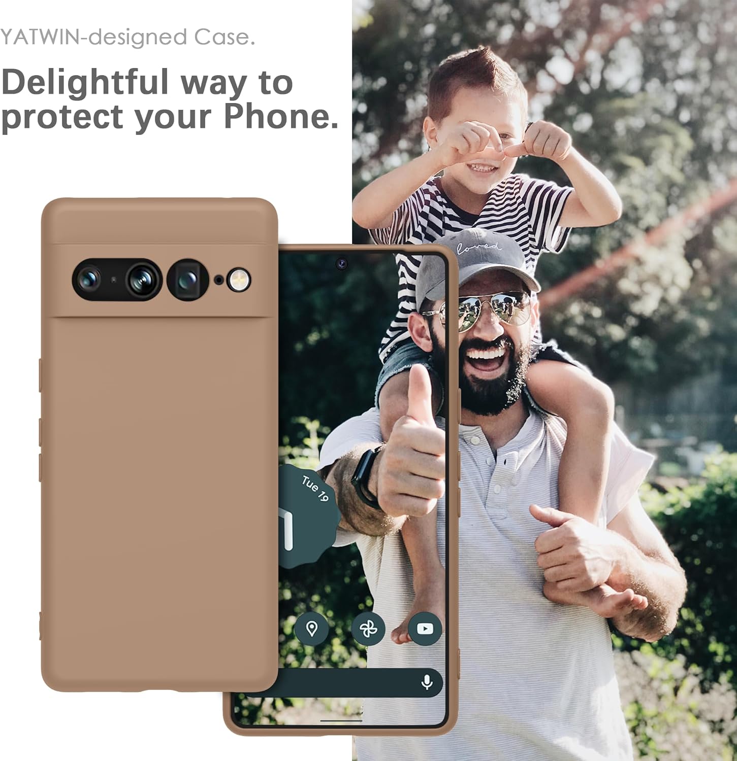 YATWIN калъф за Google Pixel 7 Pro, първокласен силиконов калъф за мобилен телефон със защита на камерата, копринен, мек на допир, ултра тънък, удароустойчив, устойчив на надраскване, защитен калъф, цвят чай с мляко