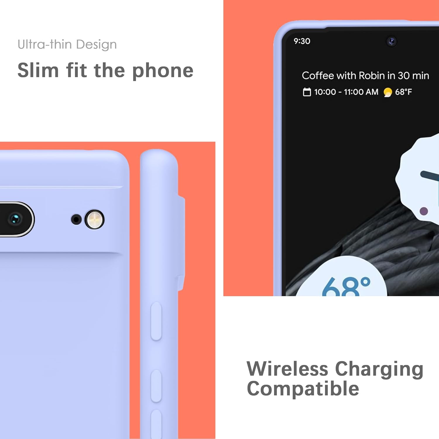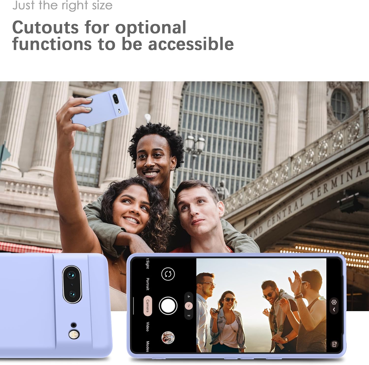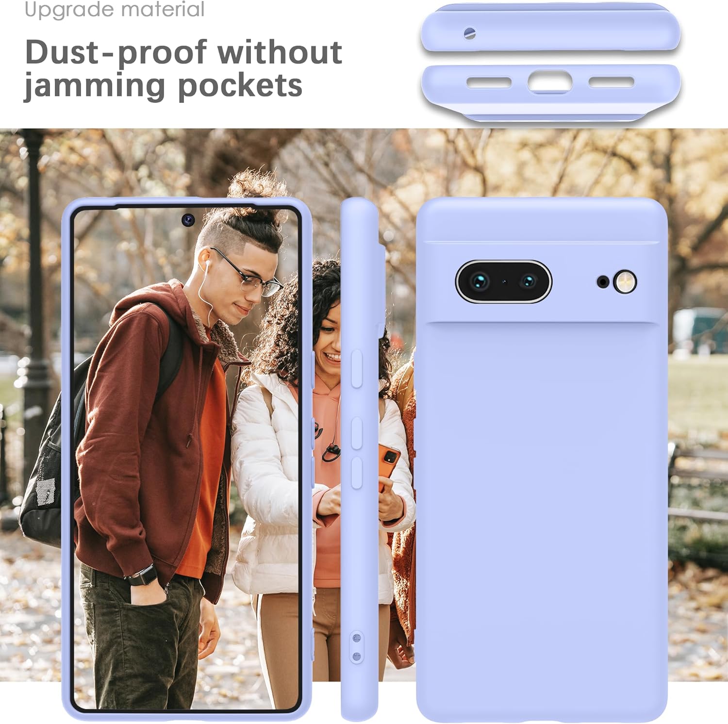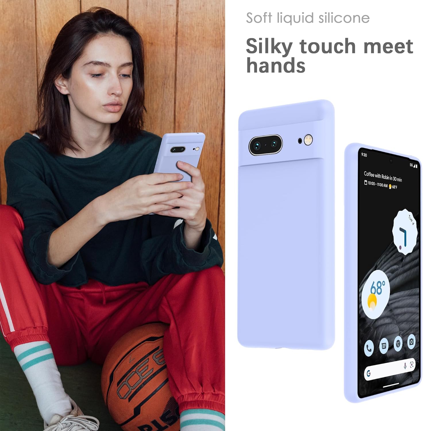 YATWIN калъф за Google Pixel 7, първокласен силиконов калъф за мобилен телефон със защита на камерата, копринен, мек на допир, ултра тънък, удароустойчив, устойчив на надраскване, защитен калъф, лилав