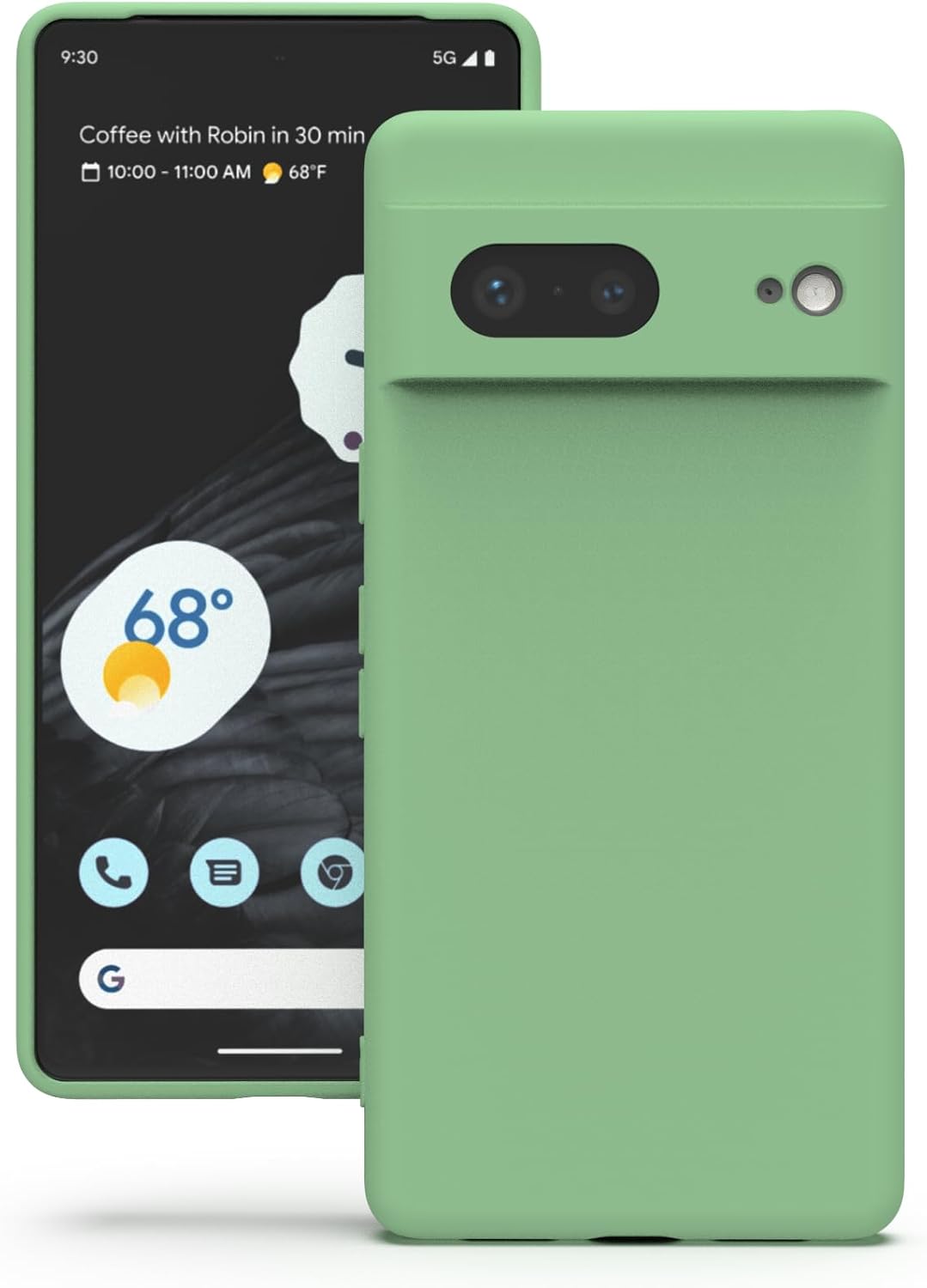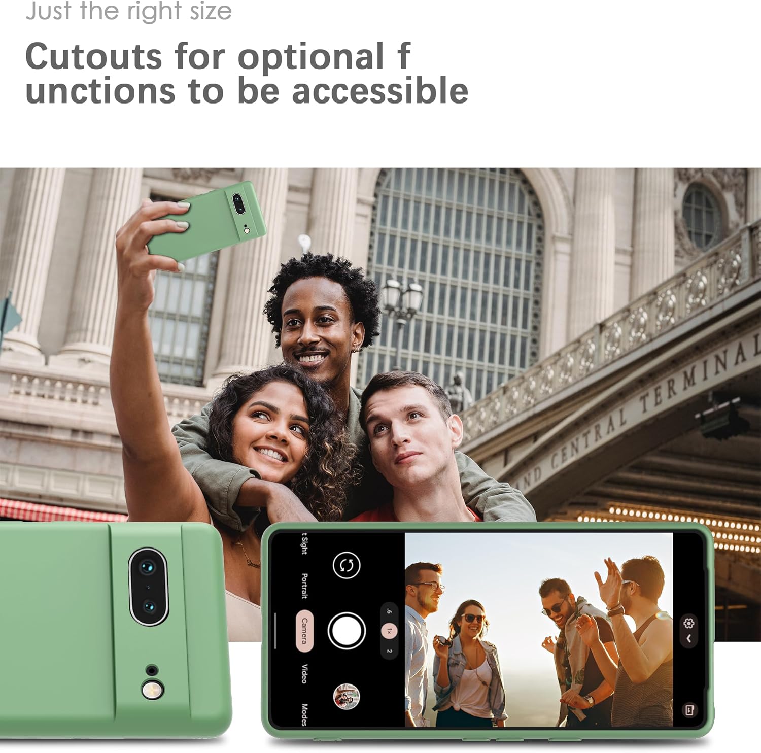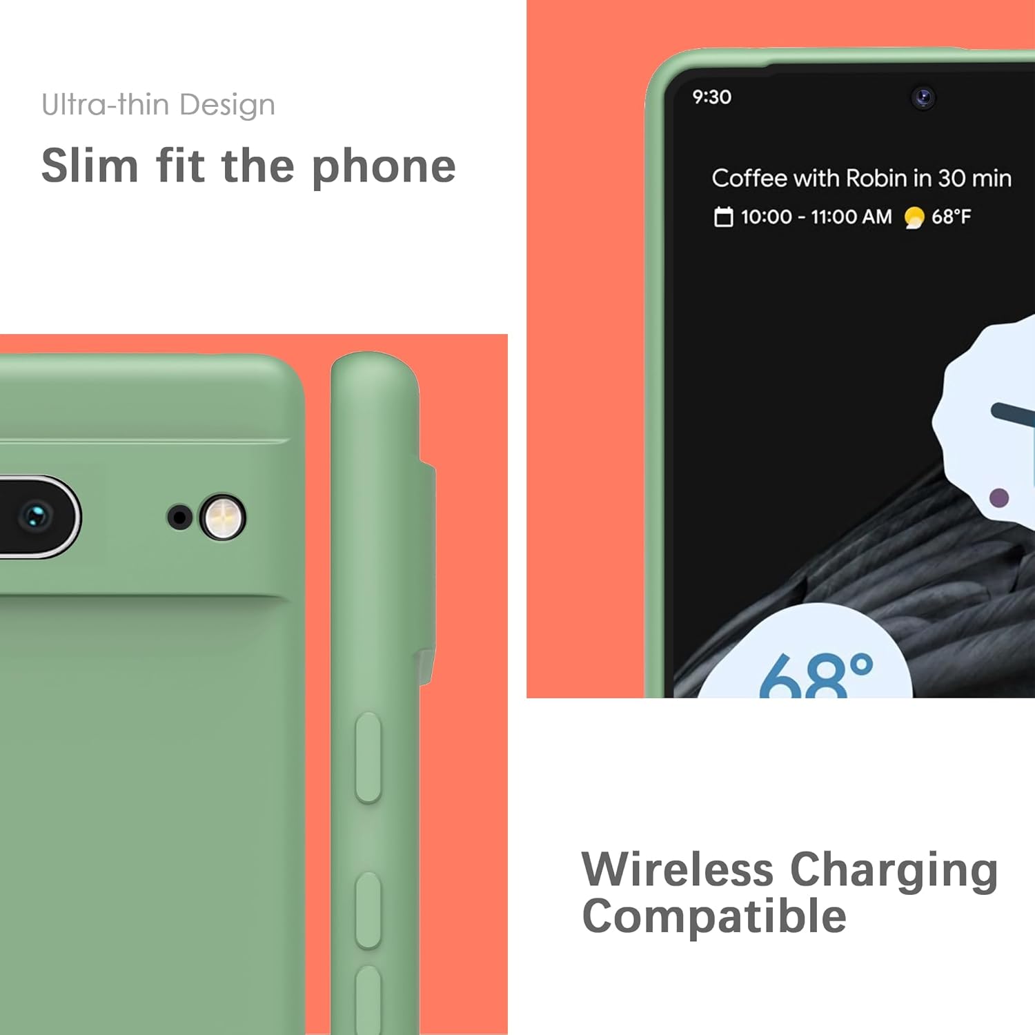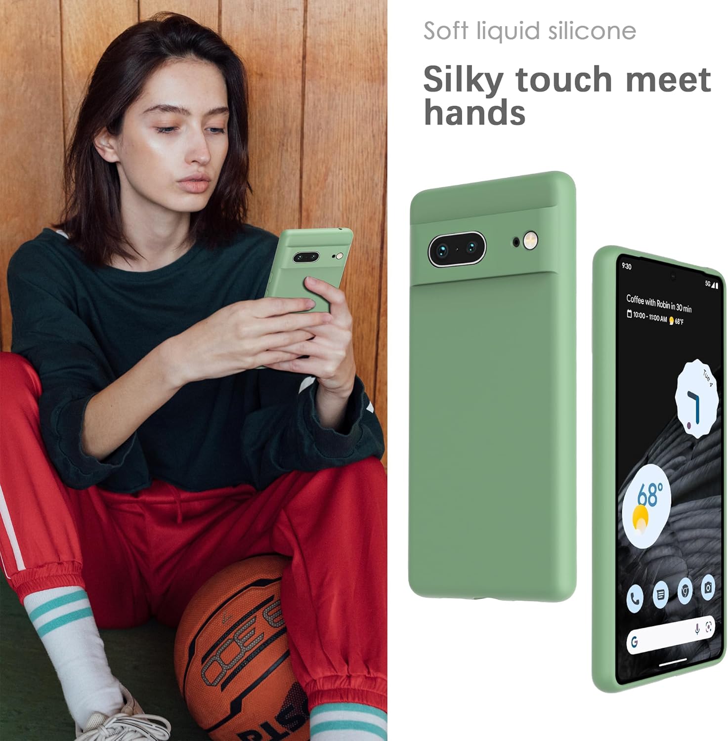 YATWIN калъф за Google Pixel 7, първокласен силиконов калъф за мобилен телефон със защита на камерата, копринен, мек на допир, ултра тънък, удароустойчив, устойчив на надраскване, защитен калъф, ментово зелен