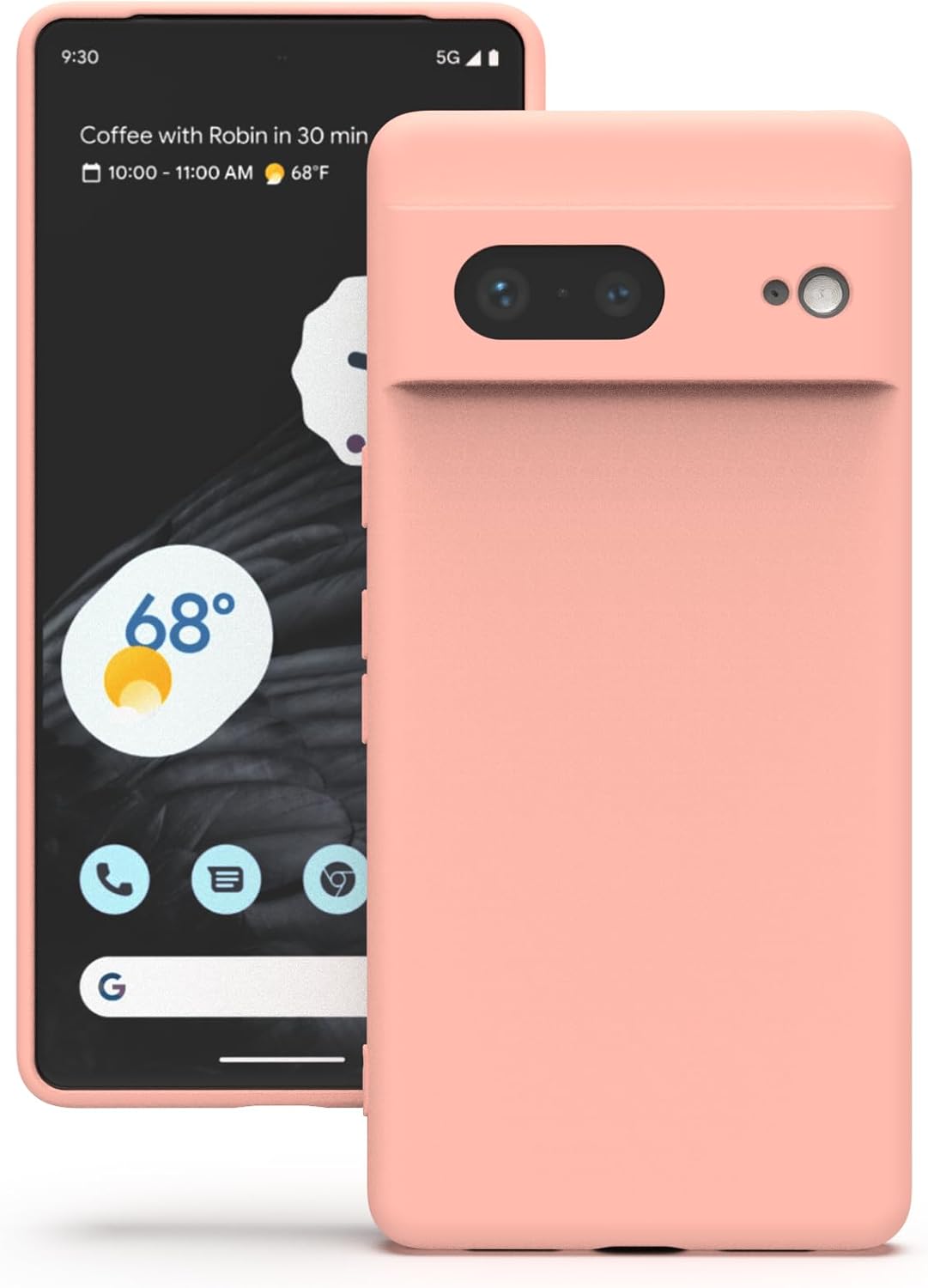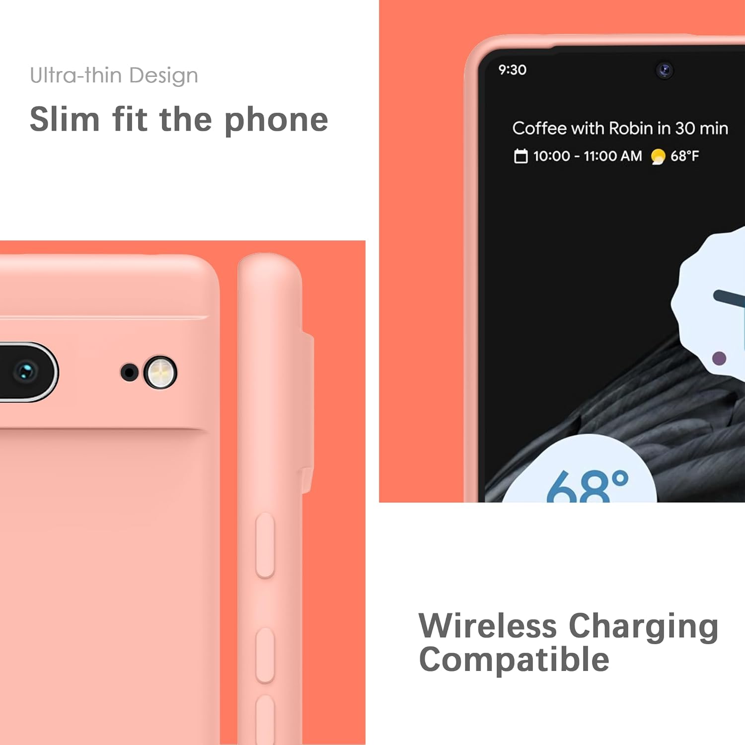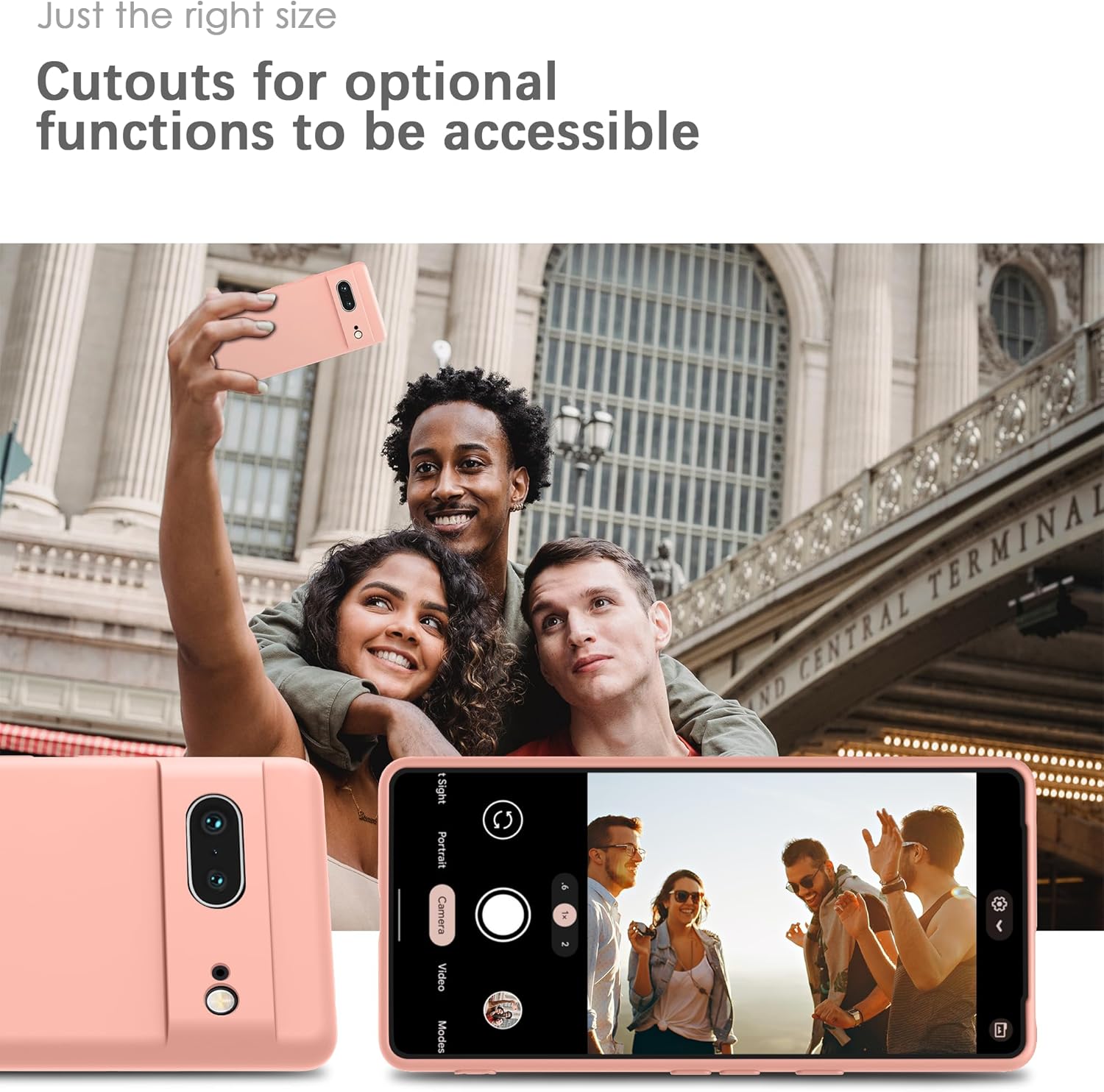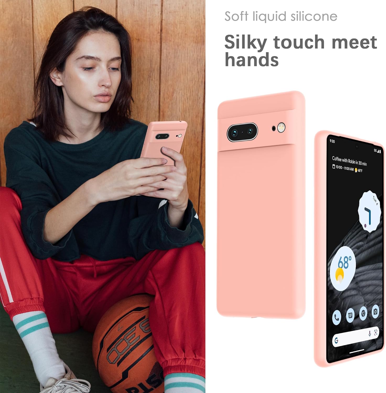YATWIN калъф за Google Pixel 7, първокласен силиконов калъф за мобилен телефон със защита на камерата, копринен, мек на допир, ултра тънък, удароустойчив, устойчив на надраскване, защитен калъф, розов