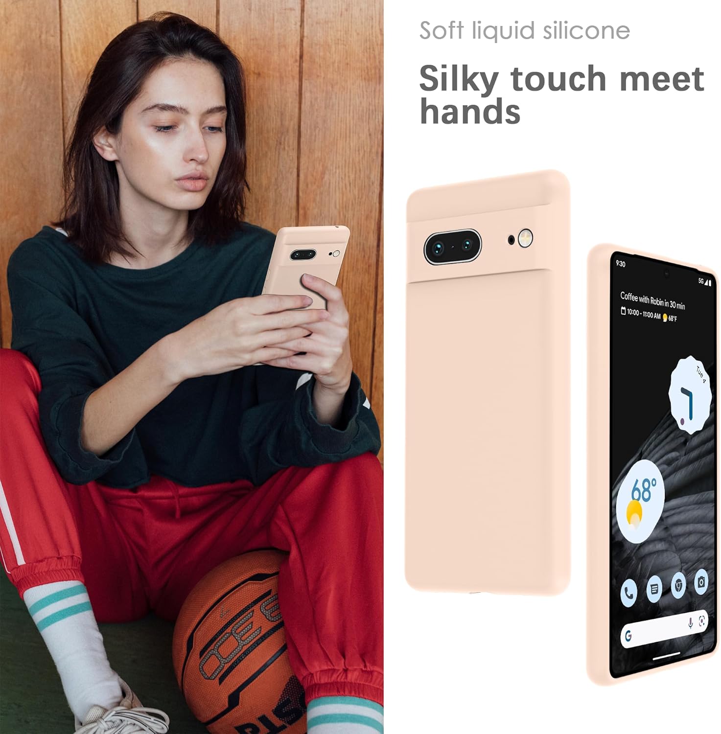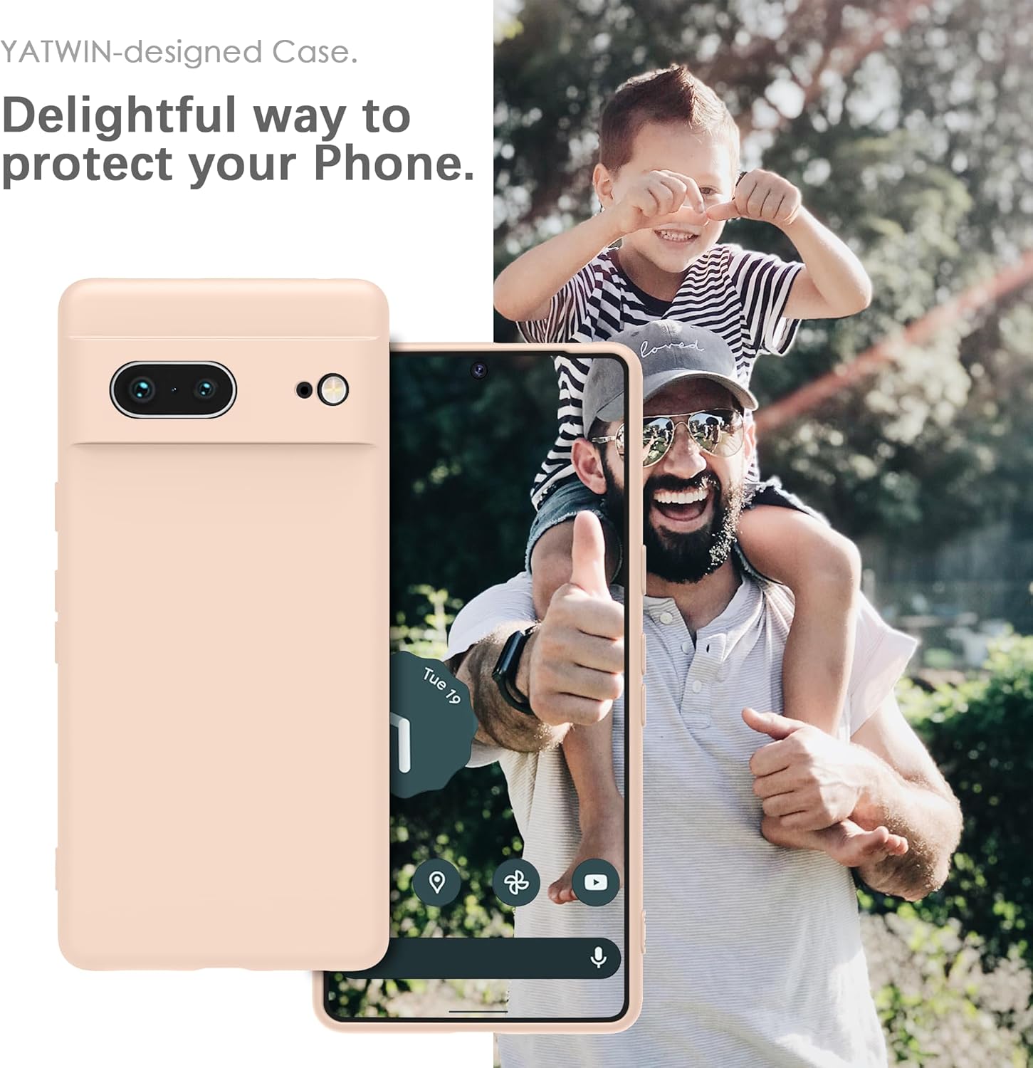 YATWIN калъф за Google Pixel 7, първокласен силиконов калъф за мобилен телефон със защита на камерата, копринен, мек на допир, ултра тънък, удароустойчив, устойчив на надраскване, защитен калъф, светло розов