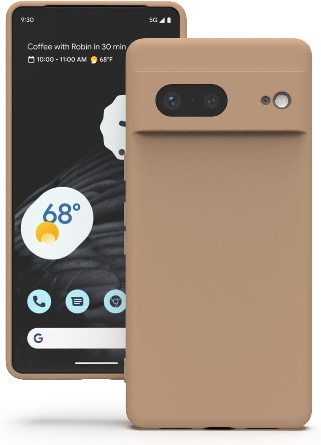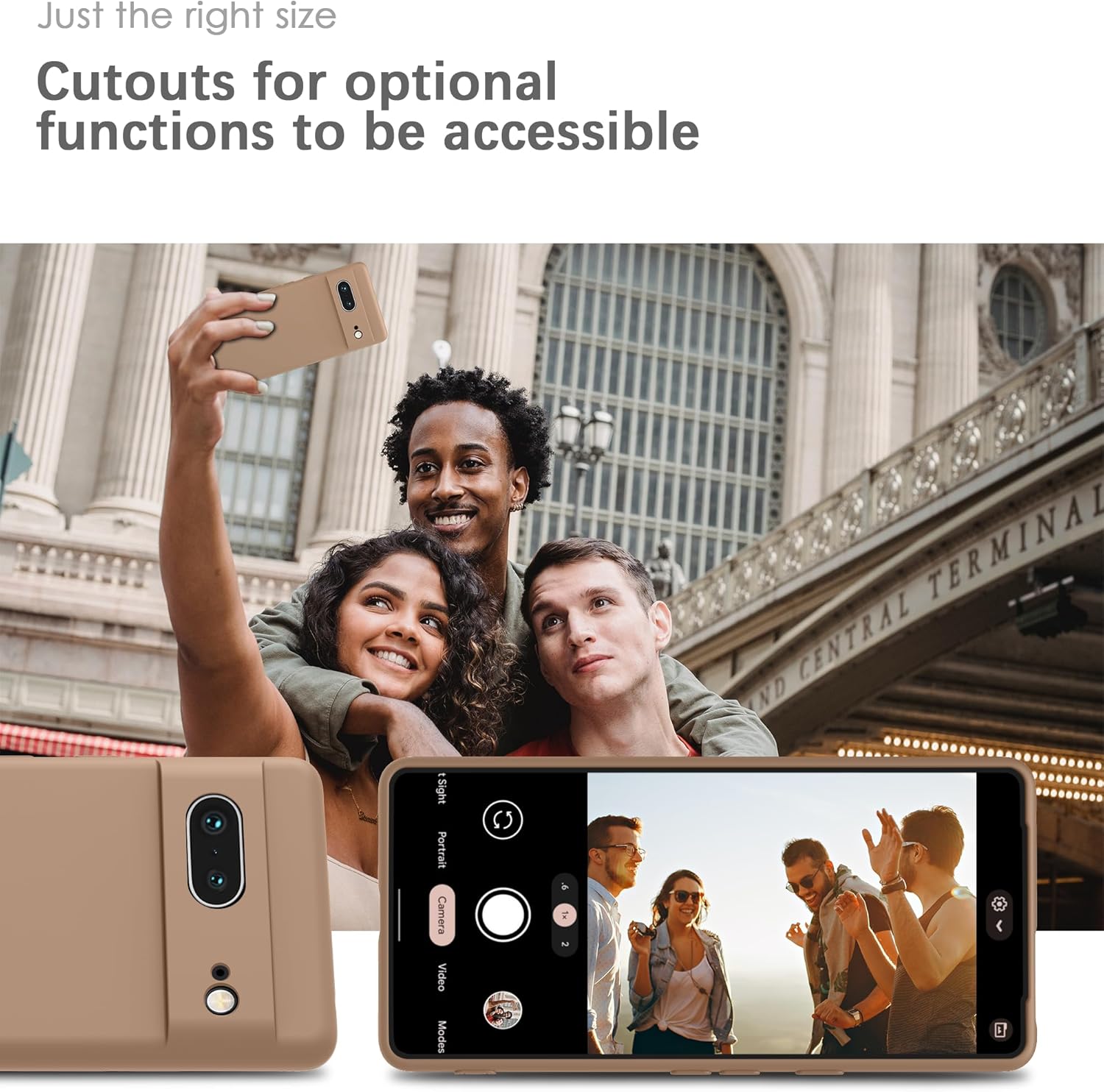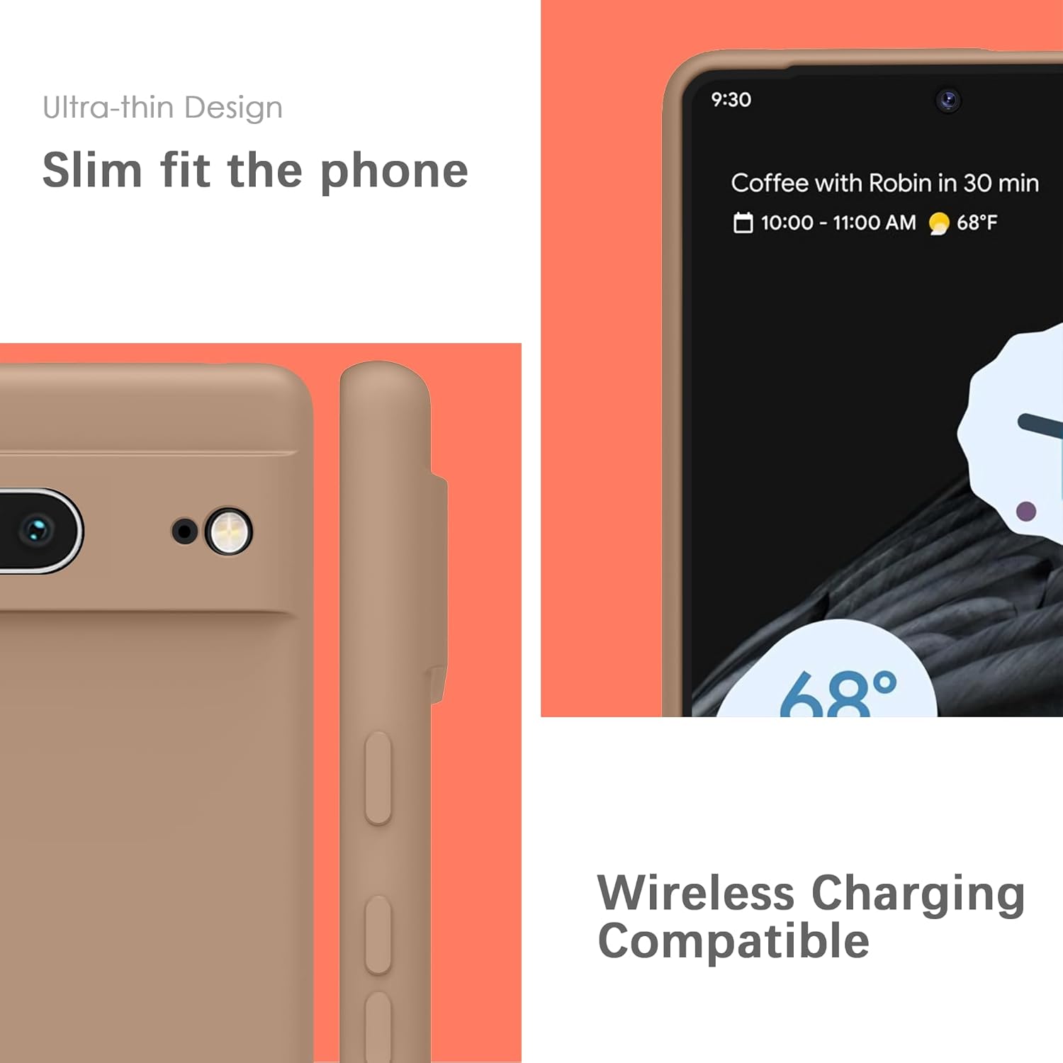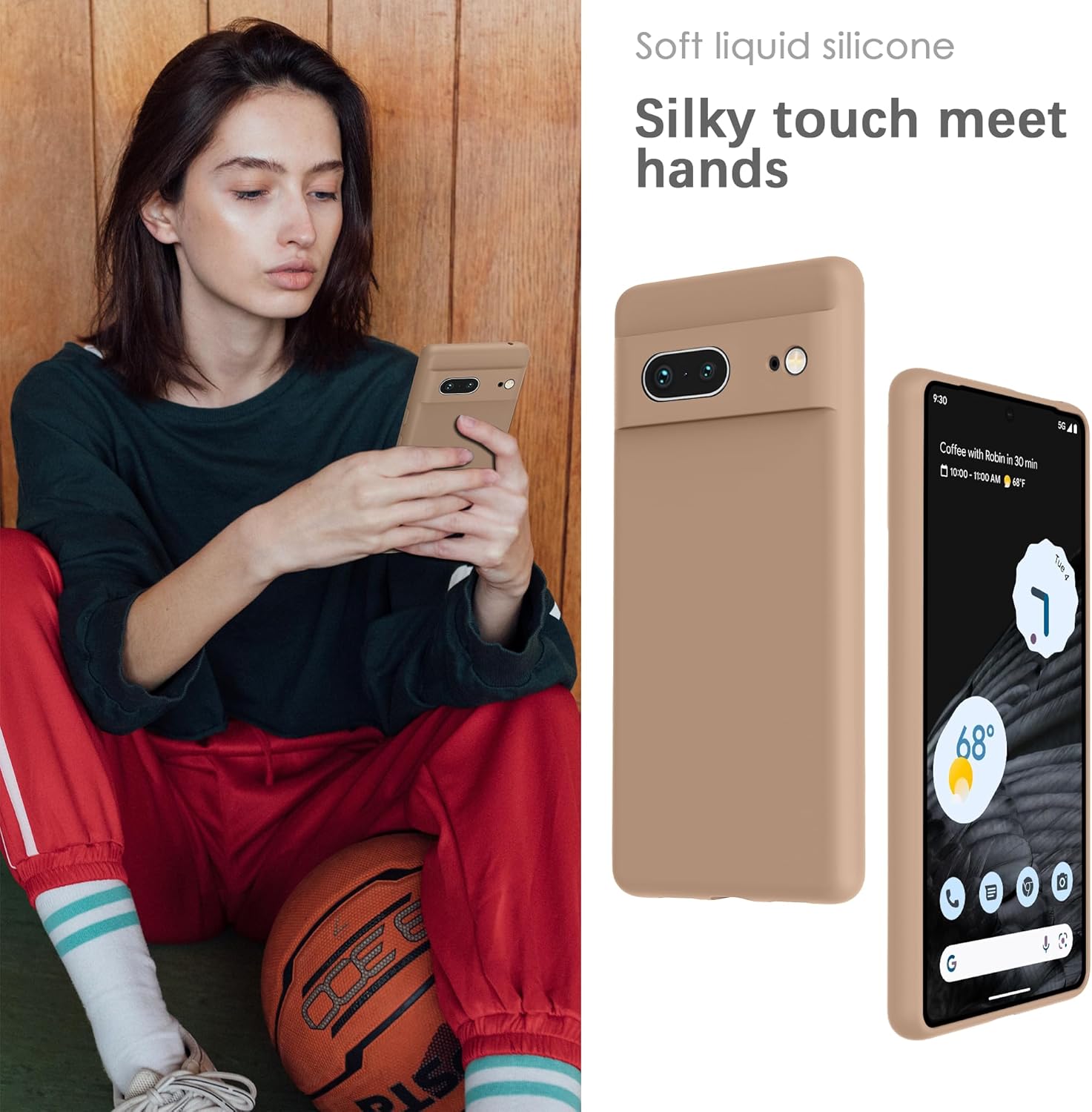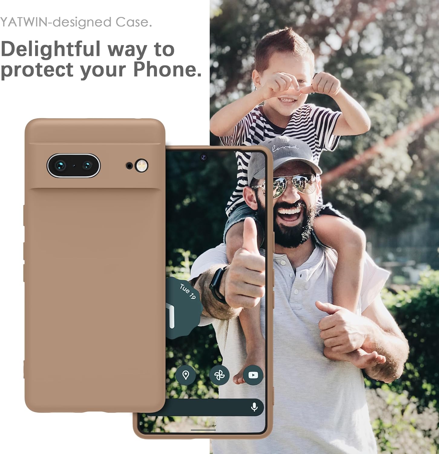 YATWIN калъф за Google Pixel 7, първокласен силиконов калъф за мобилен телефон със защита на камерата, копринен, мек на допир, ултра тънък, удароустойчив, устойчив на надраскване, защитен калъф, цвят чай с мляко