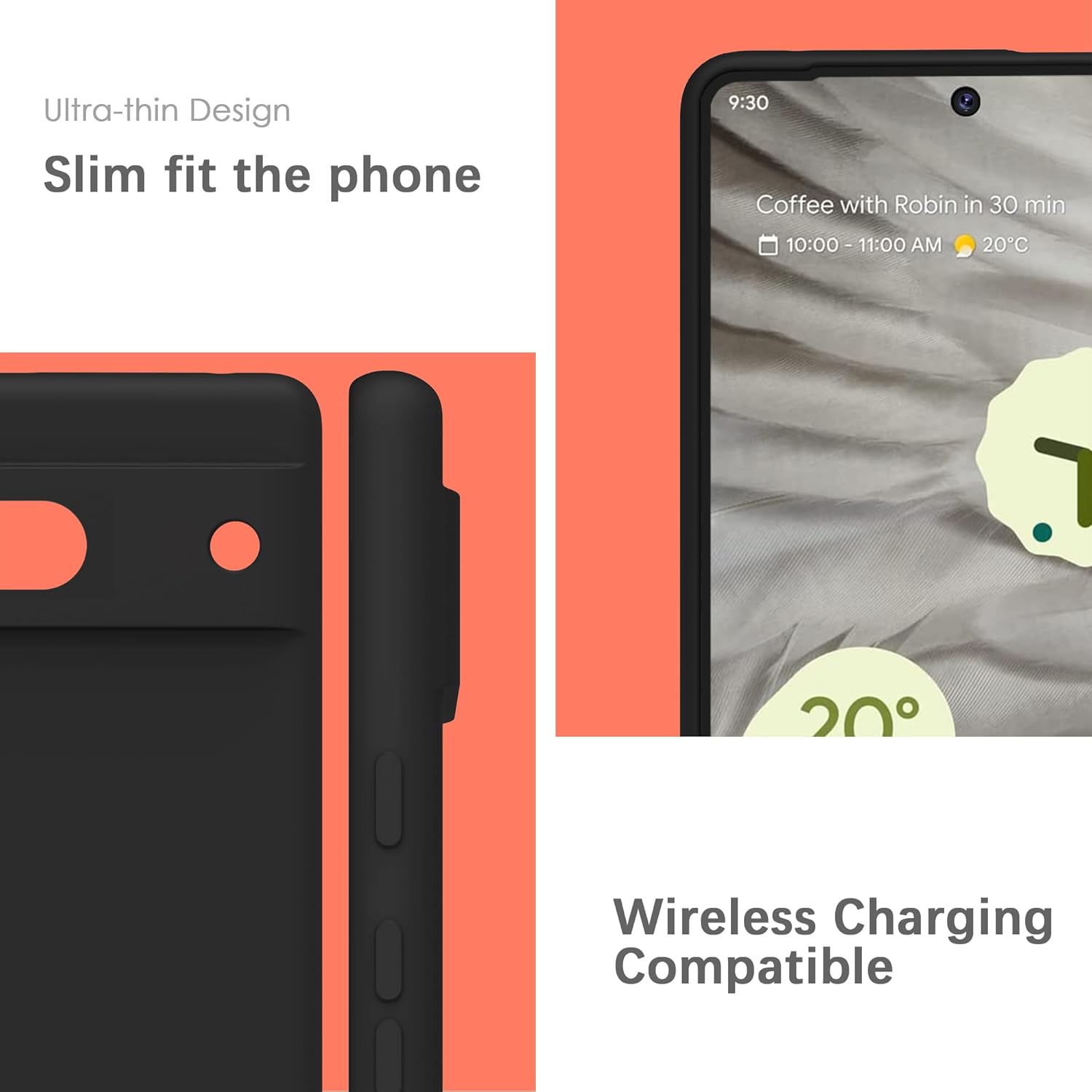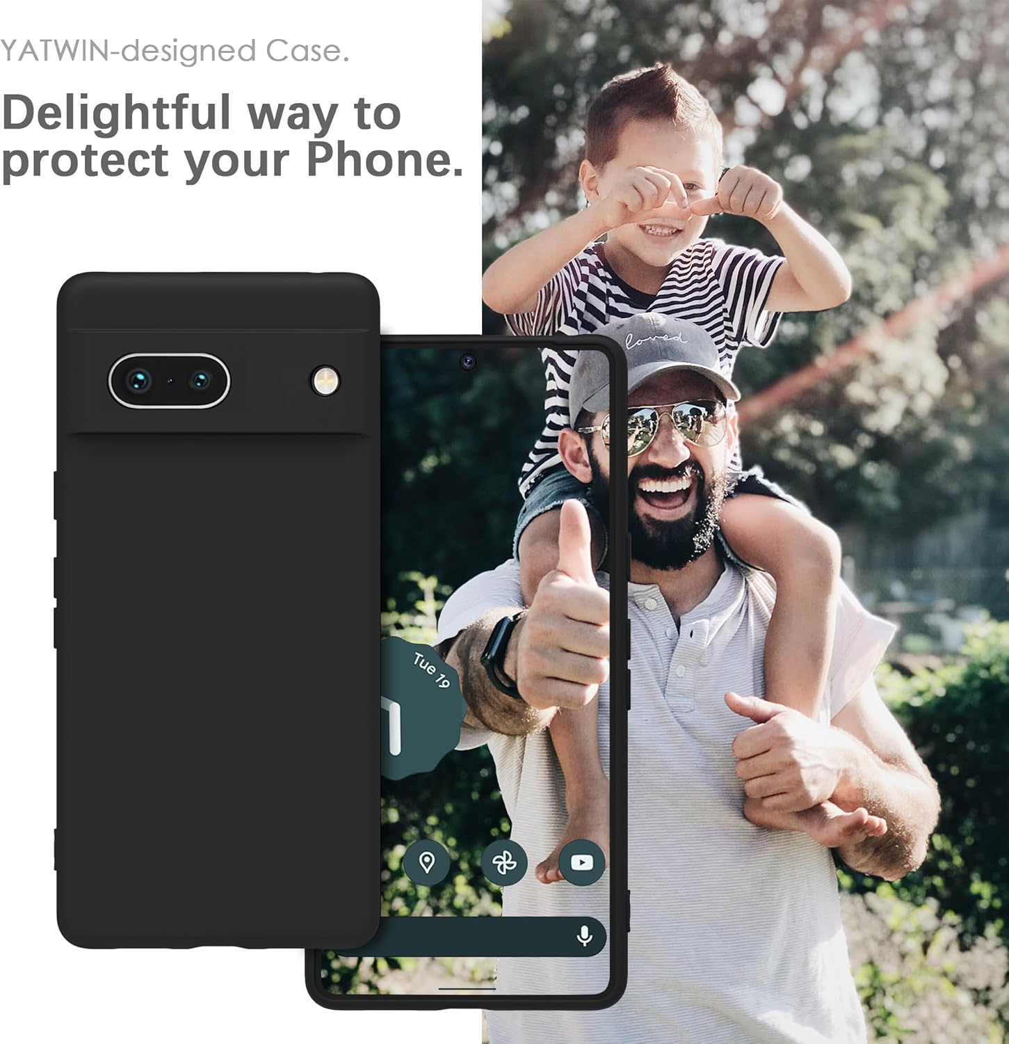 YATWIN калъф за Google Pixel 7A, първокласен силиконов калъф за мобилен телефон със защита на камерата, копринен, мек на допир, ултра тънък, удароустойчив, устойчив на надраскване, защитен калъф, черен
