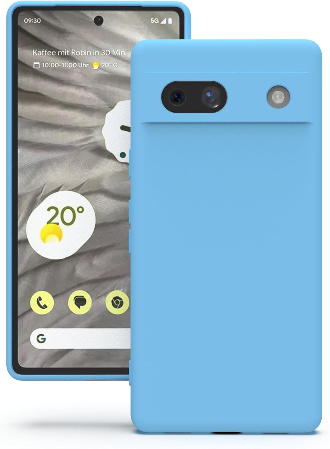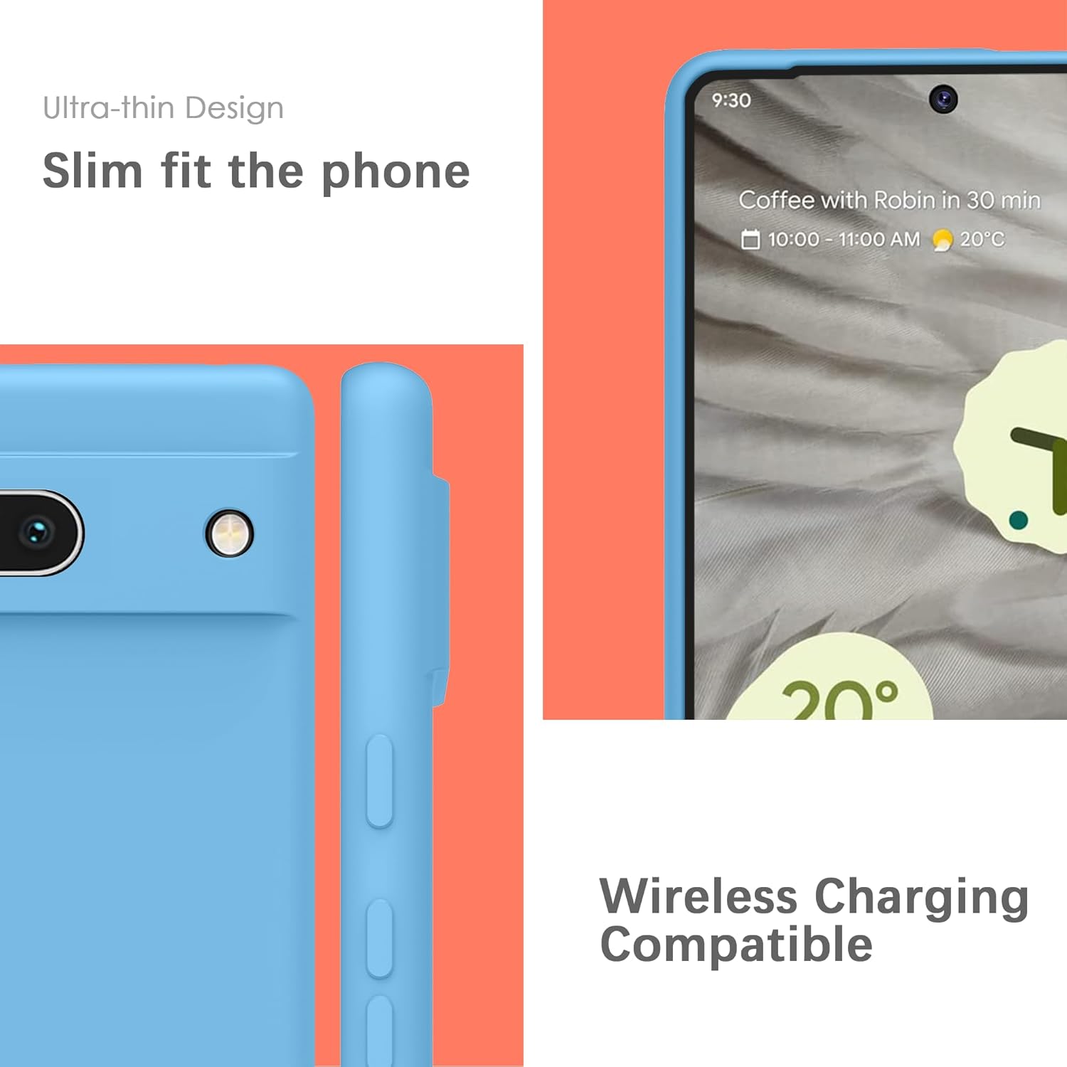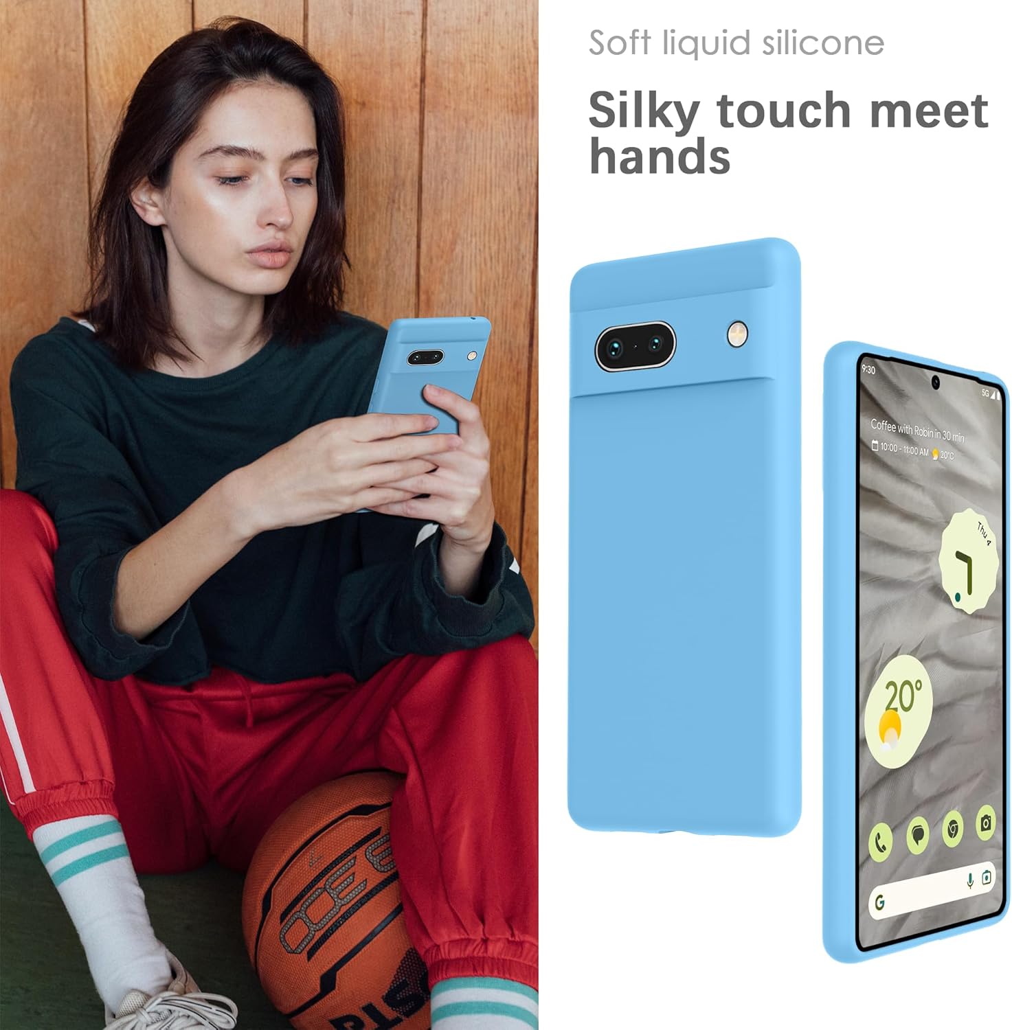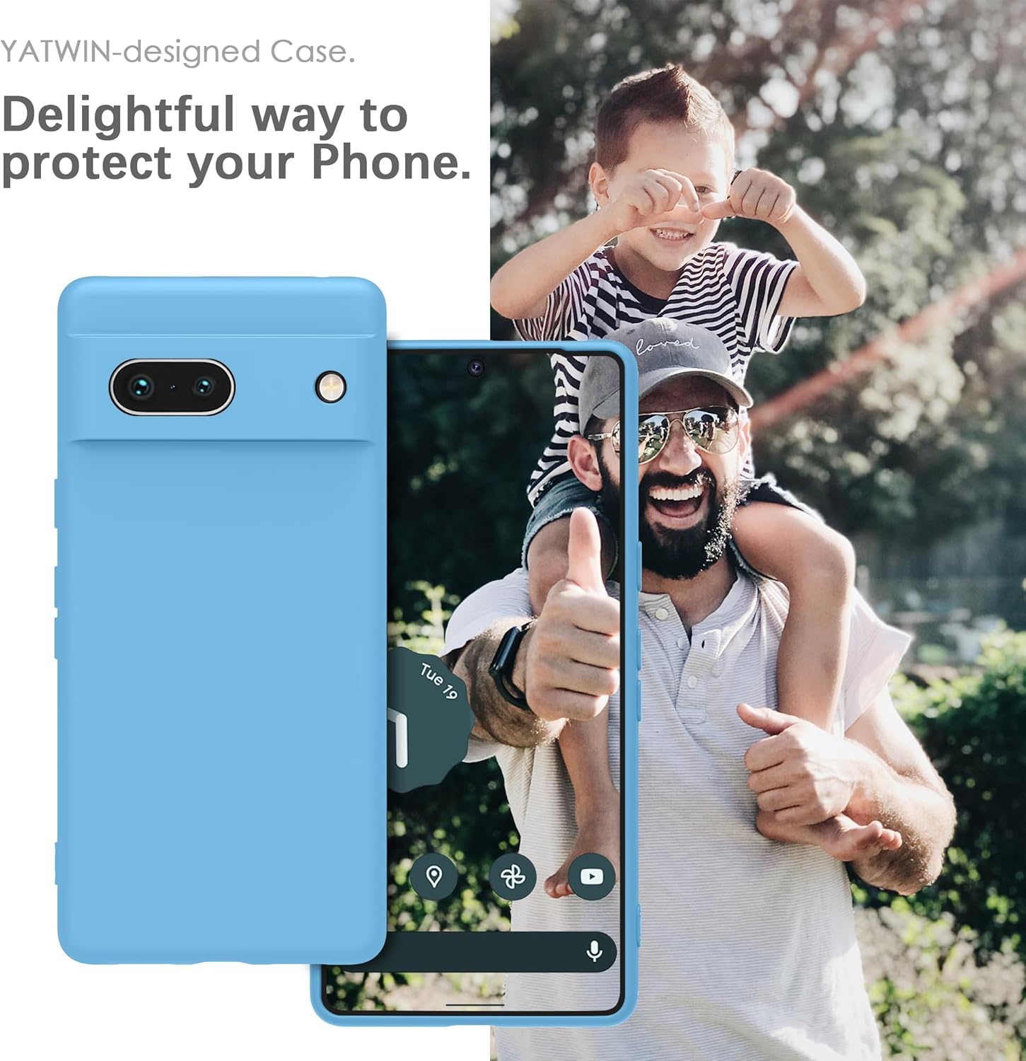 YATWIN калъф за Google Pixel 7A, първокласен силиконов калъф за мобилен телефон със защита на камерата, копринен, мек на допир, ултра тънък, удароустойчив, устойчив на надраскване, защитен калъф, небесно син