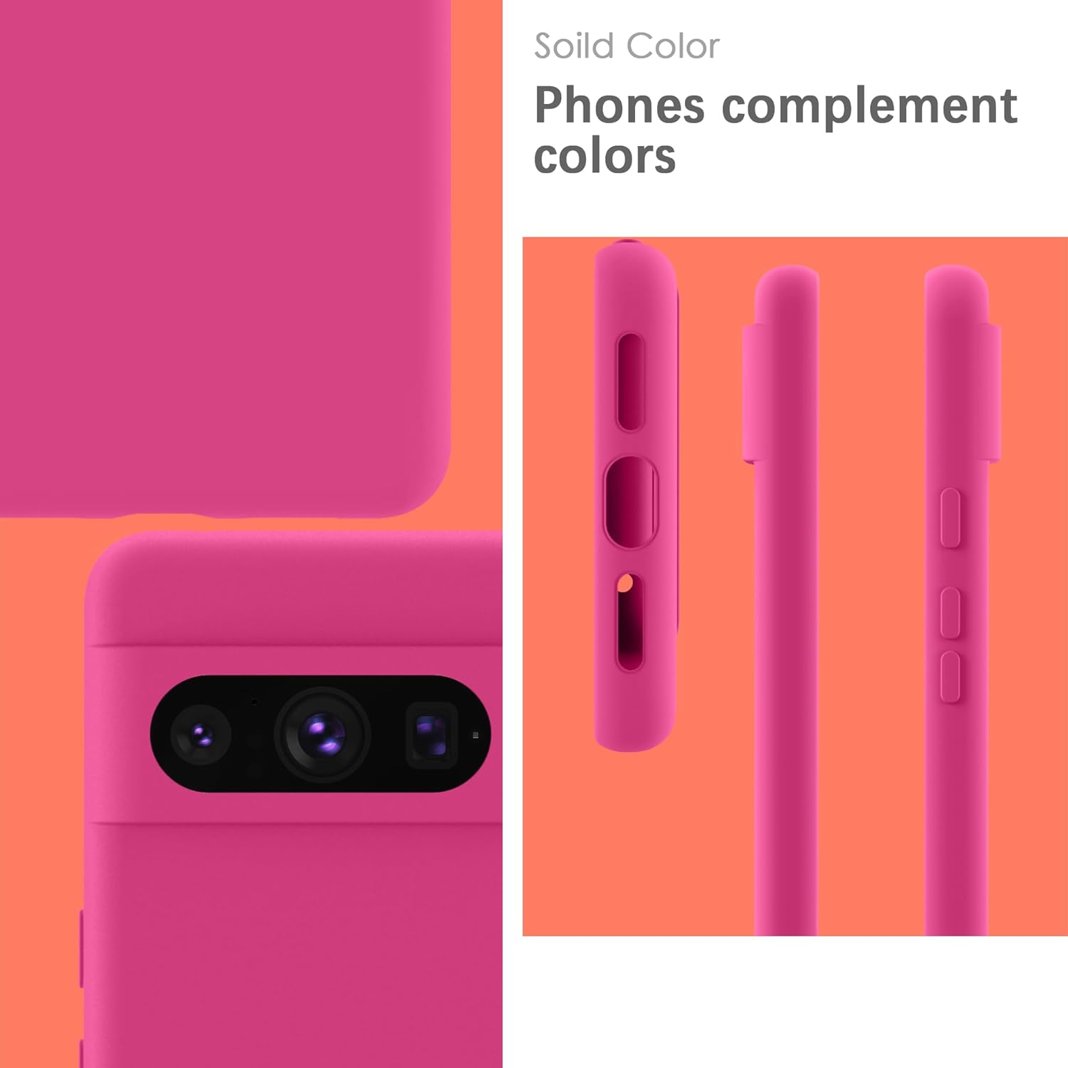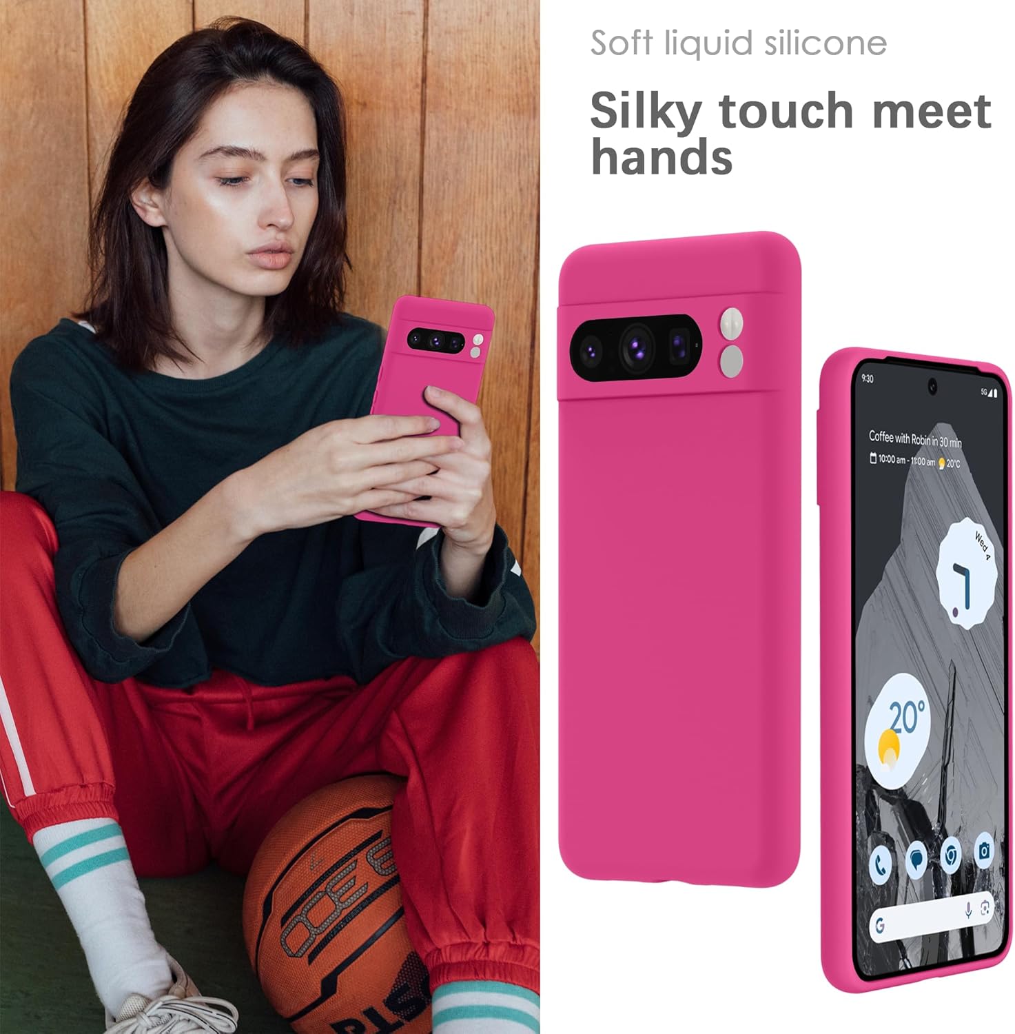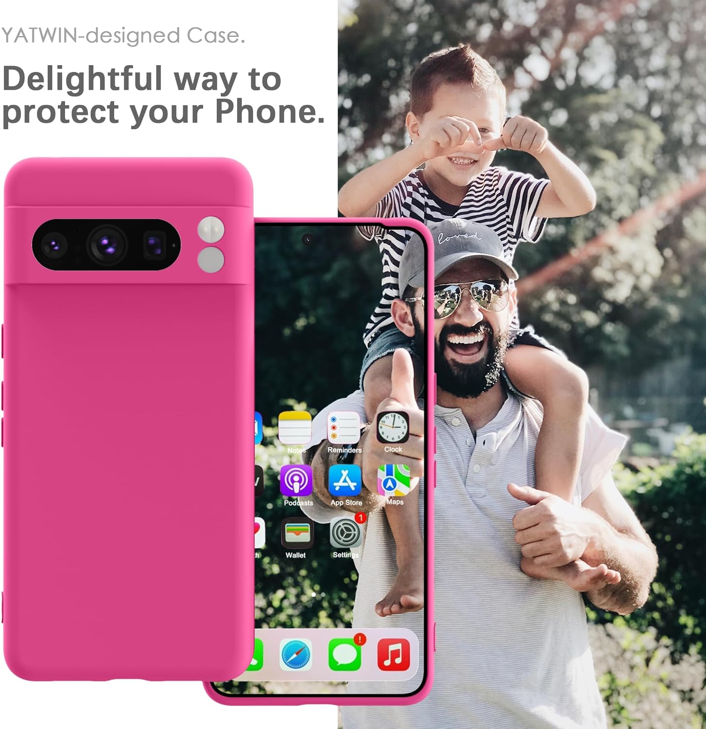 YATWIN калъф за Google Pixel 8 Pro, първокласен силиконов калъф за мобилен телефон със защита на камерата, копринен, мек на допир, ултра тънък, удароустойчив, устойчив на надраскване, защитен калъф, магента
