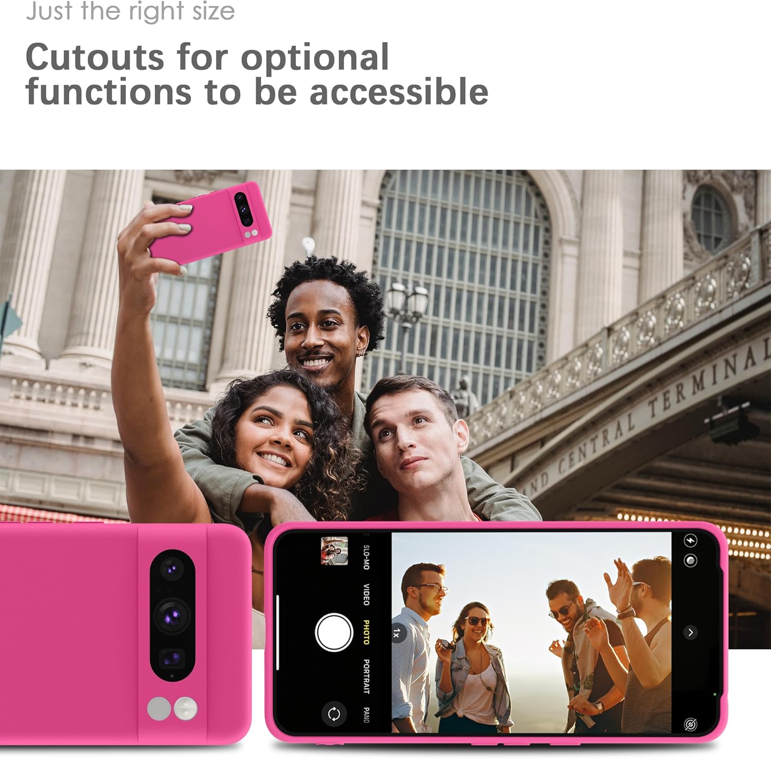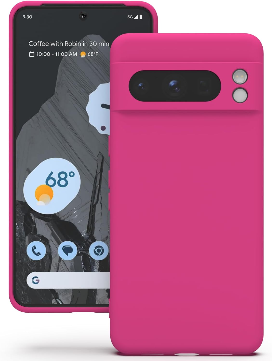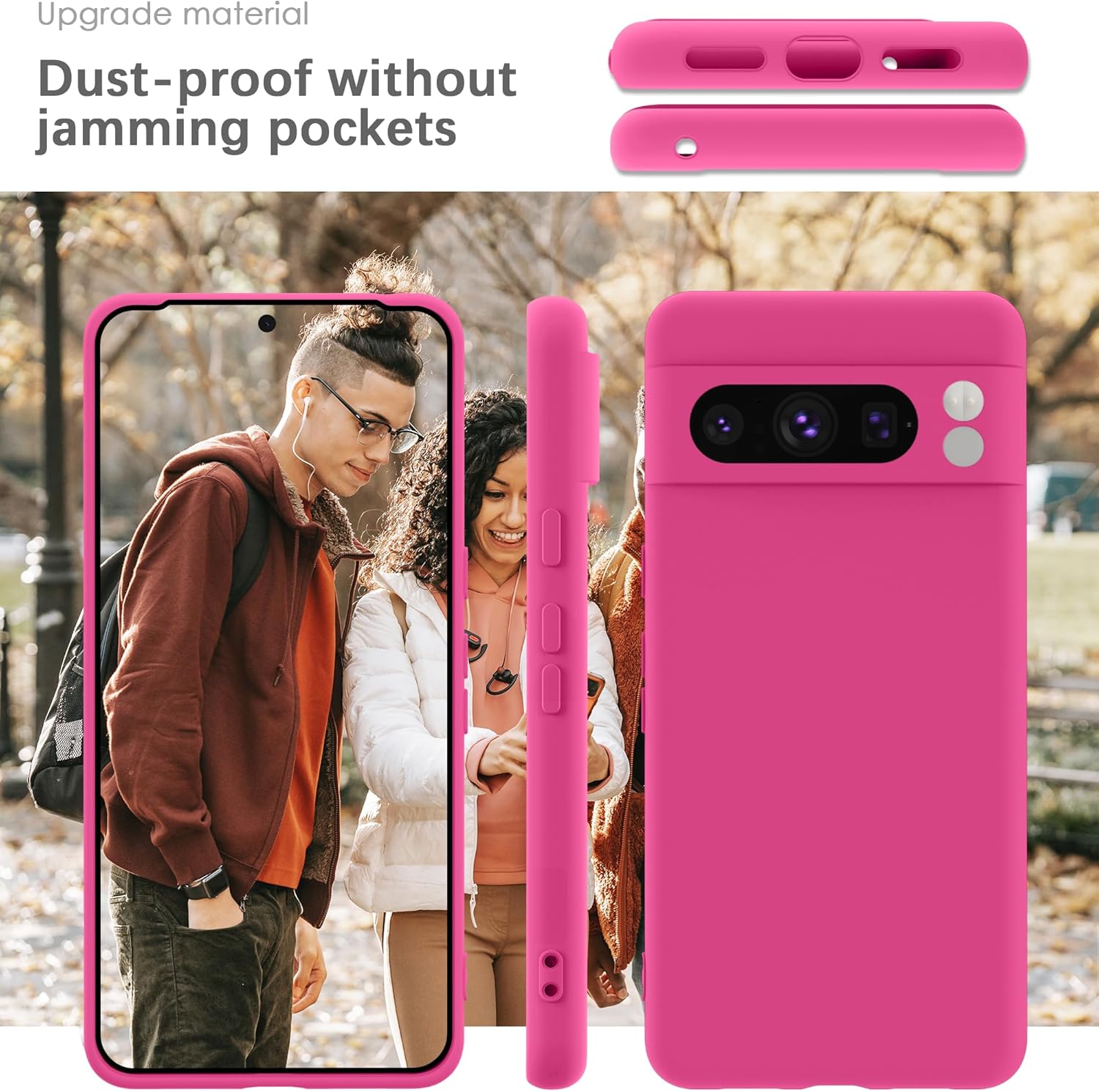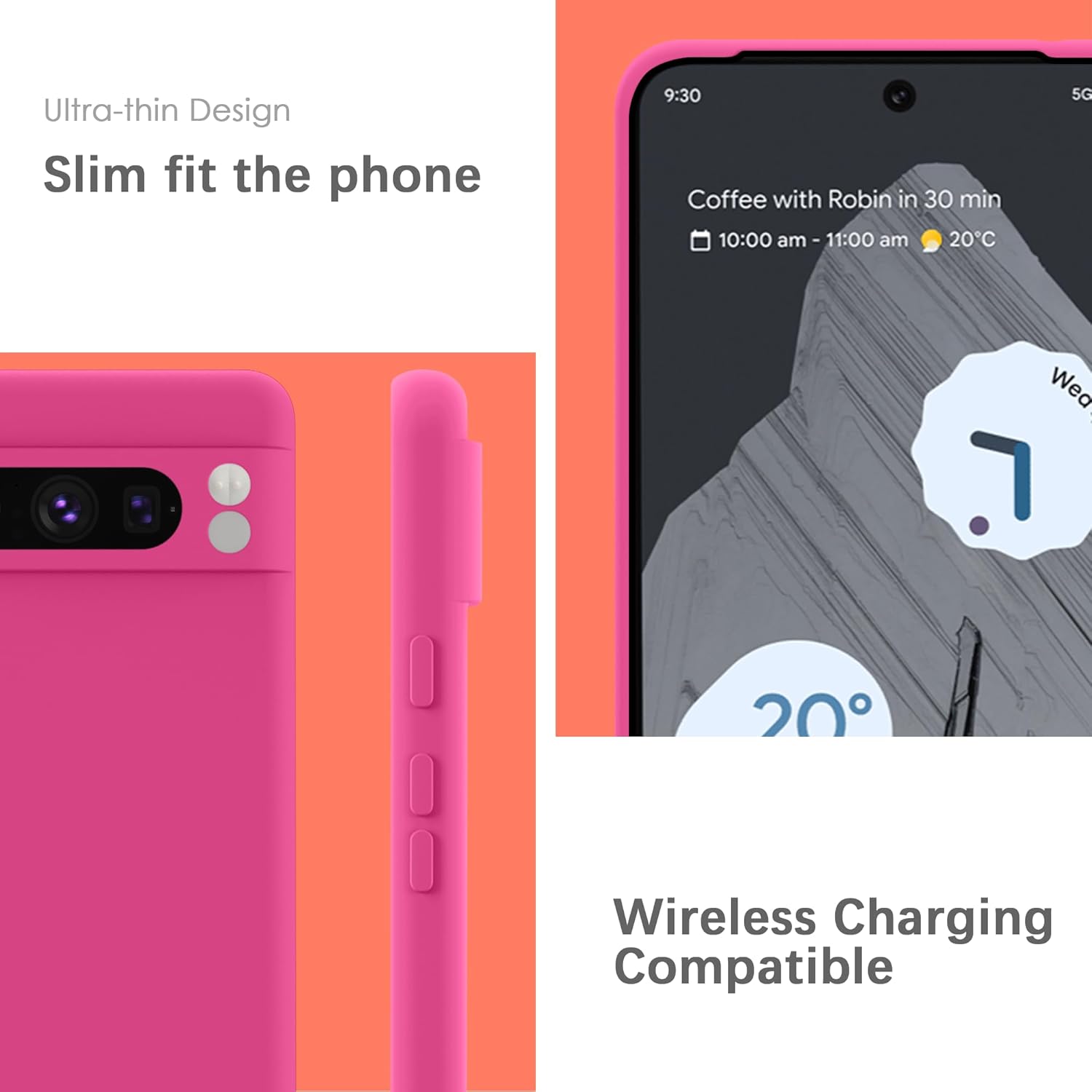 YATWIN калъф за Google Pixel 8 Pro, първокласен силиконов калъф за мобилен телефон със защита на камерата, копринен, мек на допир, ултра тънък, удароустойчив, устойчив на надраскване, защитен калъф, магента