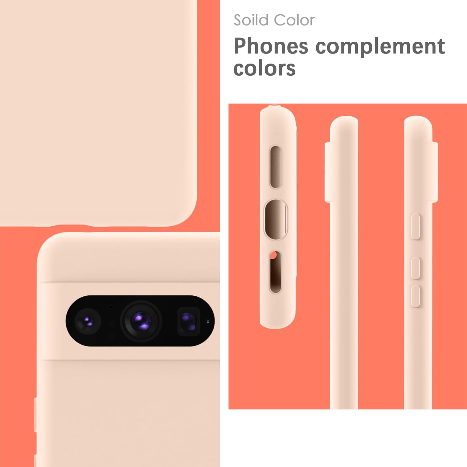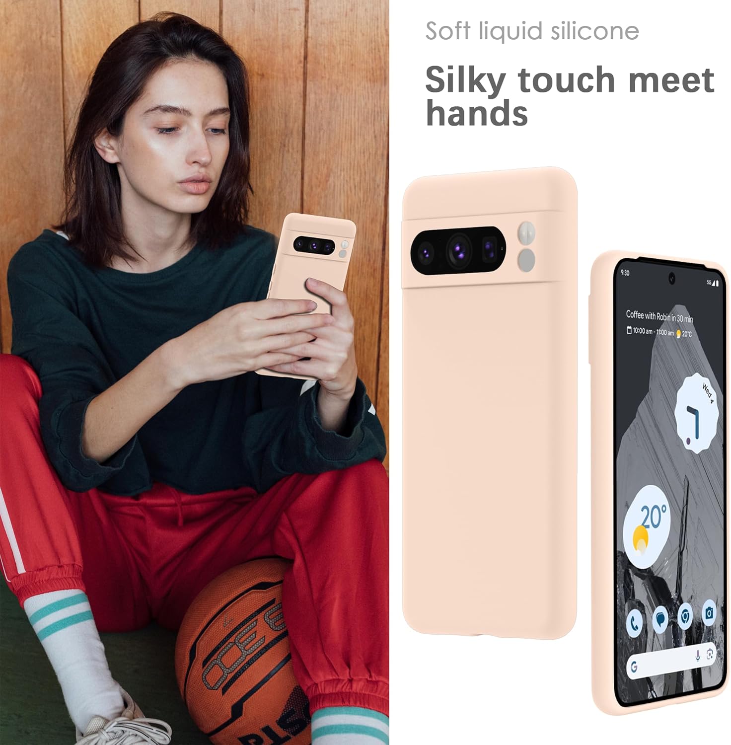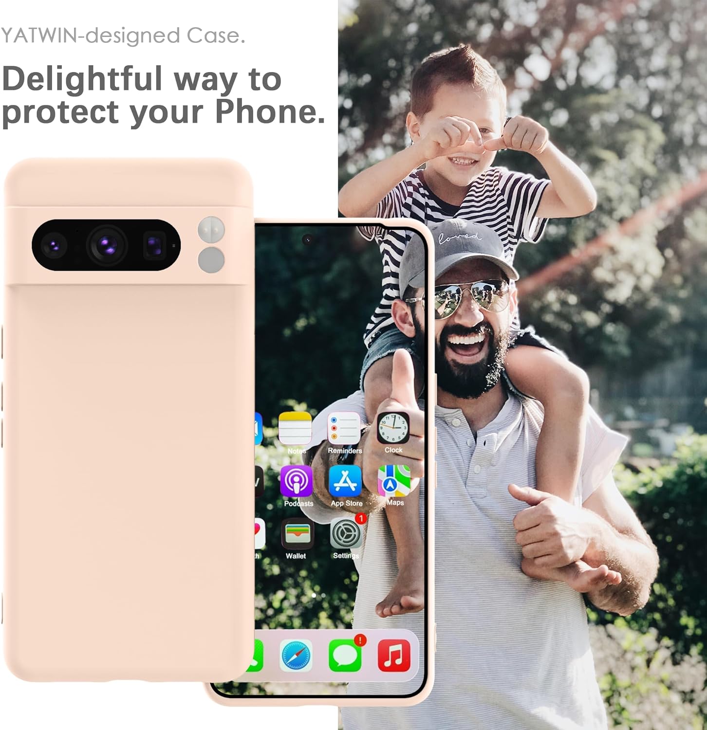 YATWIN калъф за Google Pixel 8 Pro, първокласен силиконов калъф за мобилен телефон със защита на камерата, копринен, мек на допир, ултра тънък, удароустойчив, устойчив на надраскване, защитен калъф, светло розов