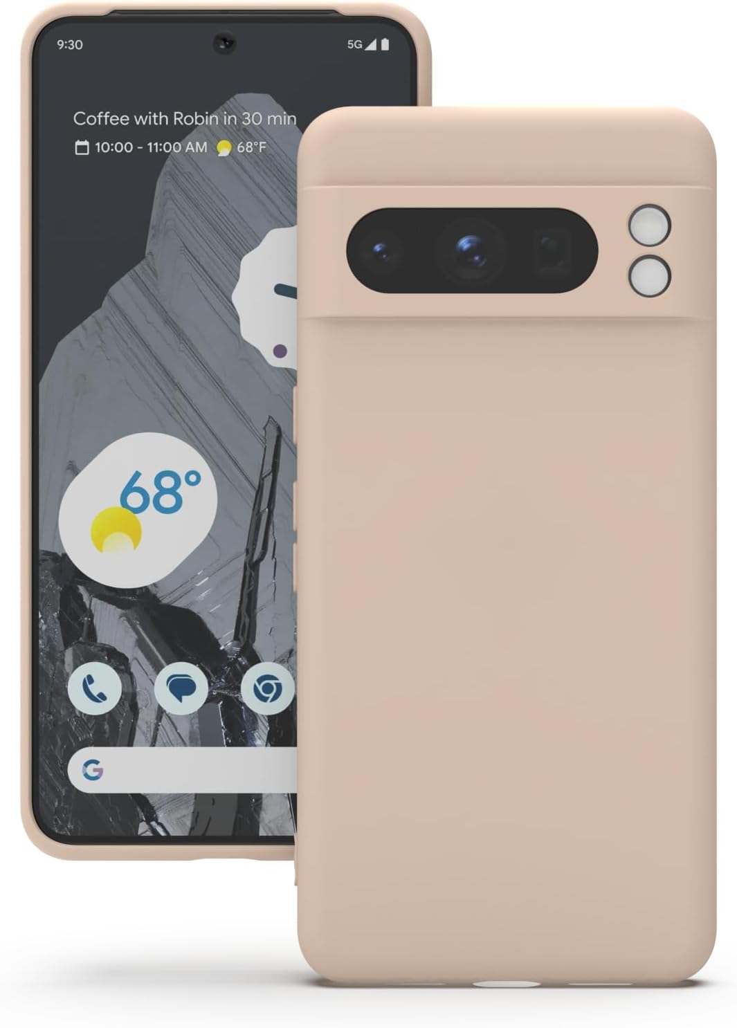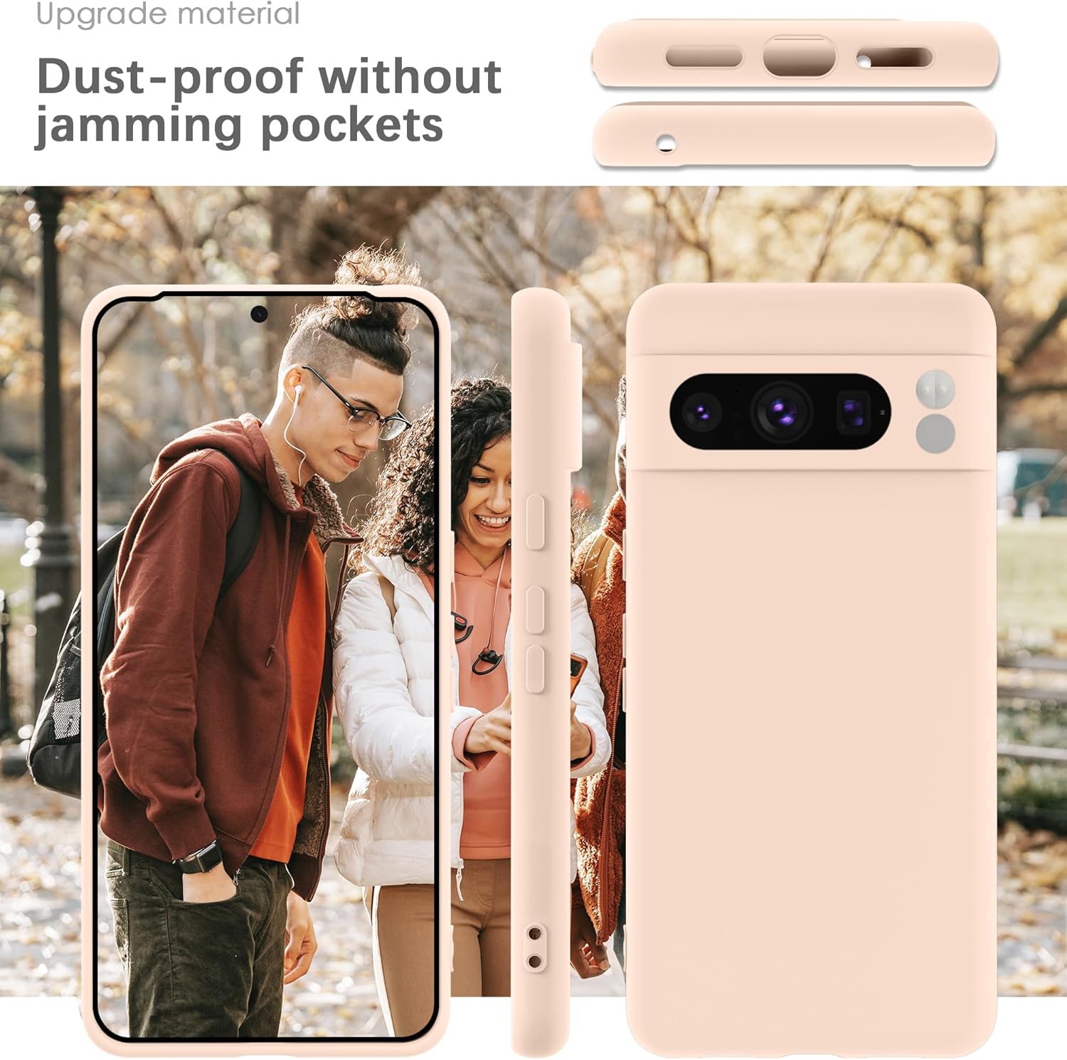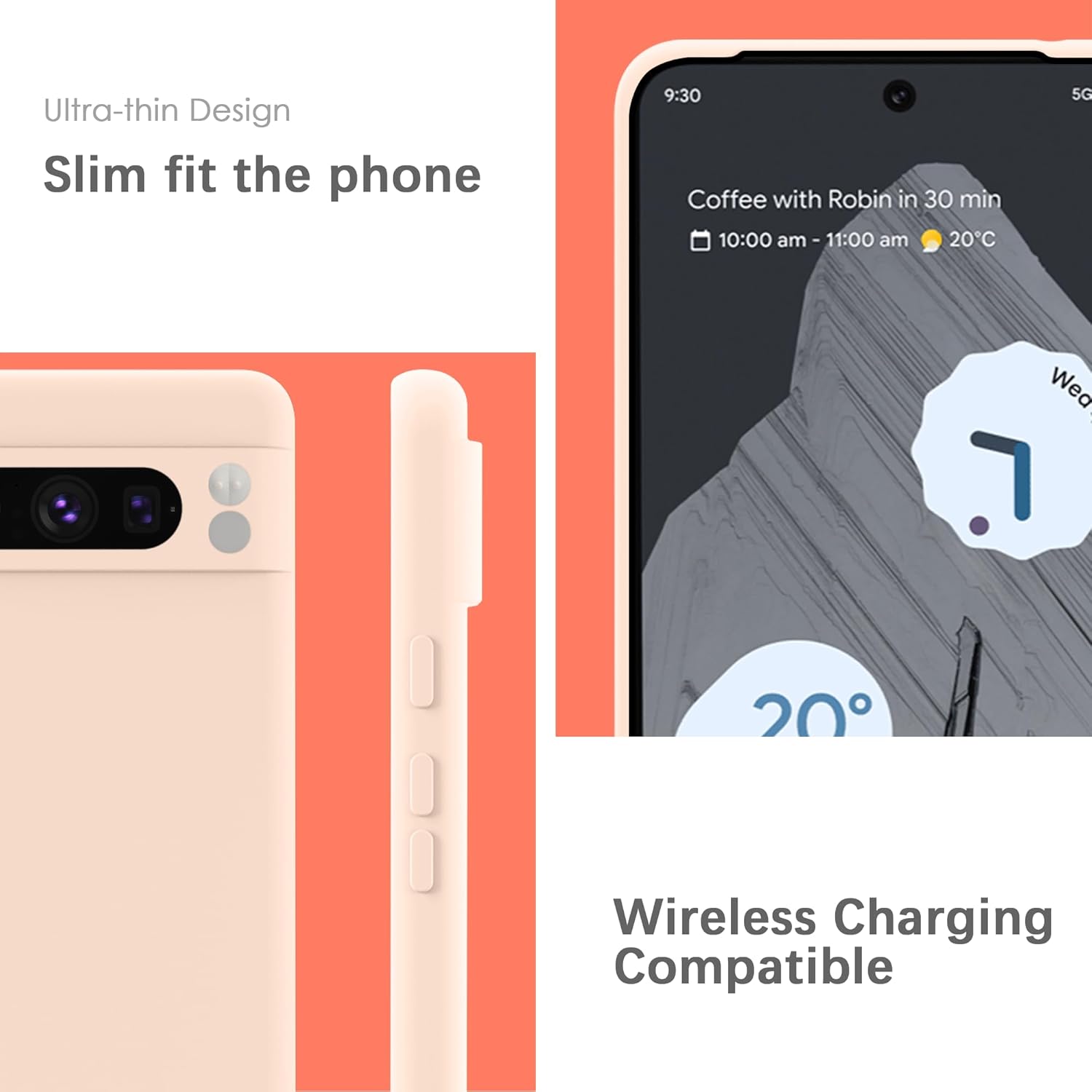 YATWIN калъф за Google Pixel 8 Pro, първокласен силиконов калъф за мобилен телефон със защита на камерата, копринен, мек на допир, ултра тънък, удароустойчив, устойчив на надраскване, защитен калъф, светло розов