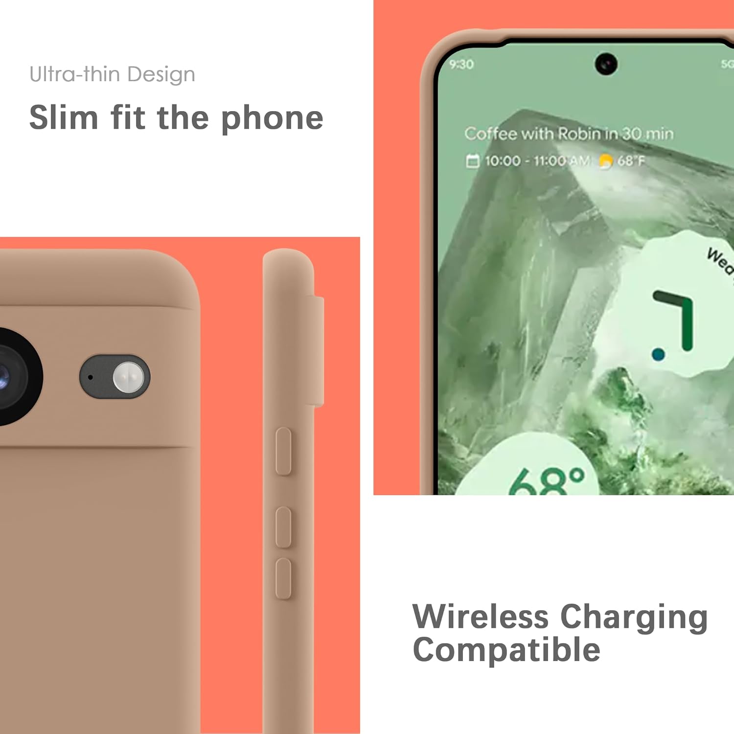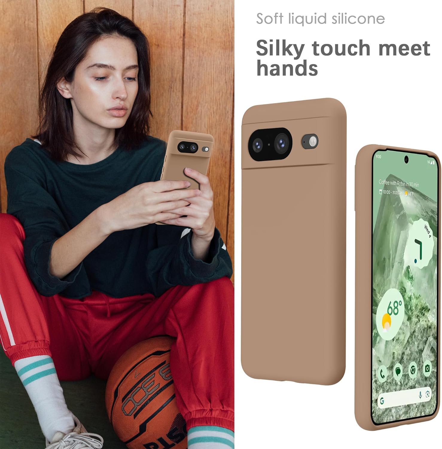 YATWIN калъф за Google Pixel 8, първокласен силиконов калъф за мобилен телефон с копринено меко покритие, ултра тънък, удароустойчив, устойчив на надраскване, защитен калъф, цвят чай с мляко