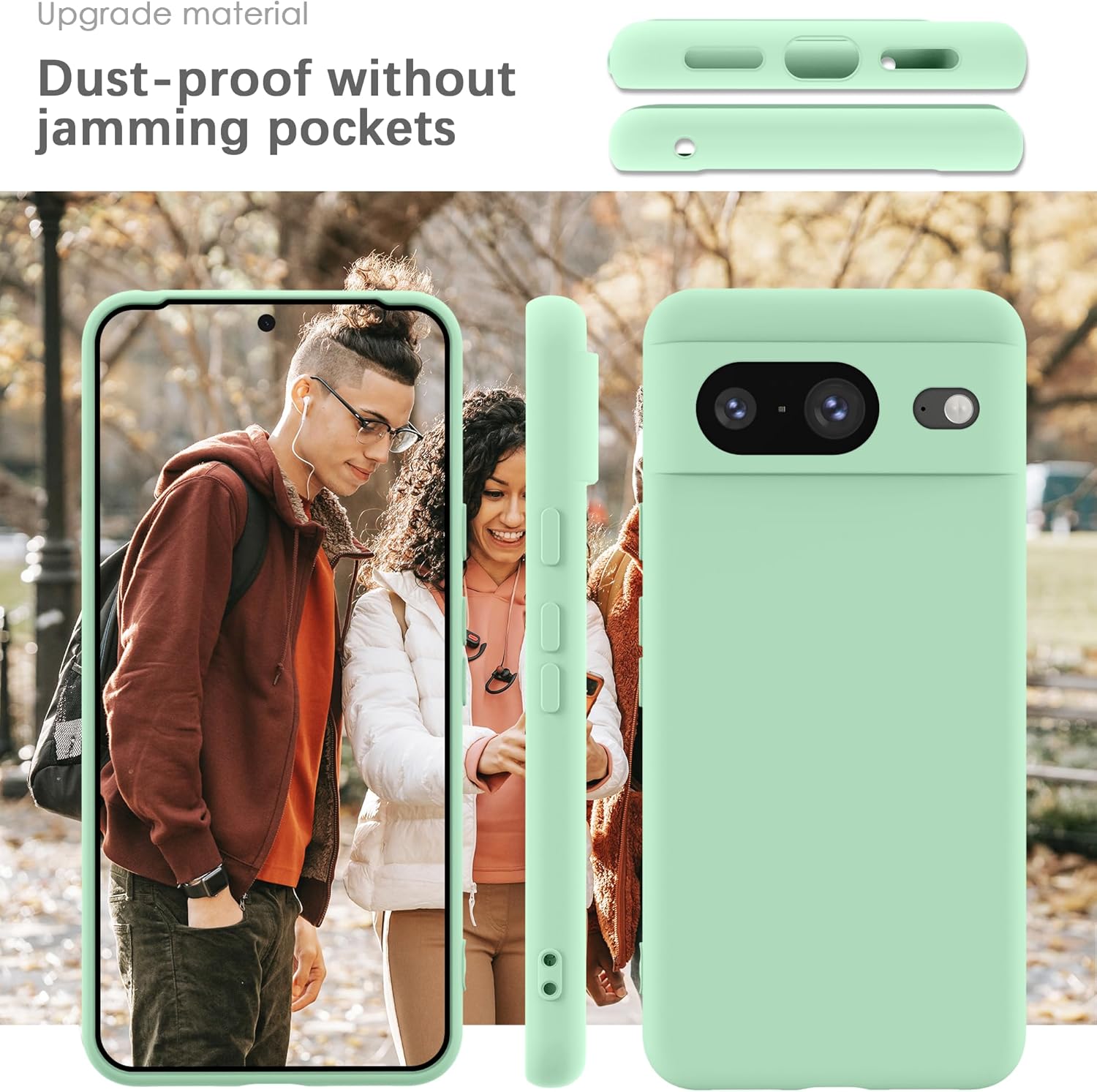 YATWIN калъф за Google Pixel 8, първокласен силиконов калъф за мобилен телефон със защита на камерата, копринен, мек на допир, ултра тънък, удароустойчив, устойчив на надраскване, защитен калъф, светло циан