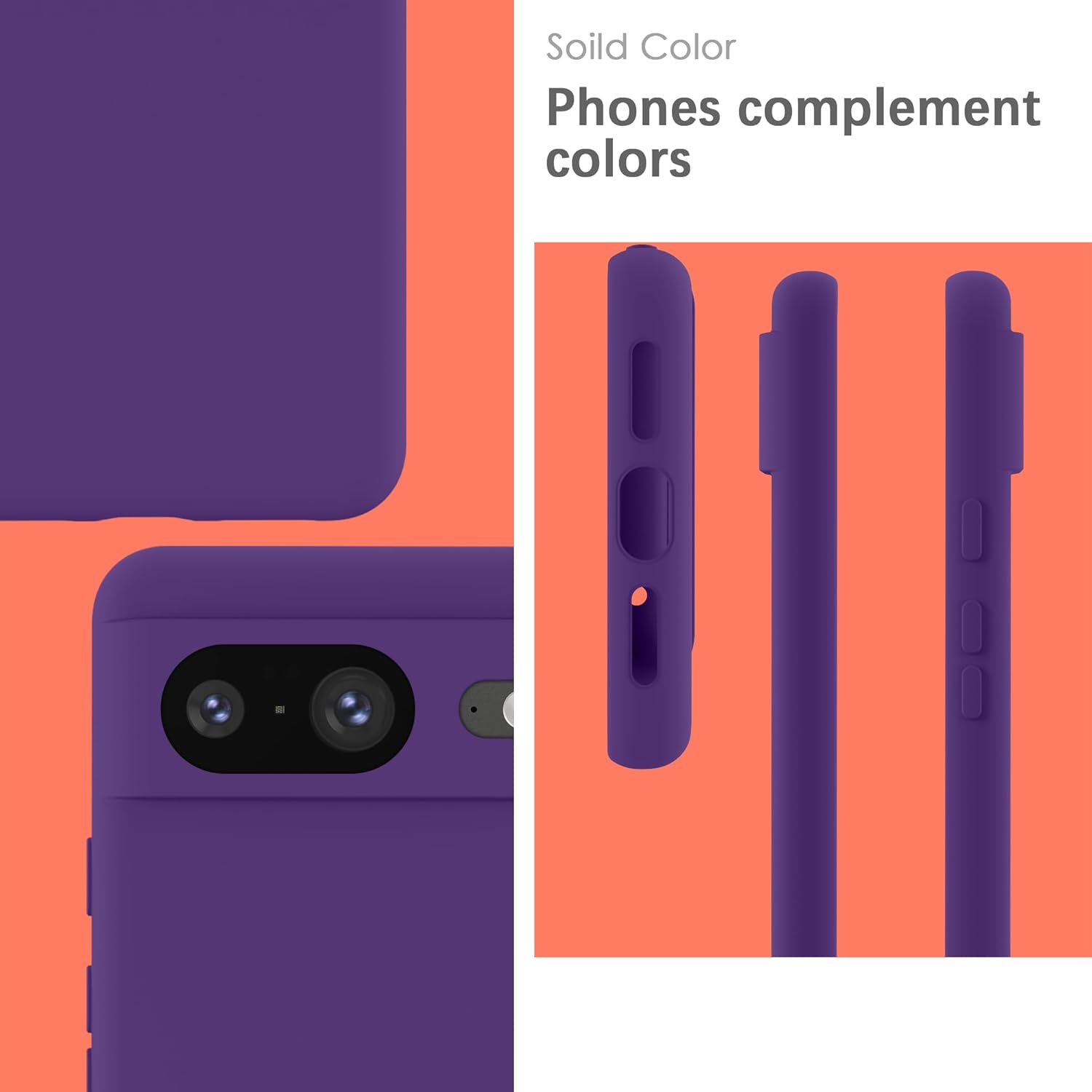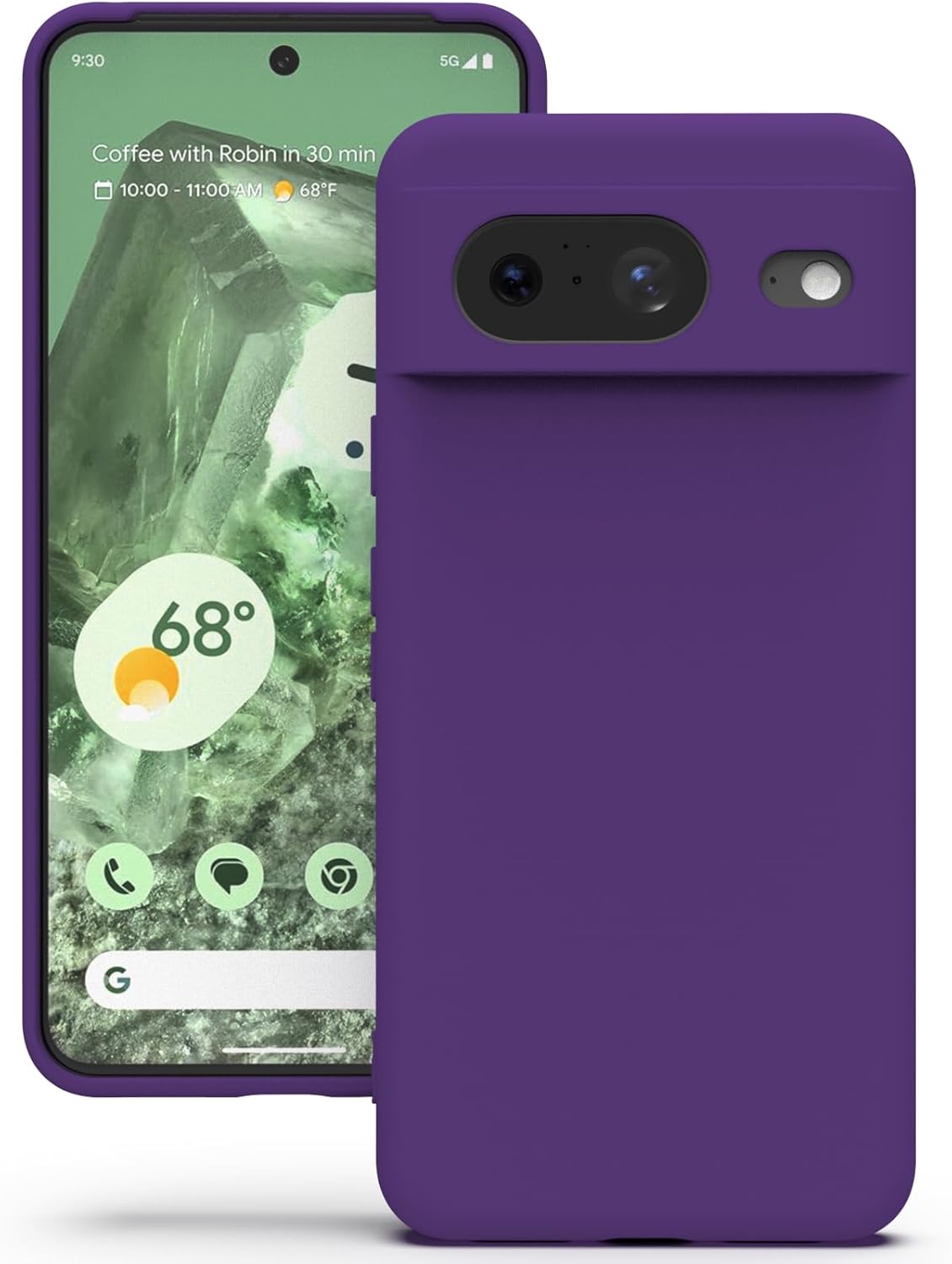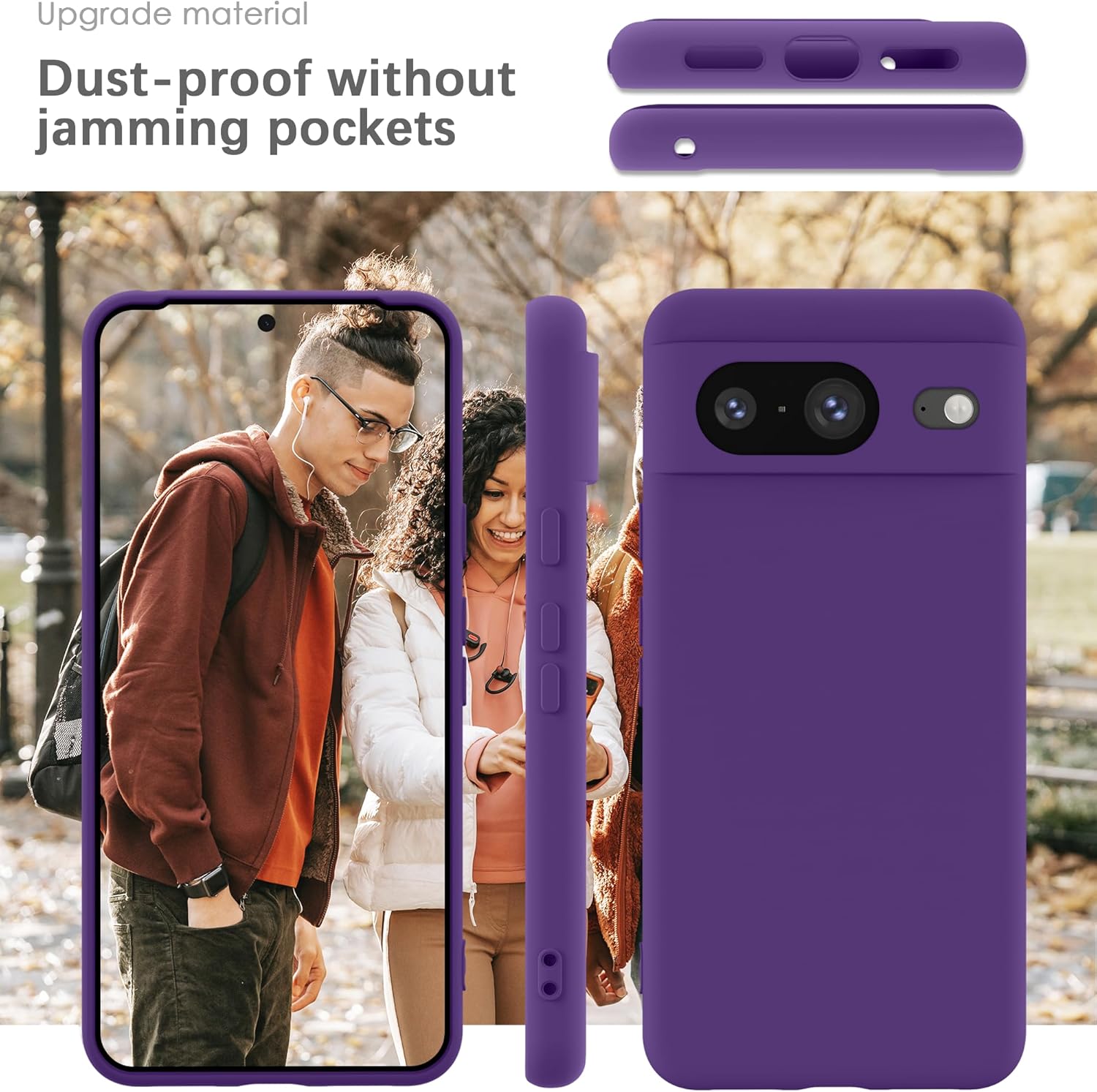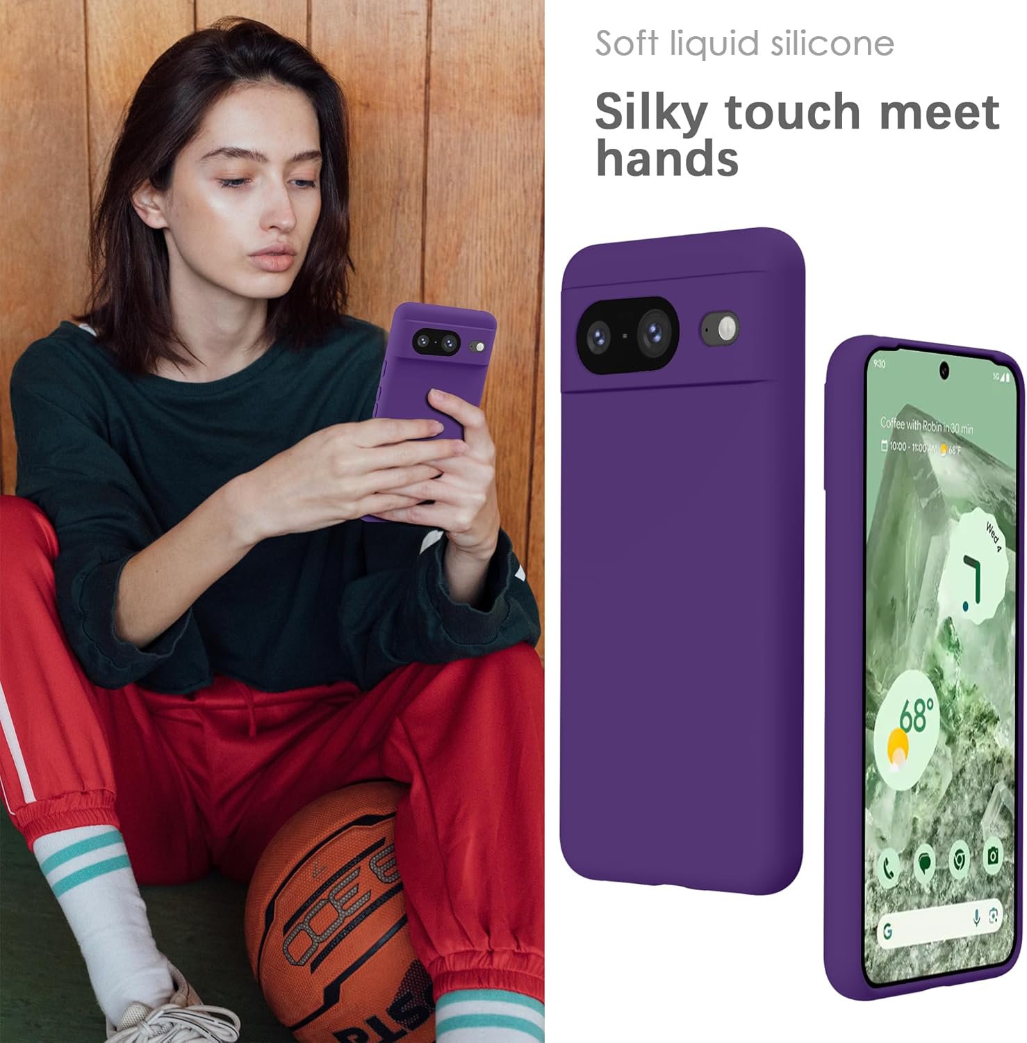 YATWIN калъф за Google Pixel 8, първокласен силиконов калъф за мобилен телефон със защита на камерата, копринен, мек на допир, ултра тънък, удароустойчив, устойчив на надраскване, защитен калъф, виола