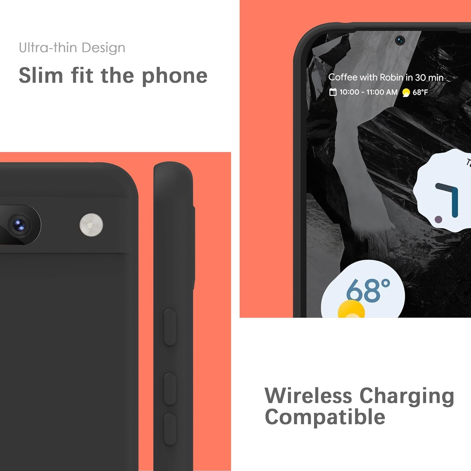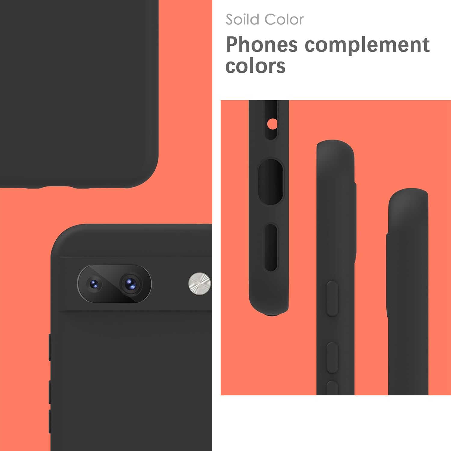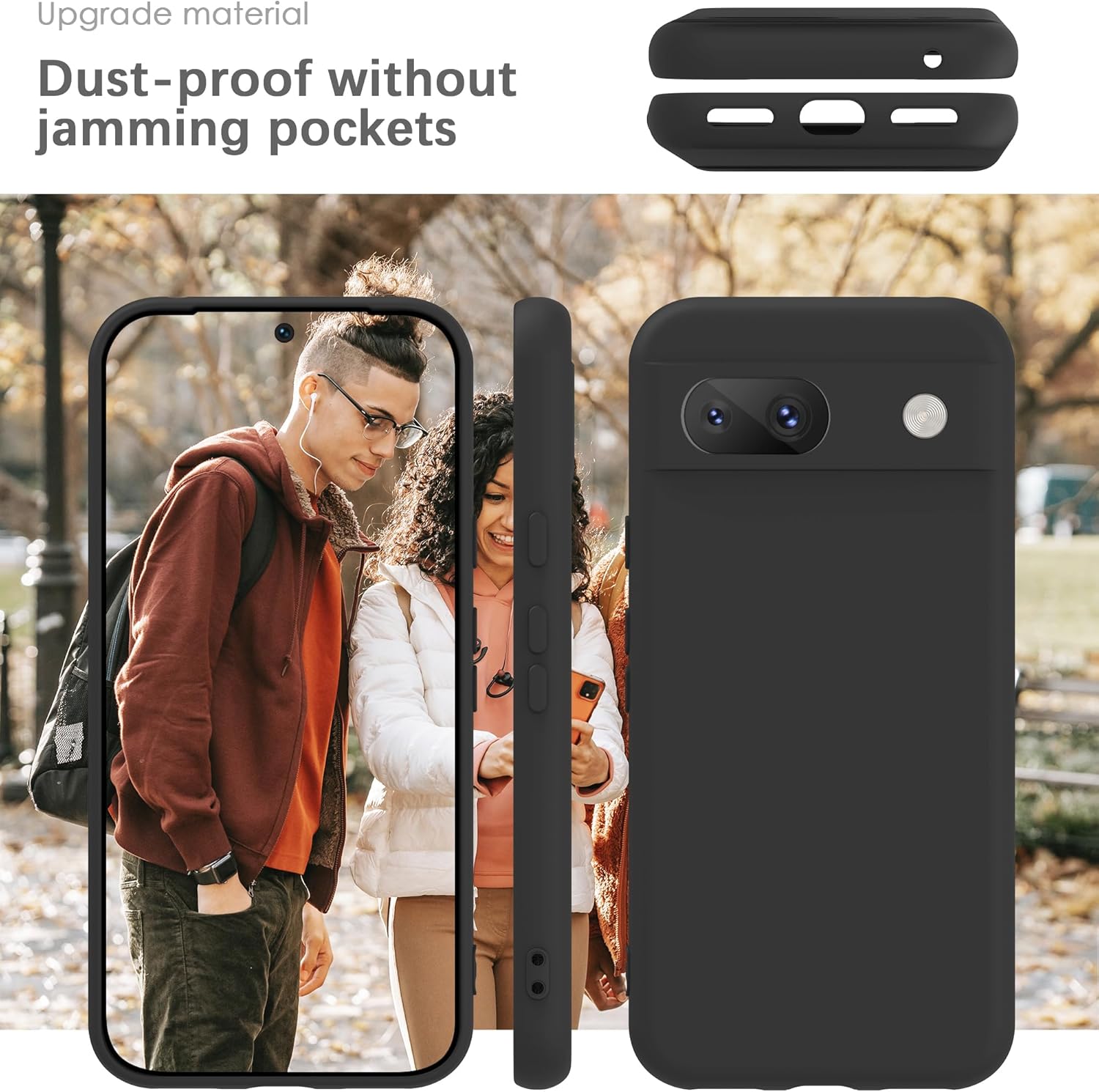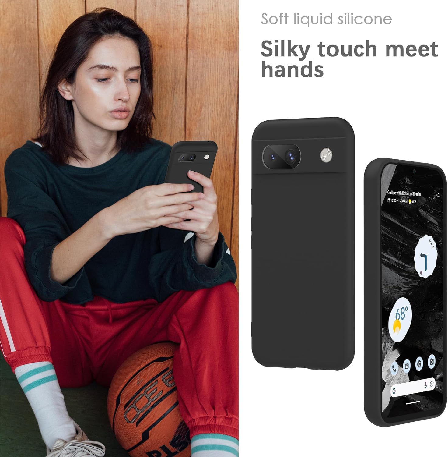 YATWIN калъф за Google Pixel 8A, първокласен силиконов калъф за мобилен телефон със защита на камерата, копринен, мек на допир, ултра тънък, удароустойчив, устойчив на надраскване, защитен калъф, черен
