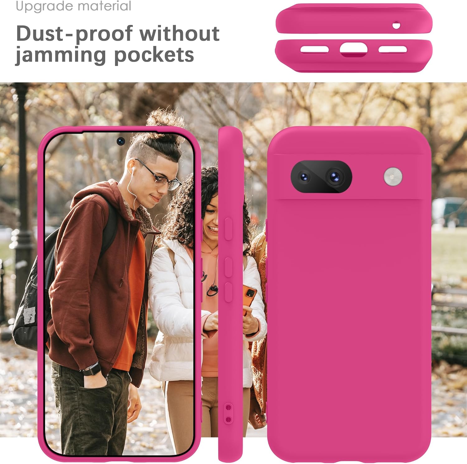 YATWIN калъф за Google Pixel 8A, първокласен силиконов калъф за мобилен телефон със защита на камерата, копринен, мек на допир, ултра тънък, удароустойчив, устойчив на надраскване, защитен калъф, магента