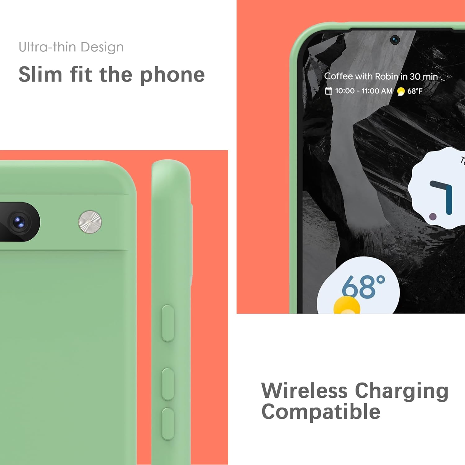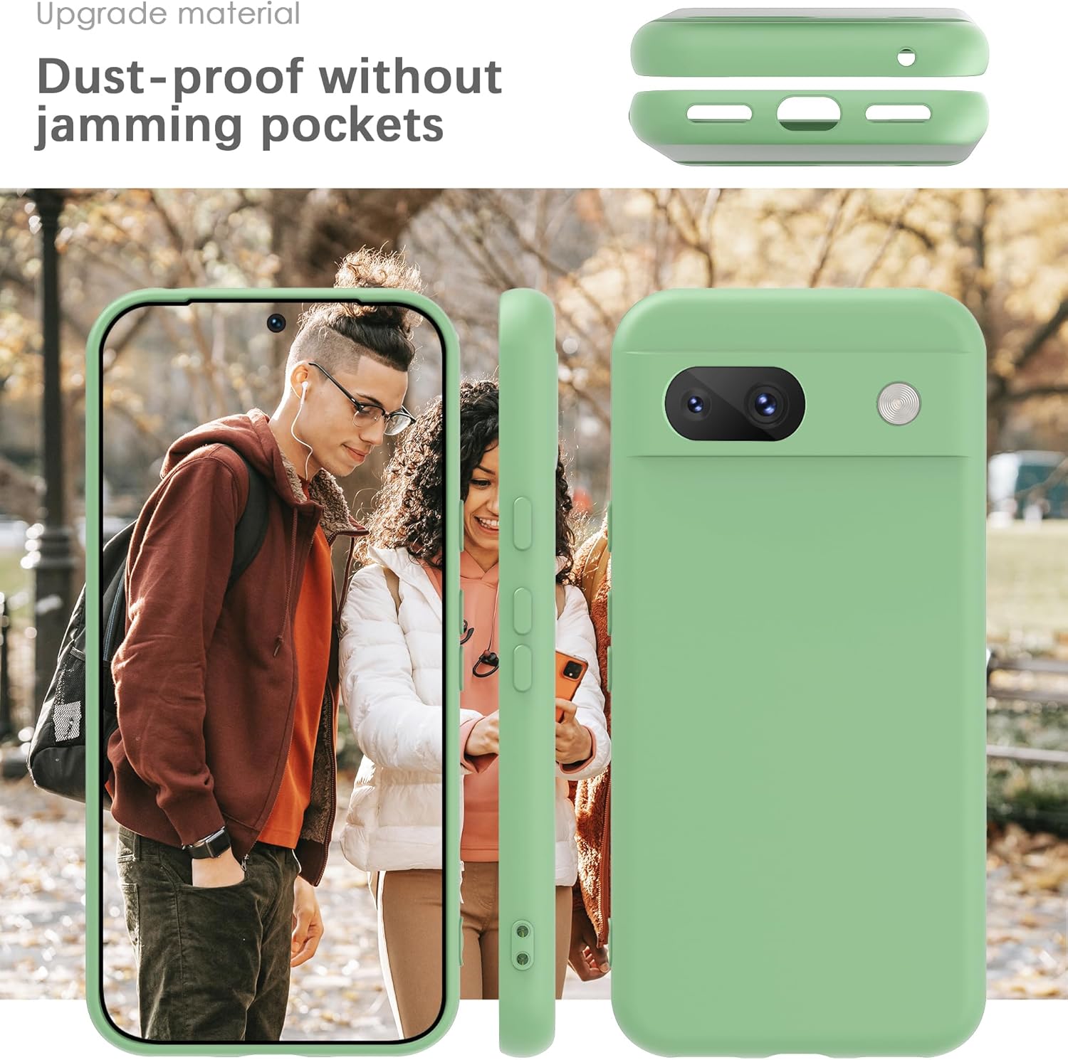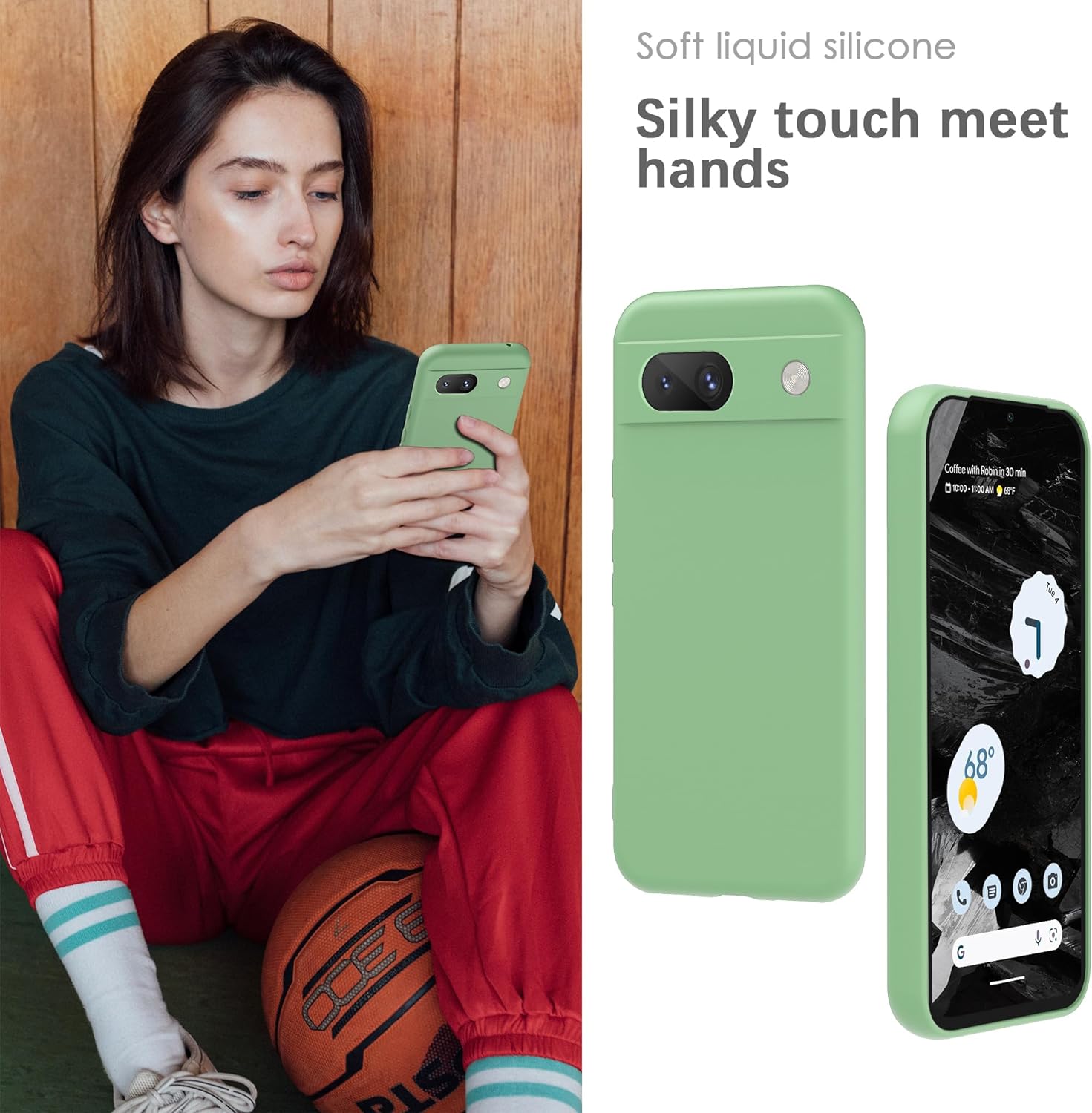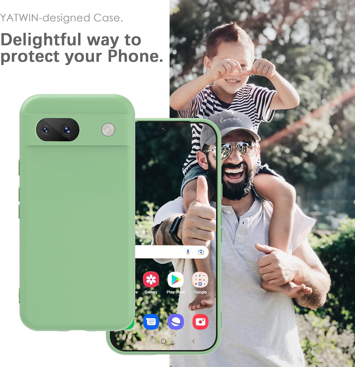 YATWIN калъф за Google Pixel 8A, първокласен силиконов калъф за мобилен телефон със защита на камерата, копринен, мек на допир, ултра тънък, удароустойчив, устойчив на надраскване, защитен калъф, ментово зелен