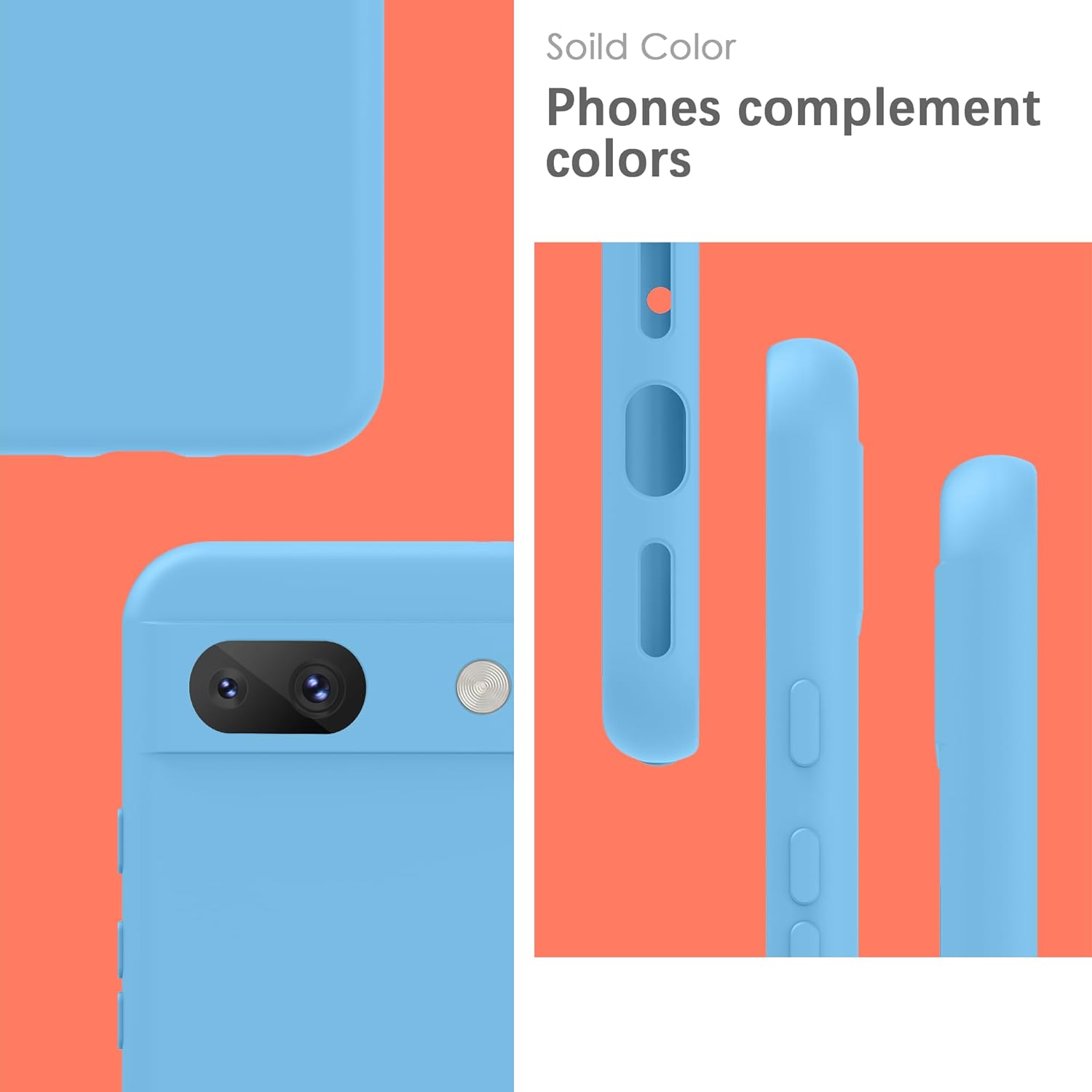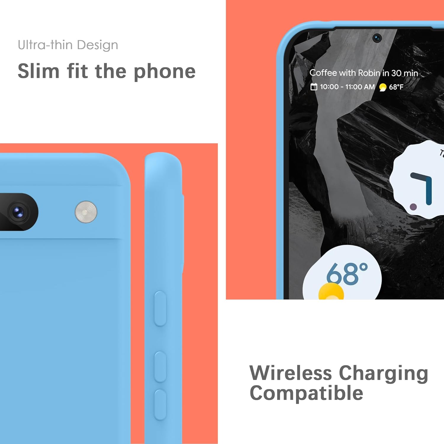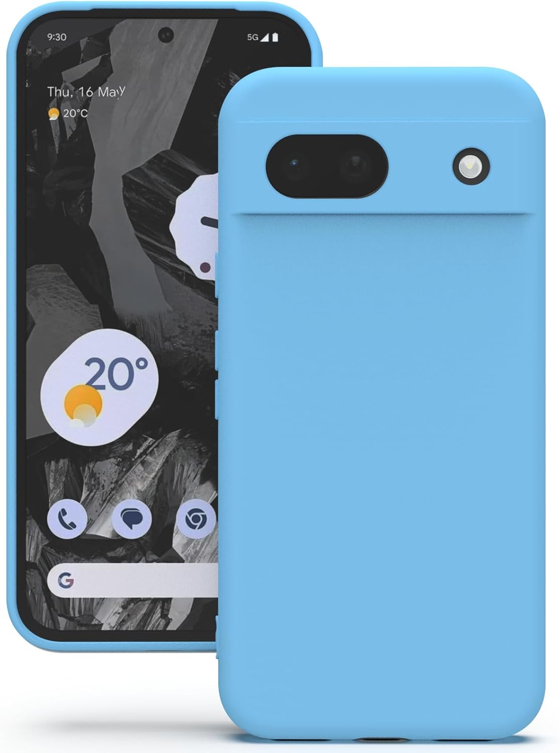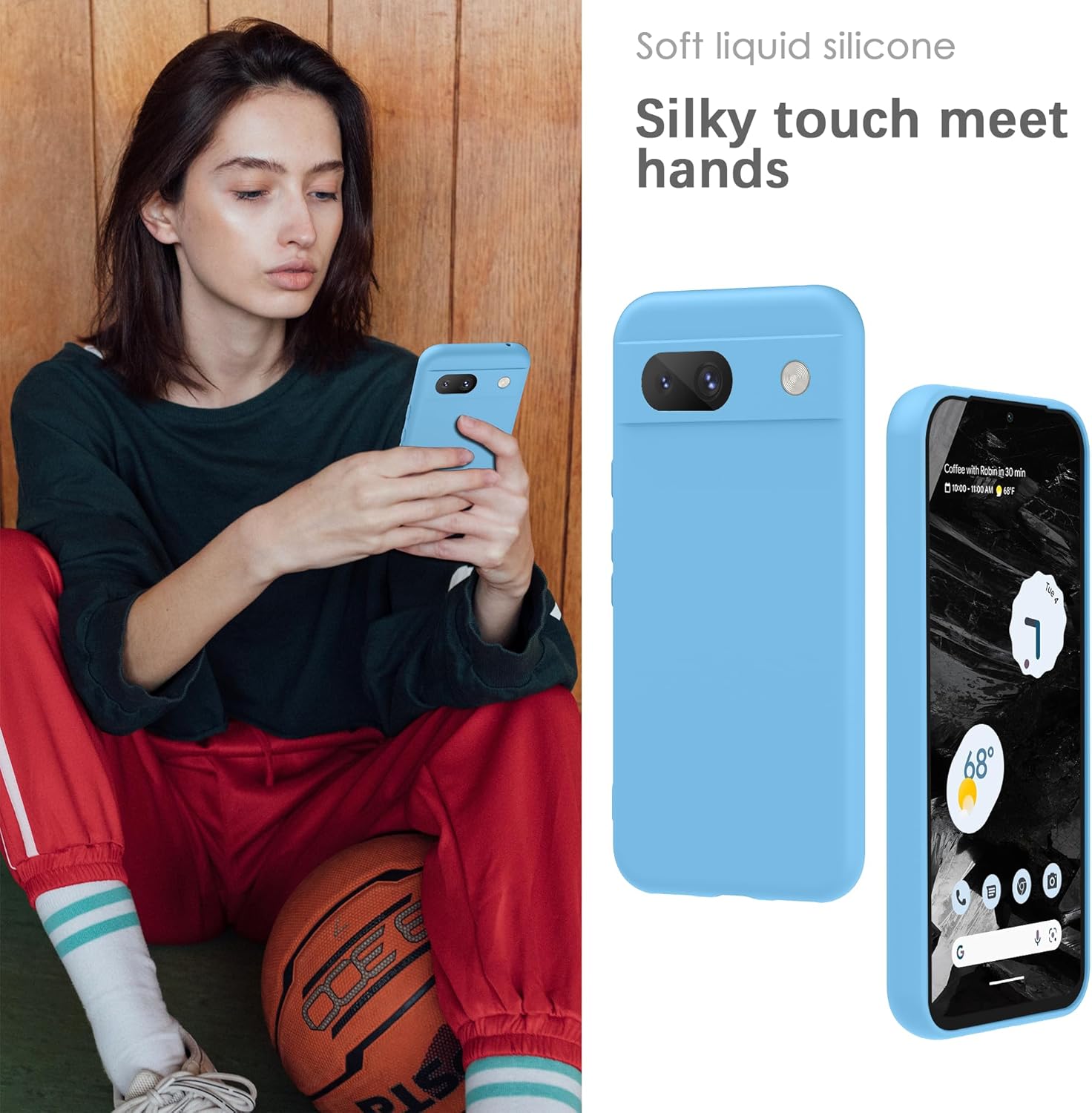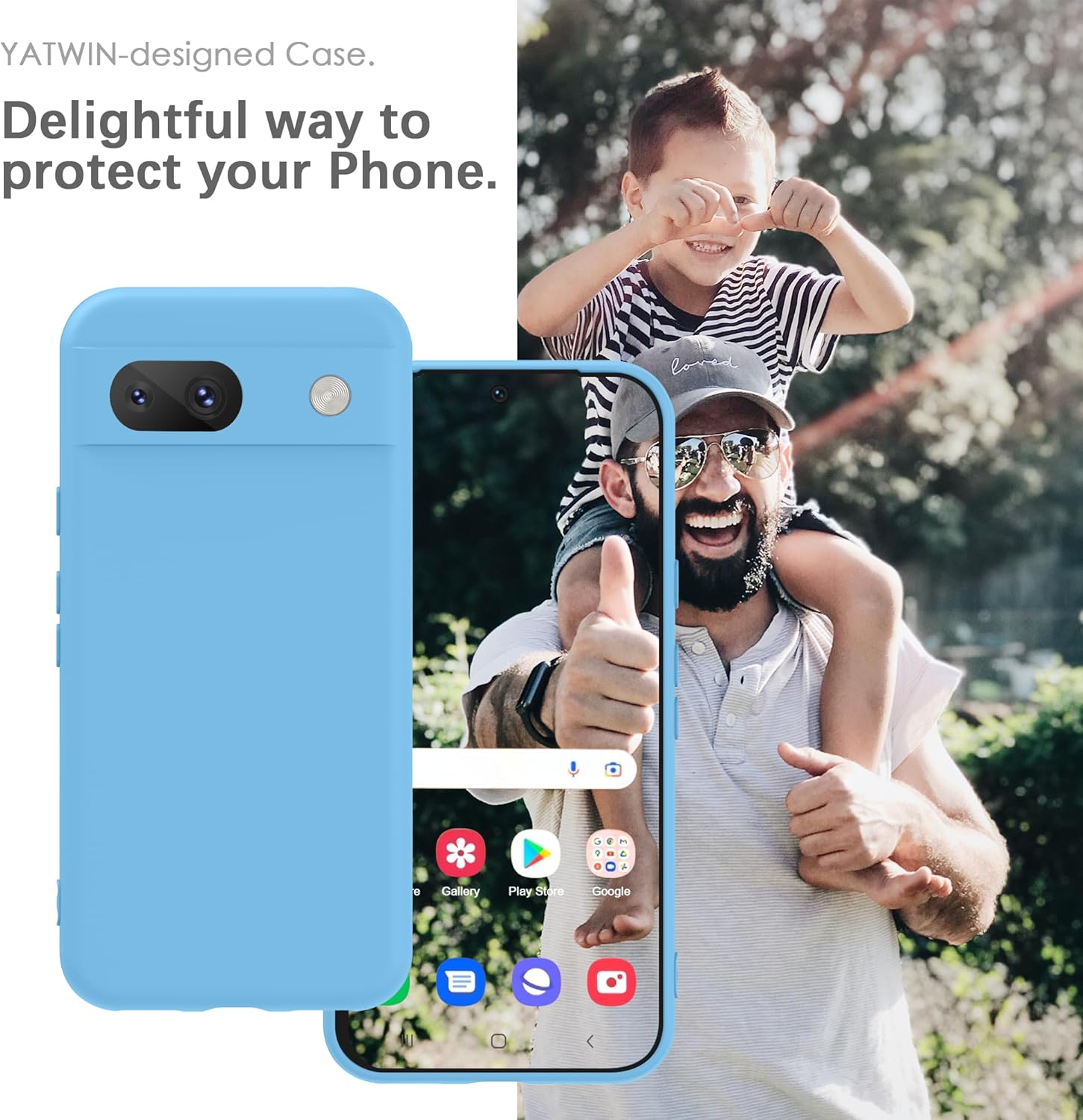 YATWIN калъф за Google Pixel 8A, първокласен силиконов калъф за мобилен телефон със защита на камерата, копринен, мек на допир, ултра тънък, удароустойчив, устойчив на надраскване, защитен калъф, небесно син