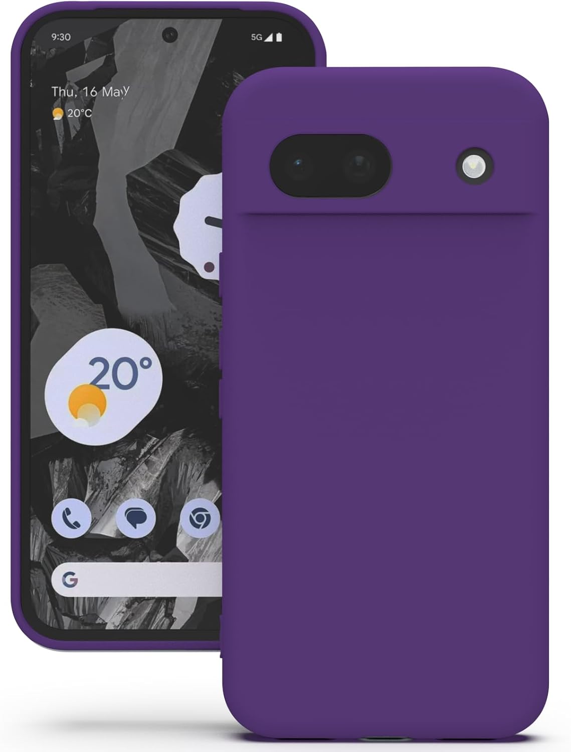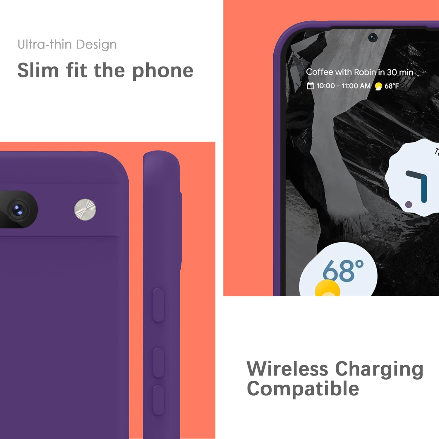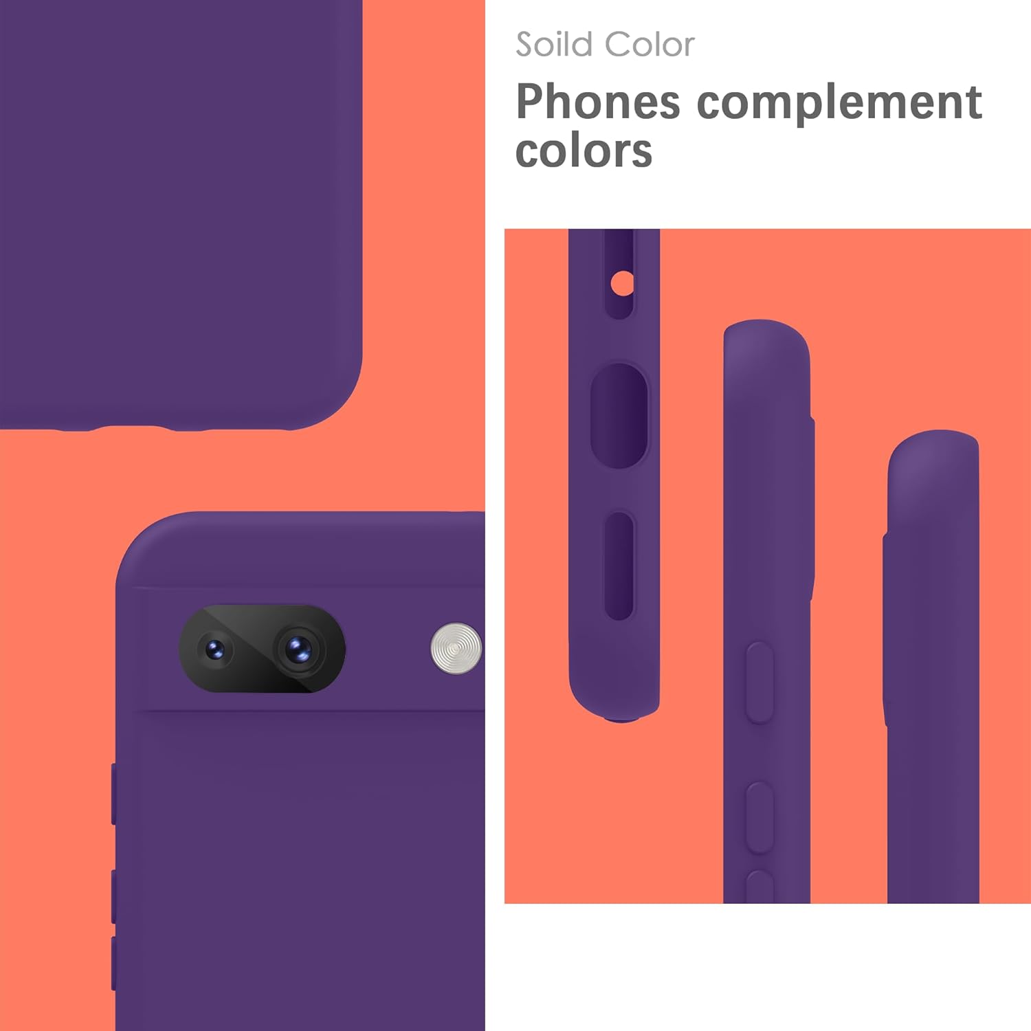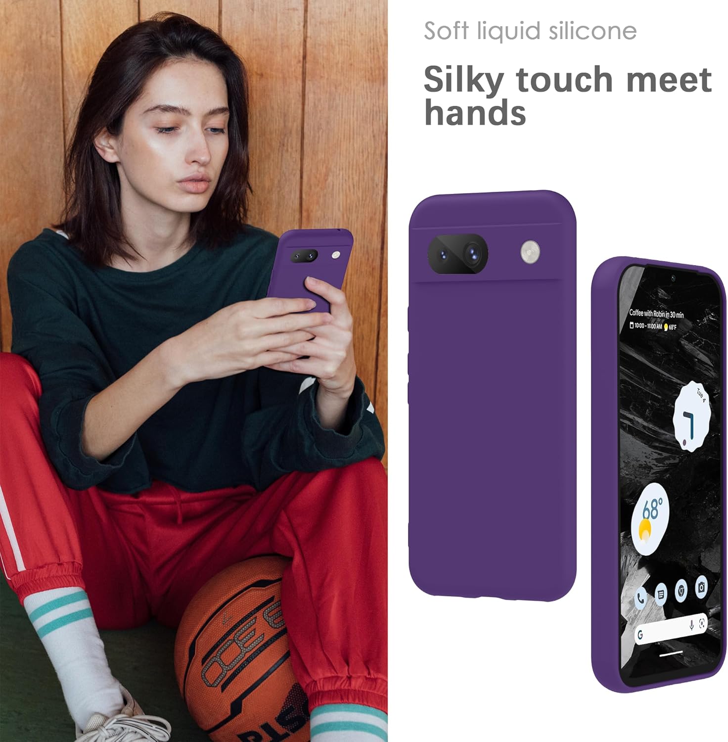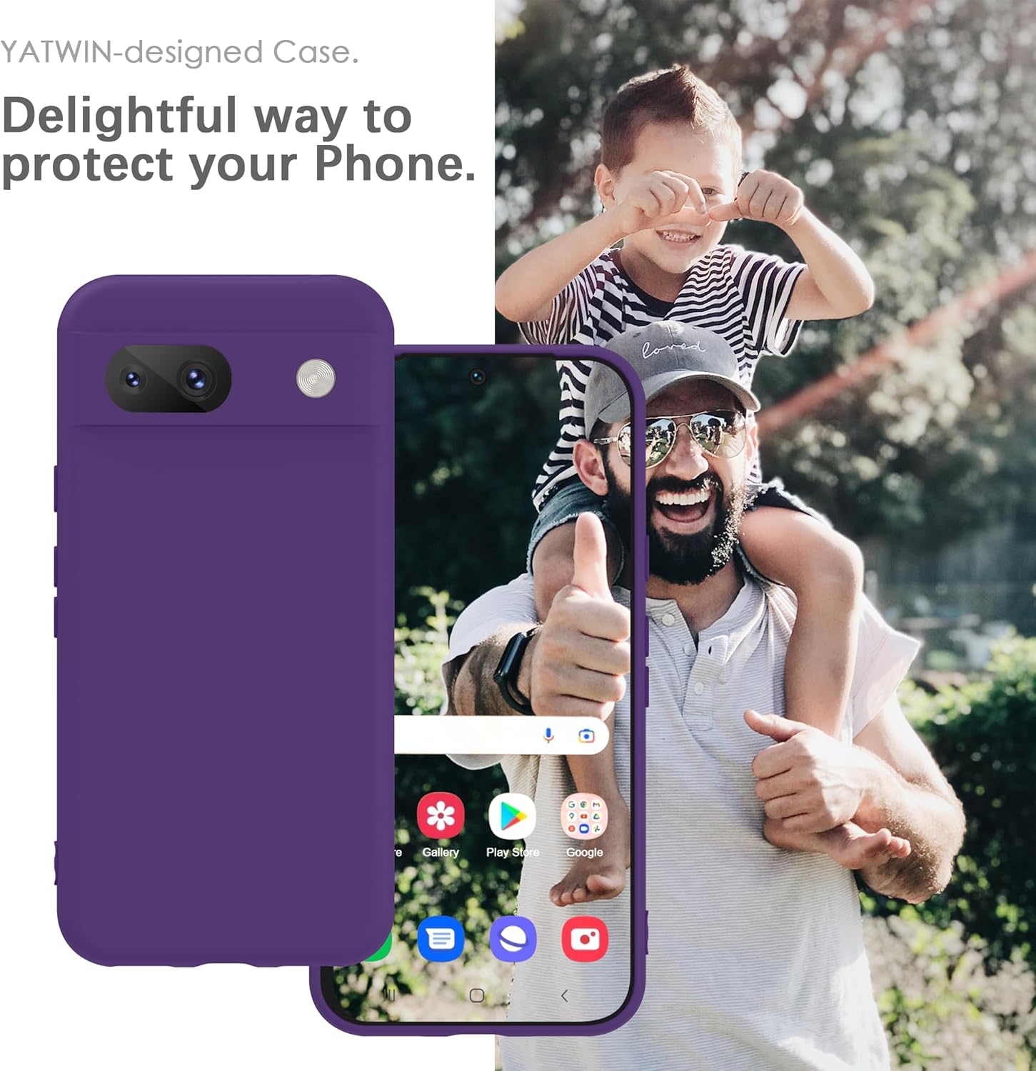 YATWIN калъф за Google Pixel 8A, първокласен силиконов калъф за мобилен телефон със защита на камерата, копринен, мек на допир, ултра тънък, удароустойчив, устойчив на надраскване, защитен калъф, виолетово