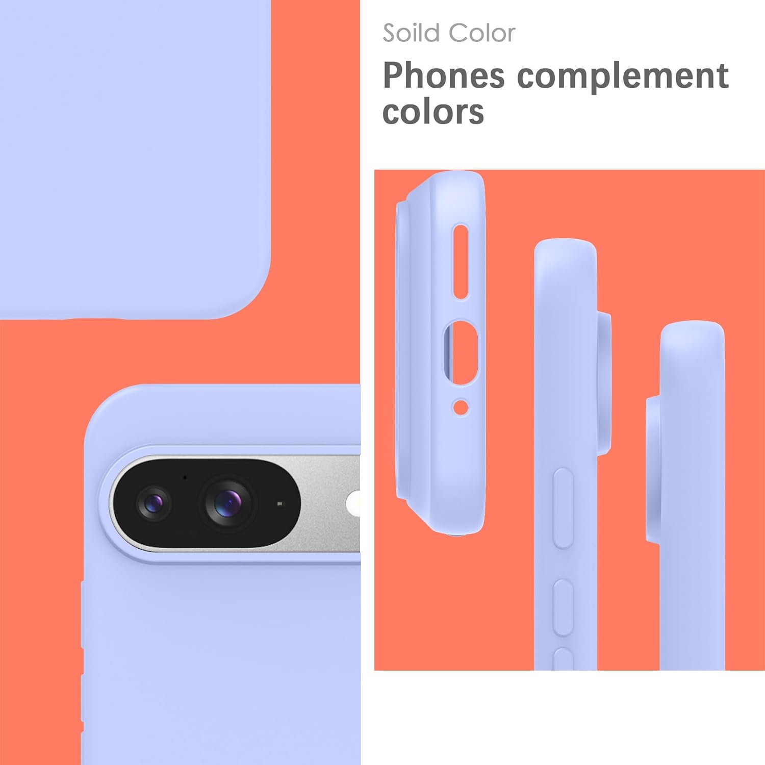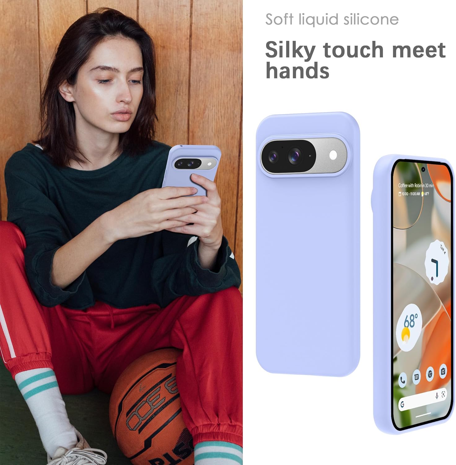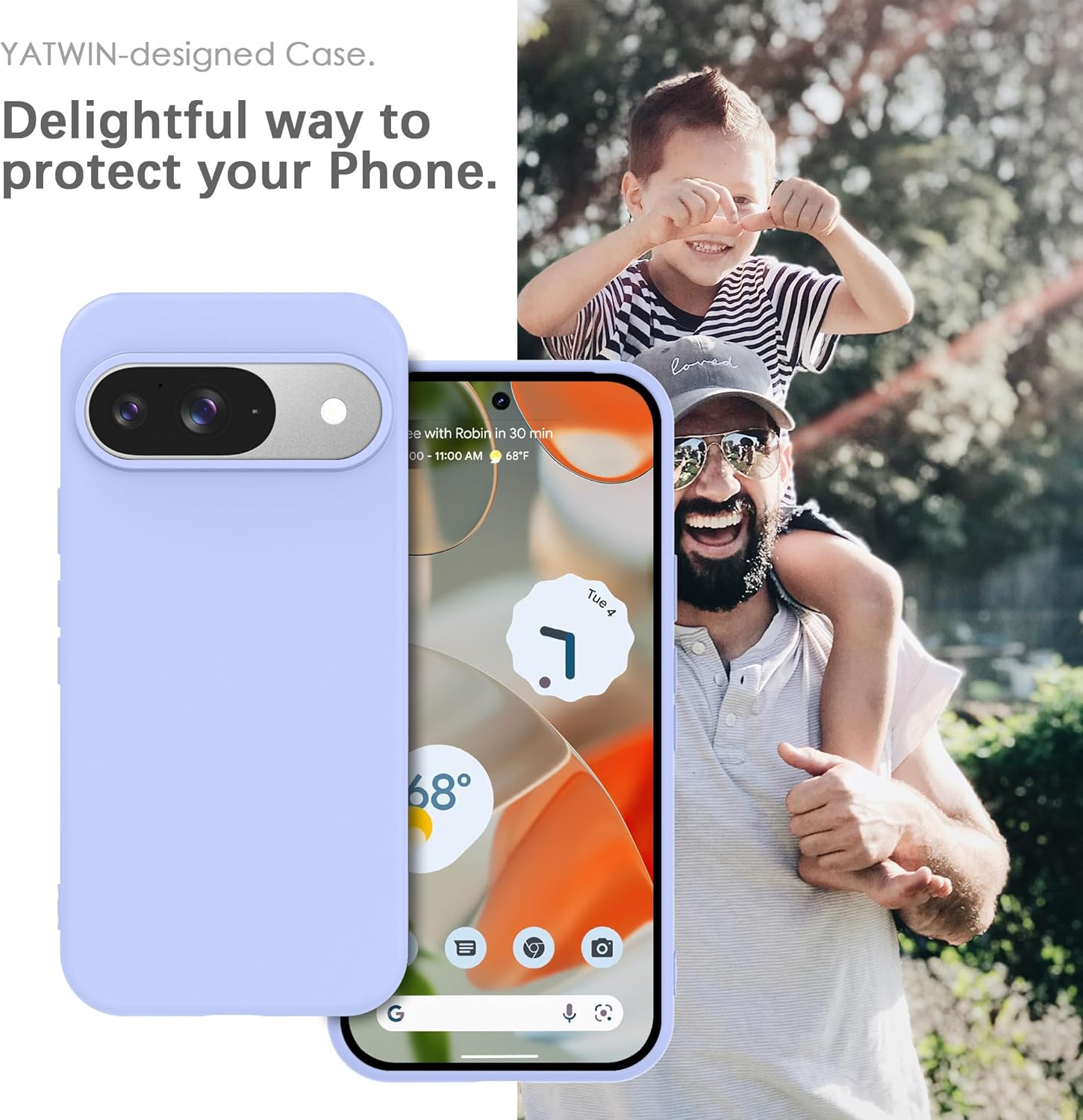 YATWIN калъф за Google Pixel 9, калъф за Google Pixel 9 Pro, първокласен силиконов мобилен калъф със защита на камерата, копринен, мек на допир, ултра тънък, удароустойчив, устойчив на надраскване, защитен калъф, лилав