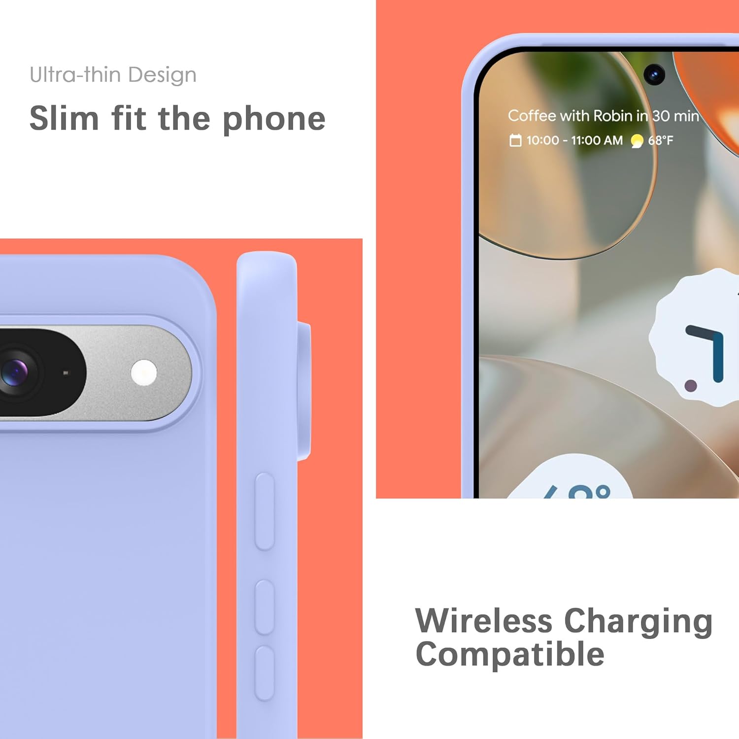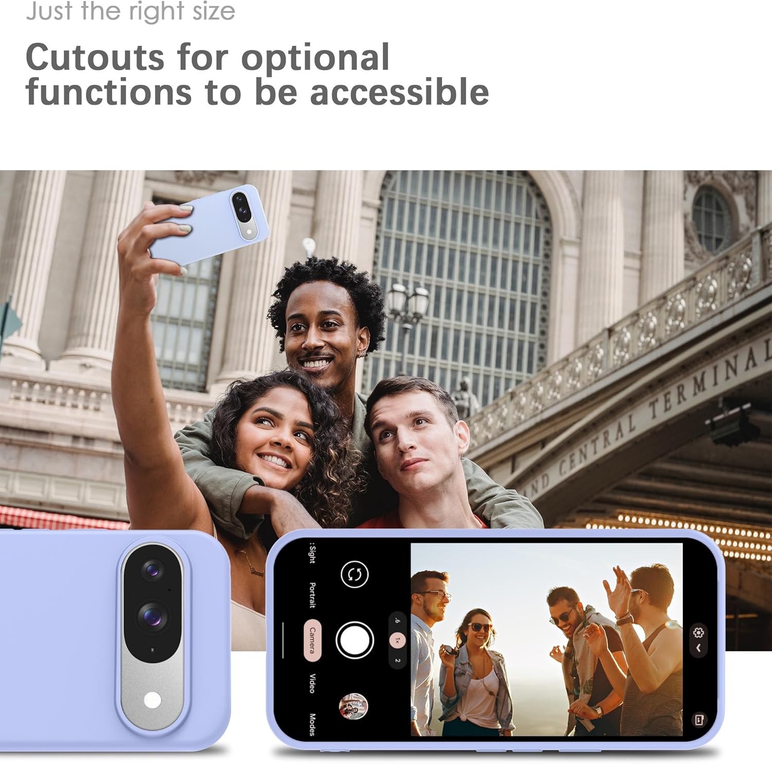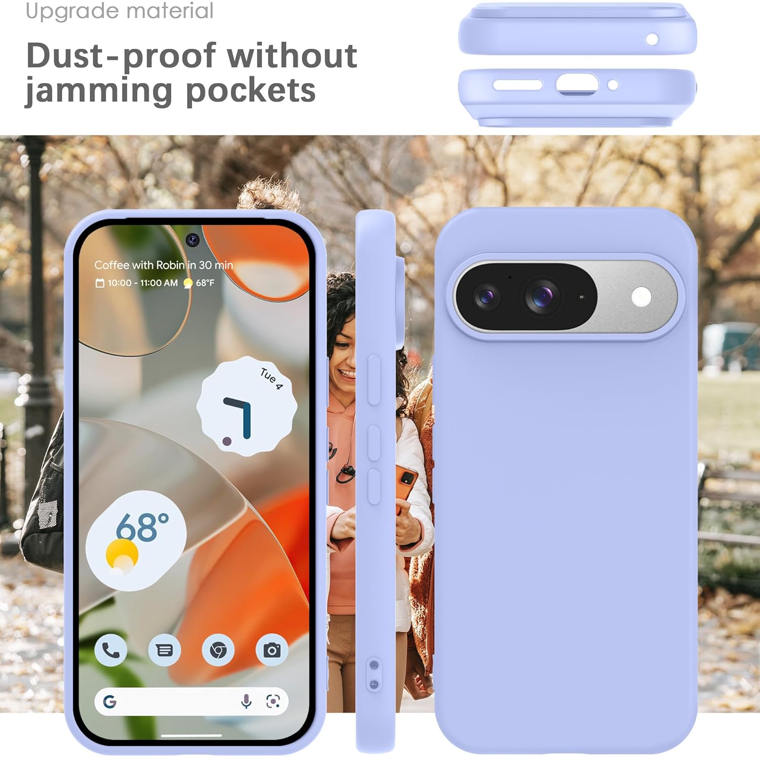YATWIN калъф за Google Pixel 9, калъф за Google Pixel 9 Pro, първокласен силиконов мобилен калъф със защита на камерата, копринен, мек на допир, ултра тънък, удароустойчив, устойчив на надраскване, защитен калъф, лилав