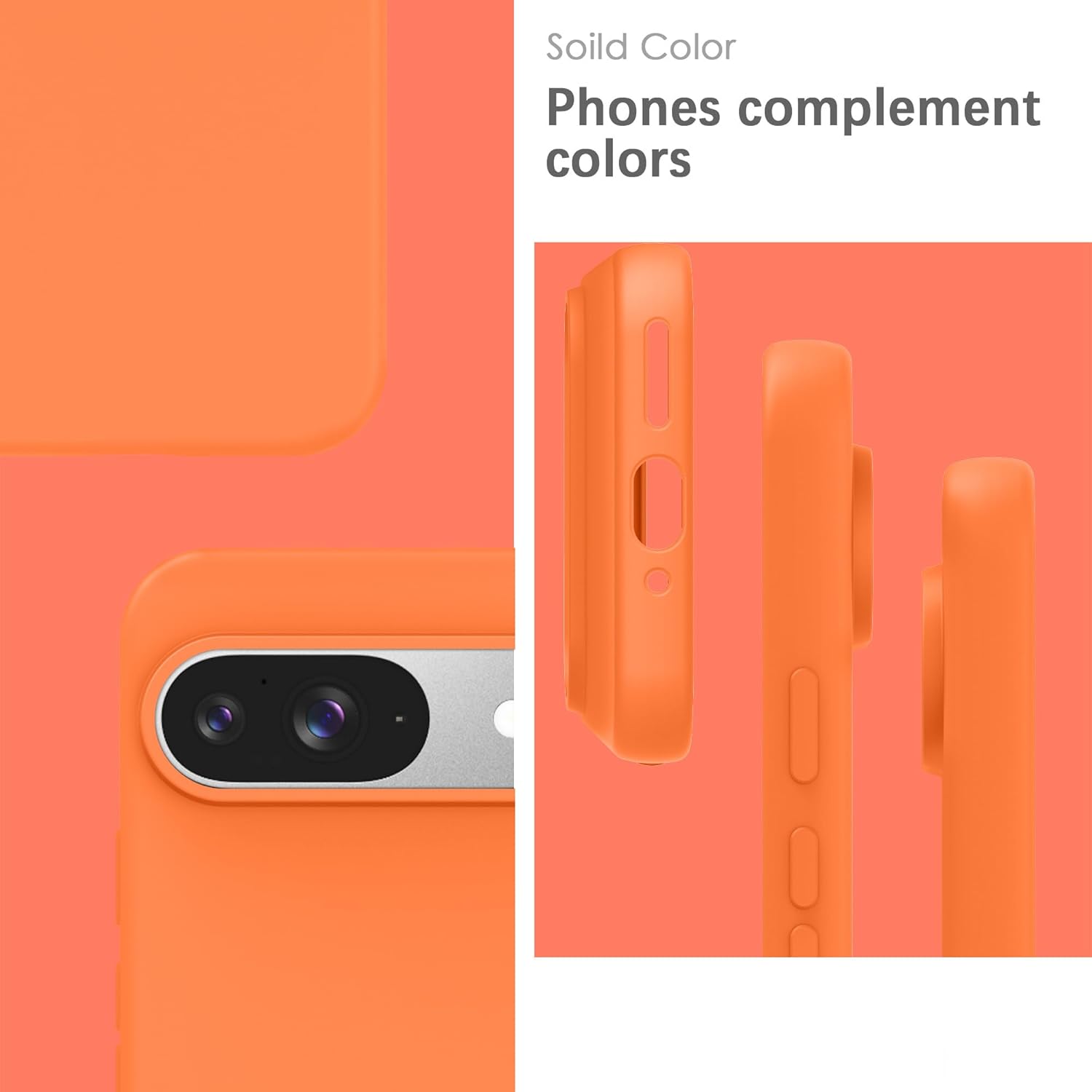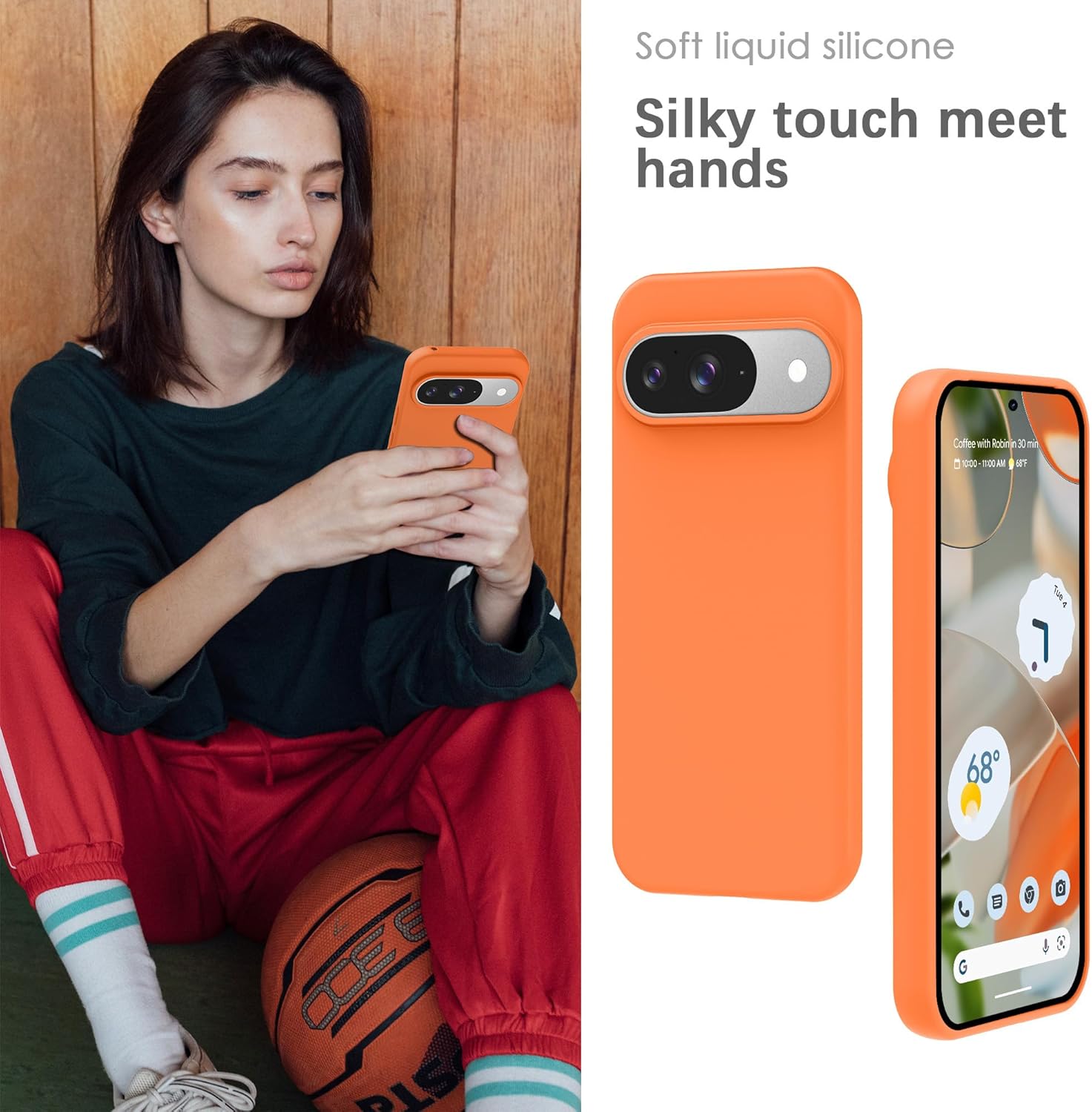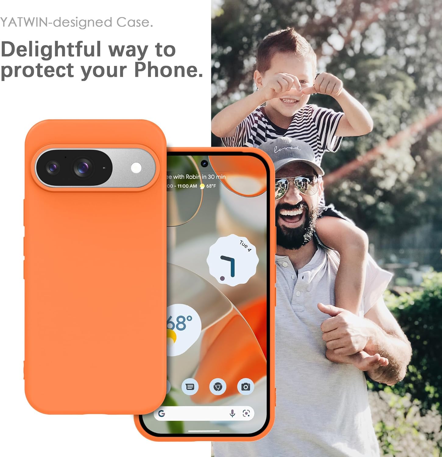 YATWIN калъф за Google Pixel 9, калъф за Google Pixel 9 Pro, първокласен силиконов мобилен калъф със защита на камерата, копринен, мек на допир, ултра тънък, удароустойчив, устойчив на надраскване, защитен калъф, оранжев