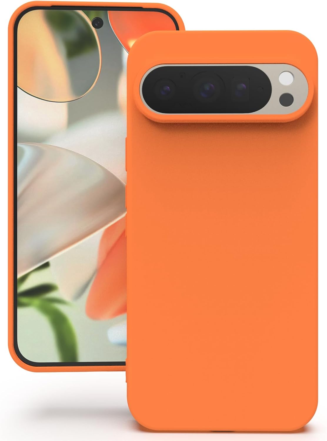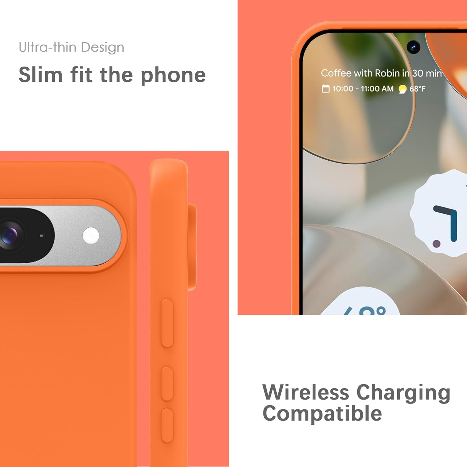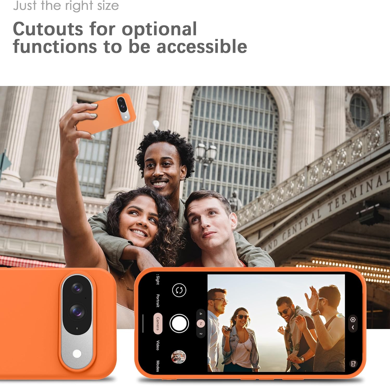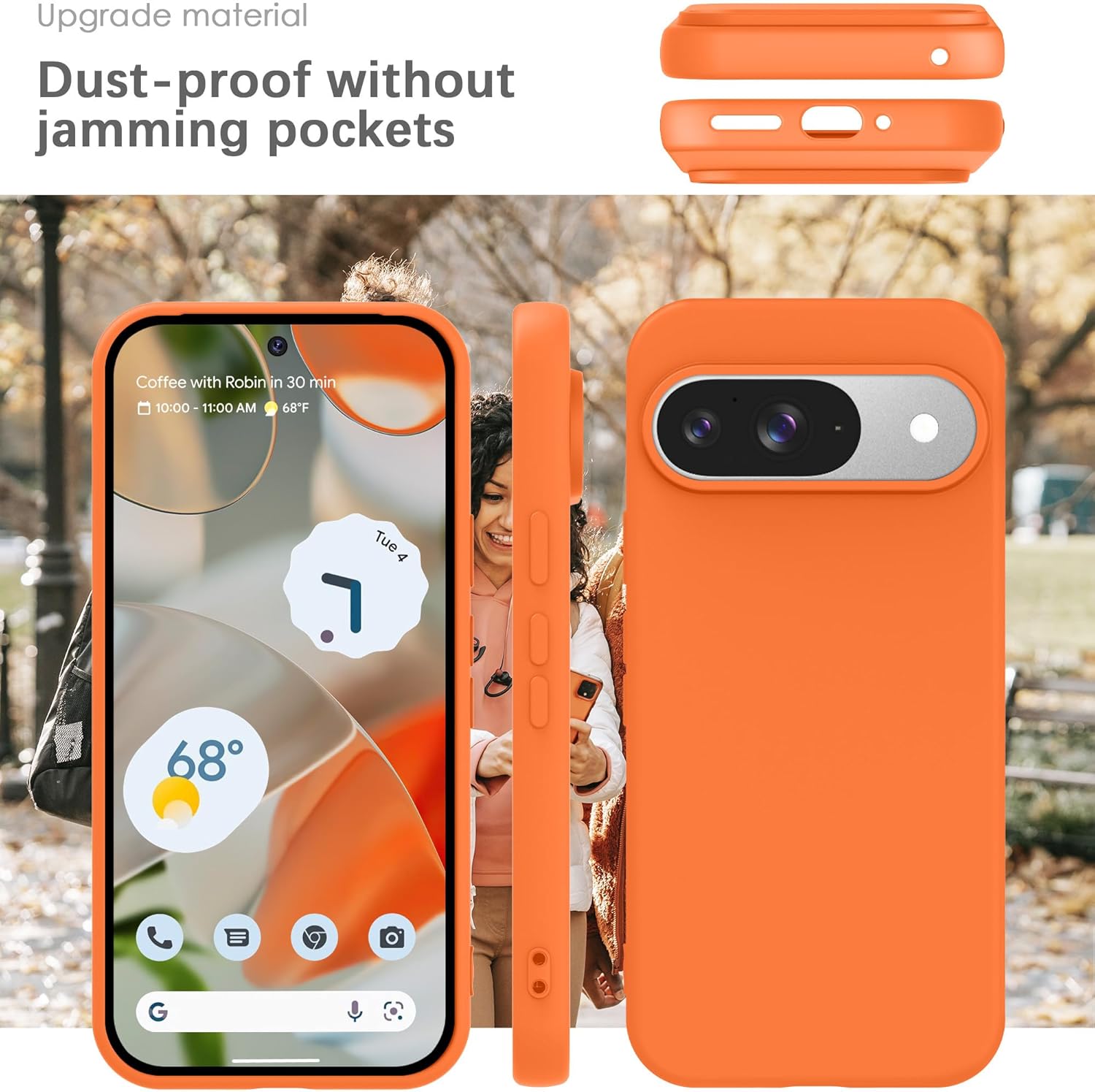 YATWIN калъф за Google Pixel 9, калъф за Google Pixel 9 Pro, първокласен силиконов мобилен калъф със защита на камерата, копринен, мек на допир, ултра тънък, удароустойчив, устойчив на надраскване, защитен калъф, оранжев