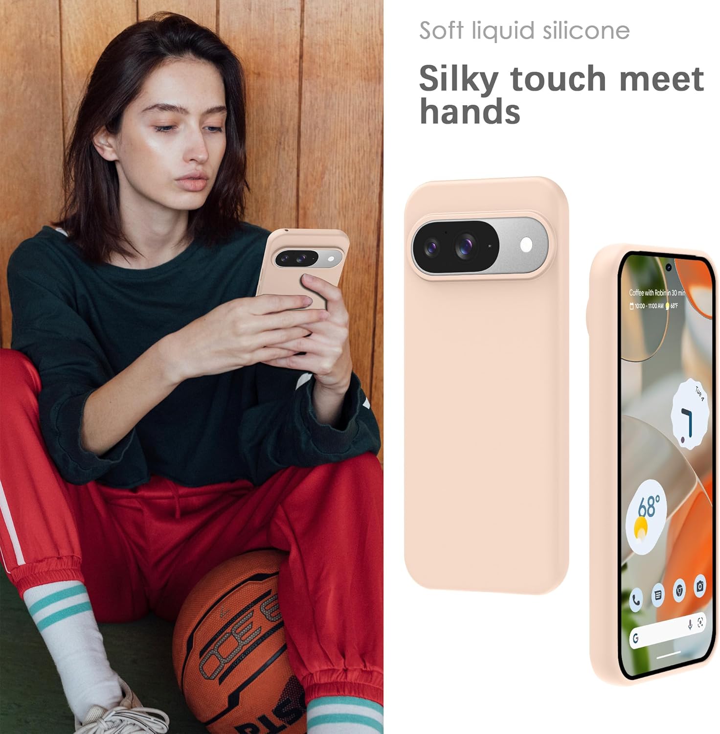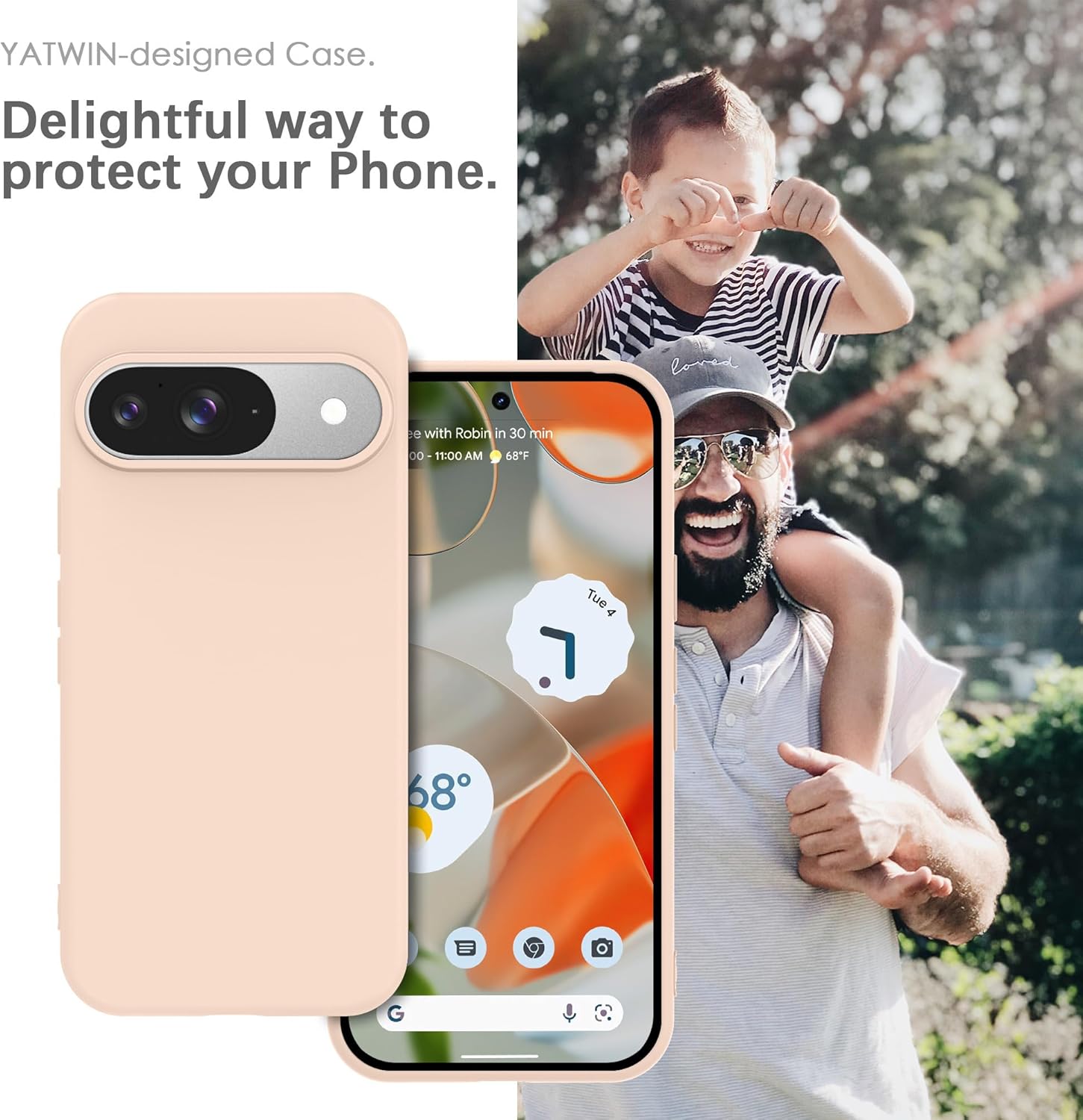 YATWIN калъф за Google Pixel 9, калъф за Google Pixel 9 Pro, първокласен силиконов мобилен калъф със защита на камерата, копринен, мек на допир, ултра тънък, удароустойчив, устойчив на надраскване, защитен калъф, светло розов