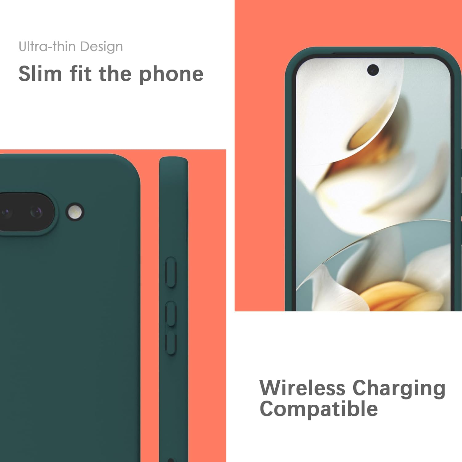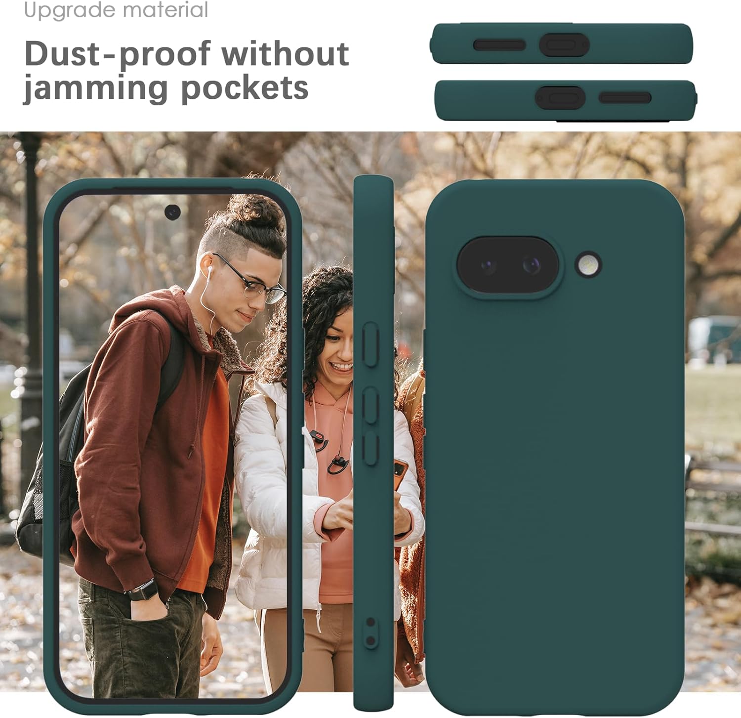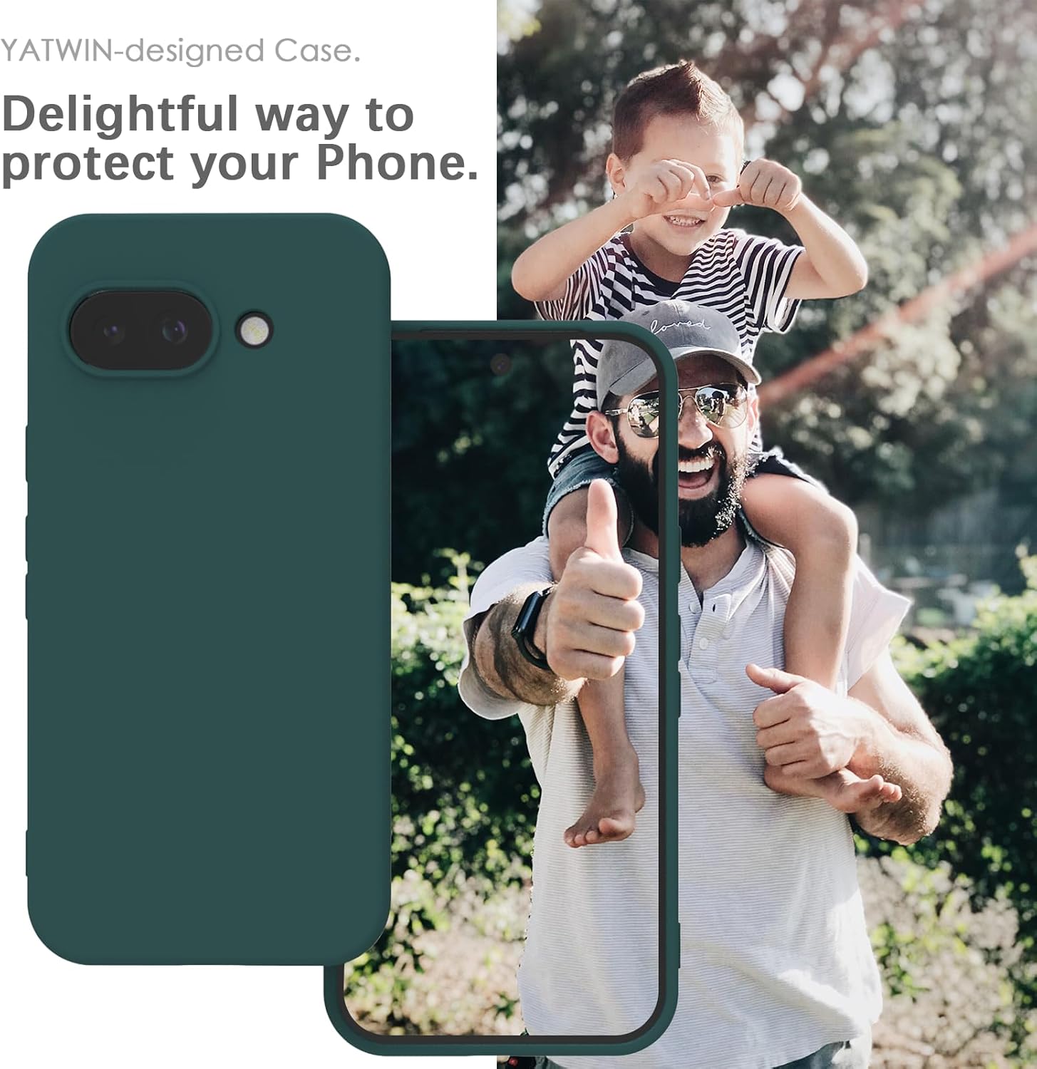 YATWIN калъф за Google Pixel 9A, първокласен силиконов калъф за мобилен телефон със защита на камерата, копринен, мек на допир, ултра тънък, удароустойчив, устойчив на надраскване, защитен калъф, зелен