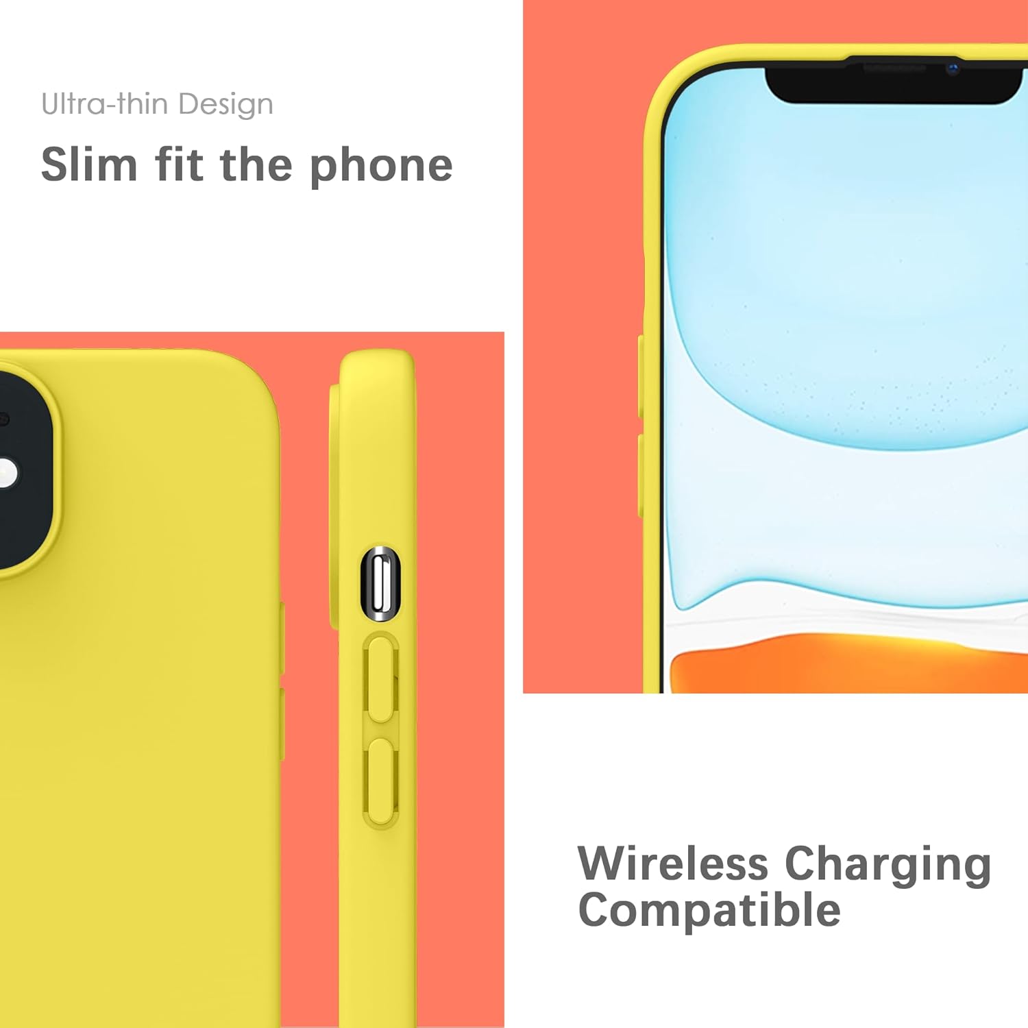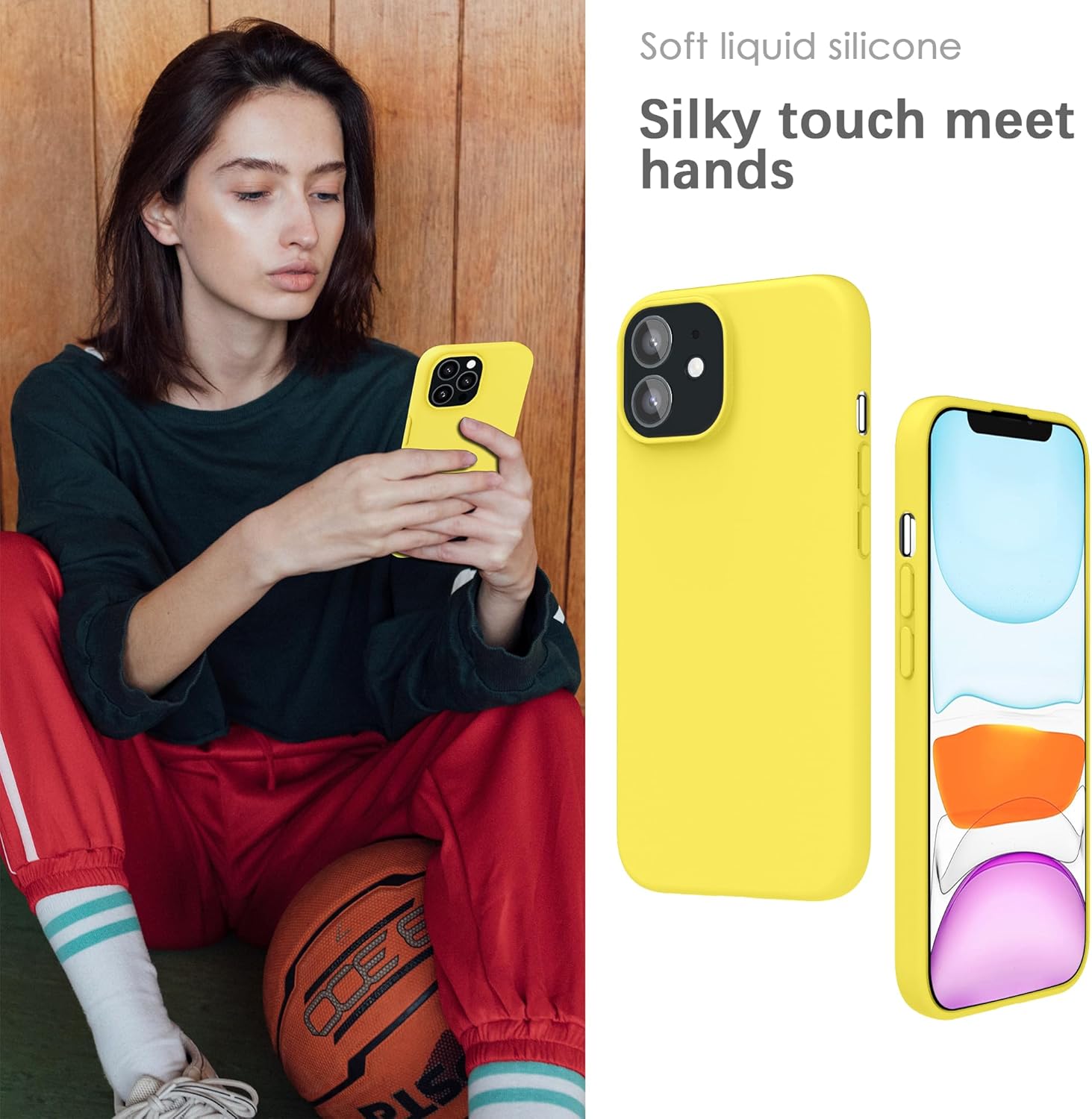 YATWIN калъф за iPhone 11, първокласен силиконов калъф за мобилен телефон със защита на камерата, копринен, мек на допир, ултра тънък, удароустойчив, устойчив на надраскване, защитен калъф, жълт