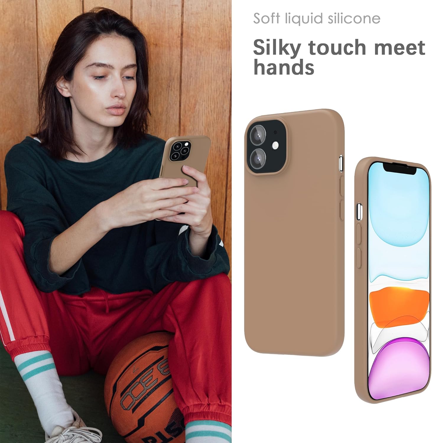 YATWIN калъф за iPhone 11, първокласен силиконов калъф за мобилен телефон със защита на камерата, копринен, мек на допир, ултра тънък, удароустойчив, устойчив на надраскване, защитен калъф, цвят чай с мляко