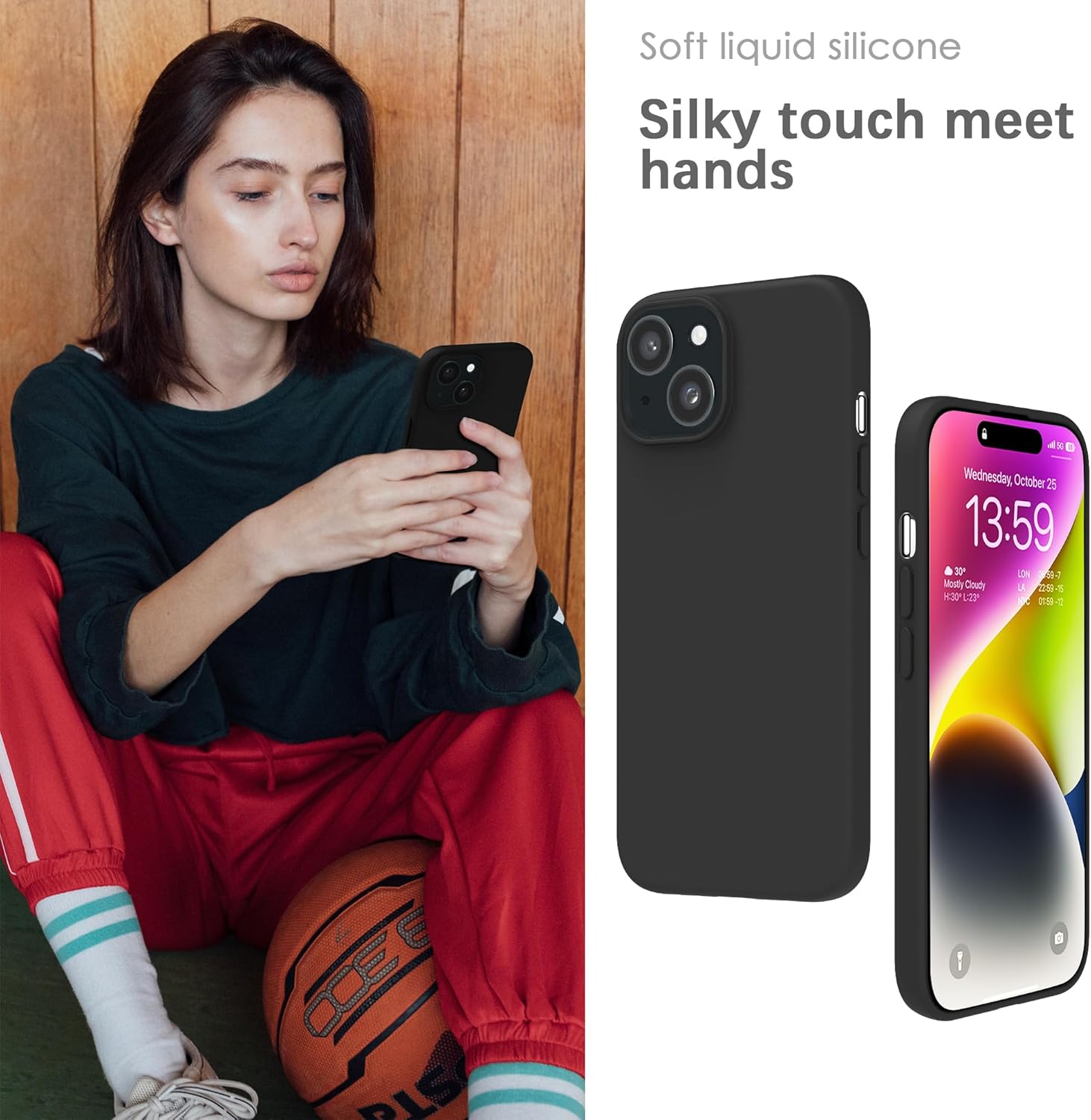 YATWIN калъф за iPhone 13, първокласен силиконов калъф за мобилен телефон с копринено меко покритие, ултра тънък, удароустойчив, устойчив на надраскване, защитен калъф, черен