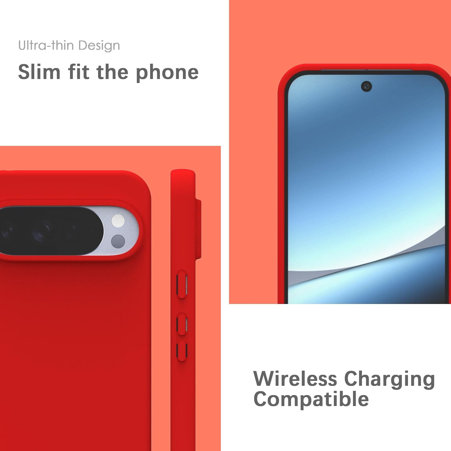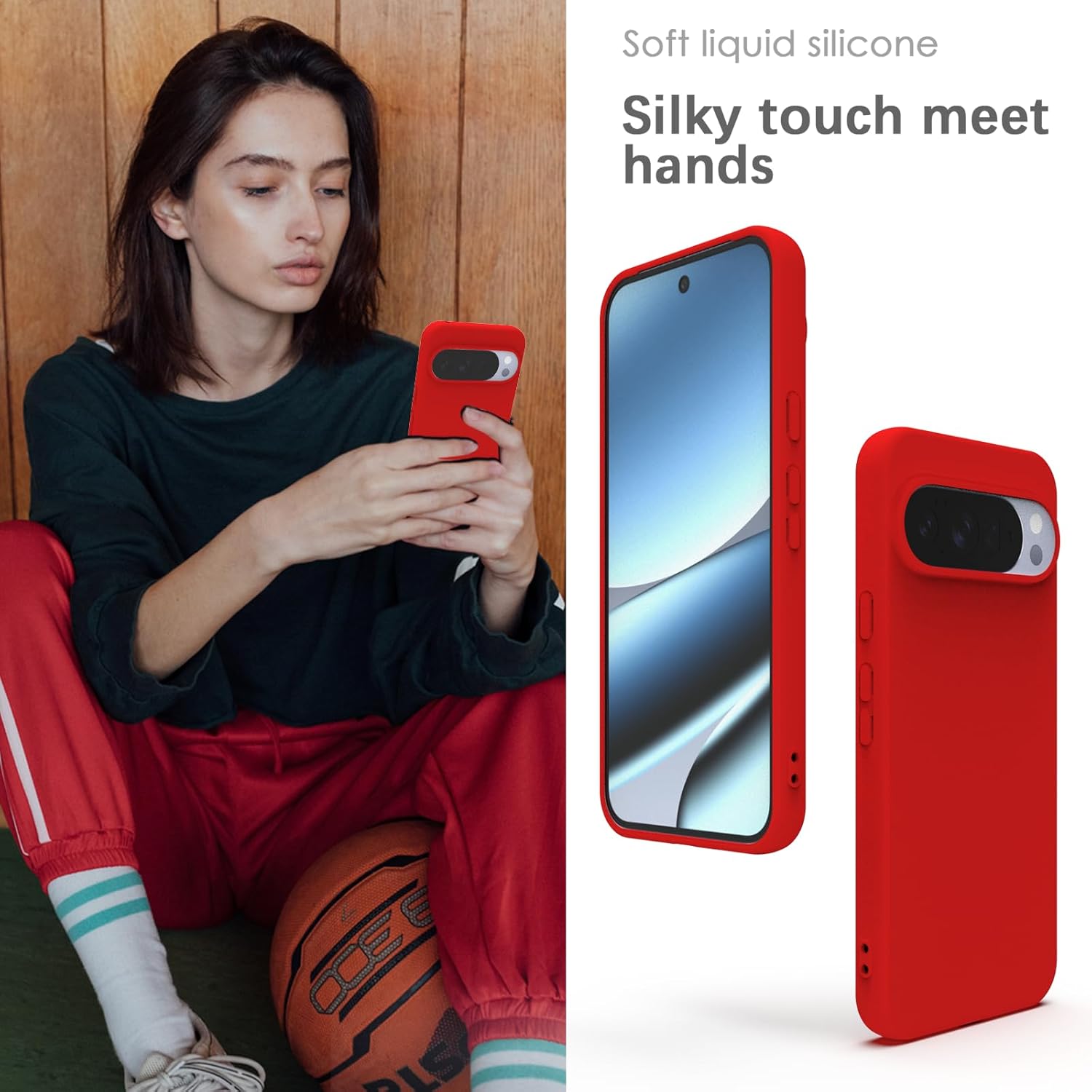 YATWIN Кейс за Google Pixel 10 Pro XL, Премиум силиконов калъф за мобилен телефон със защита на камерата, Копринен, Мек на допир, Ултра тънък, Удароустойчив, Устойчив на надраскване, Защитен калъф, Червен