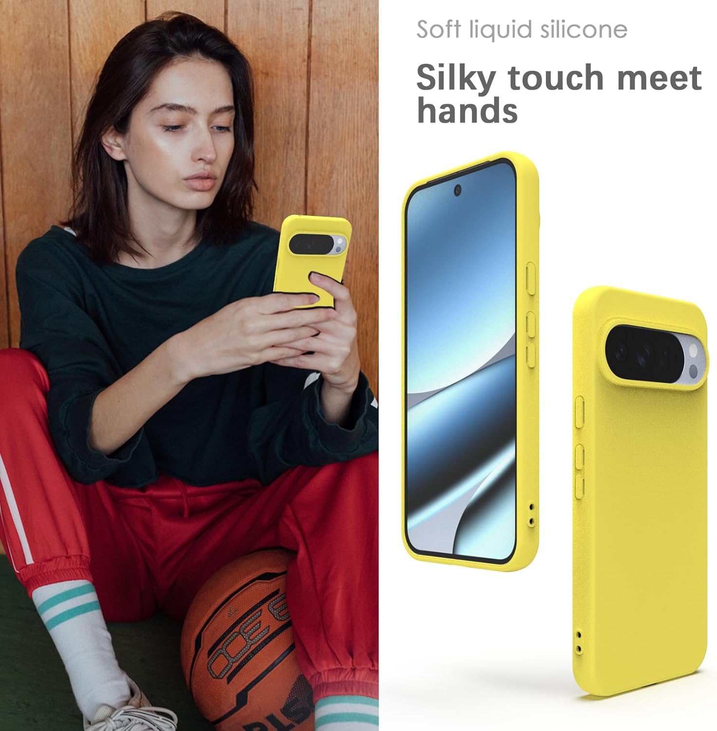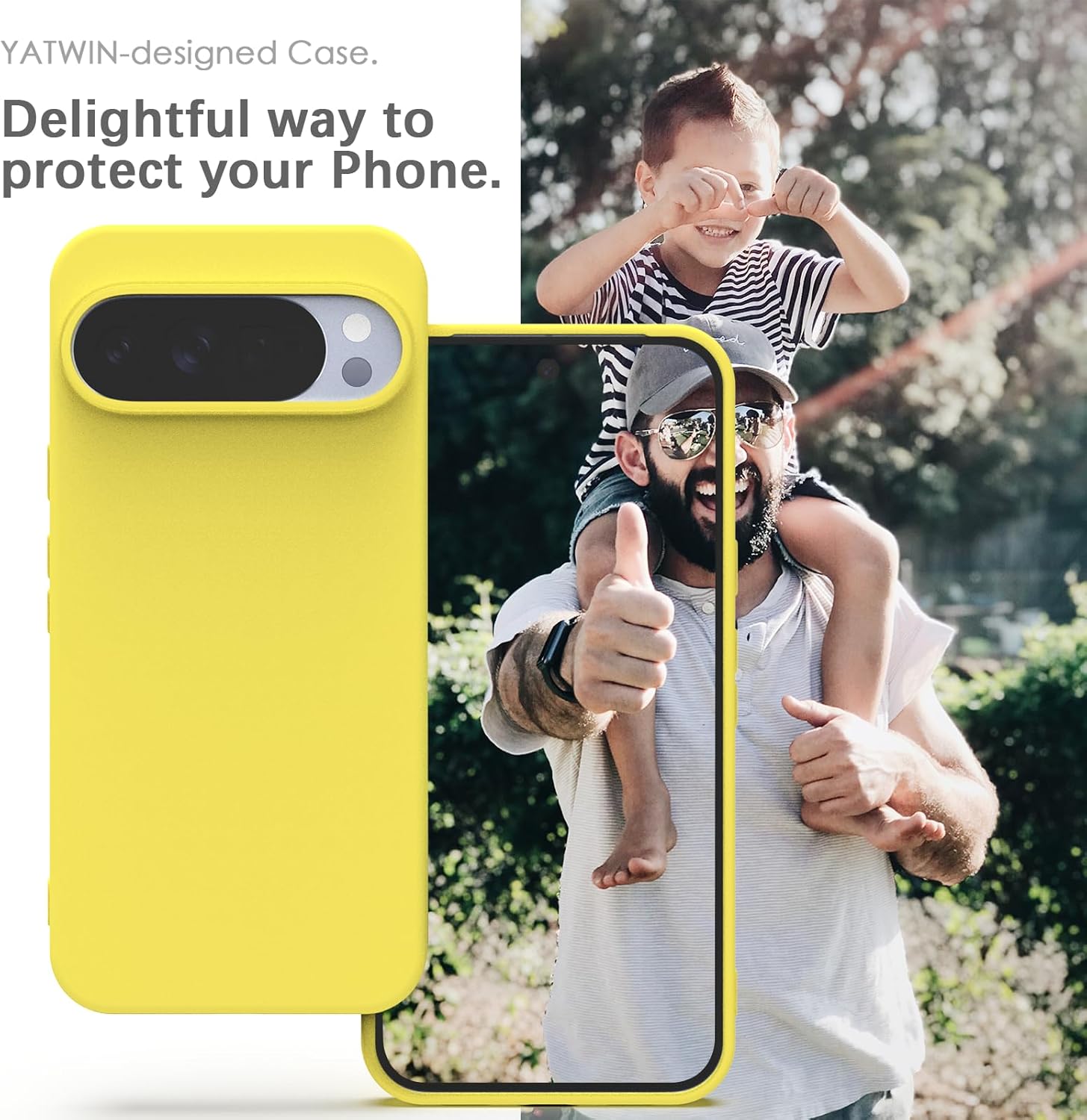 YATWIN Кейс за Google Pixel 10 Pro XL, Премиум силиконов калъф за мобилен телефон със защита на камерата, Копринен, Мек на допир, Ултра тънък, Удароустойчив, Устойчив на надраскване, Защитен калъф, Жълт