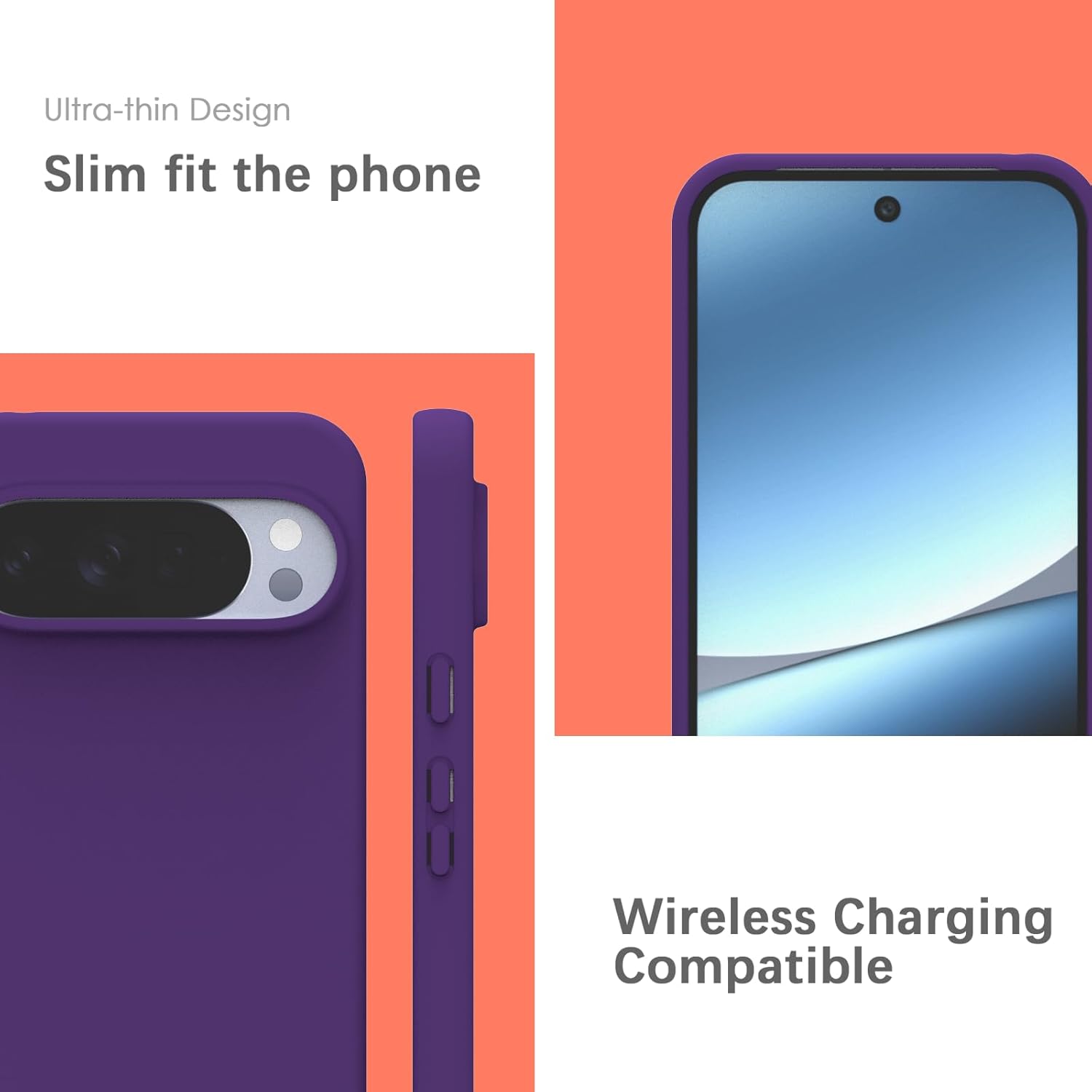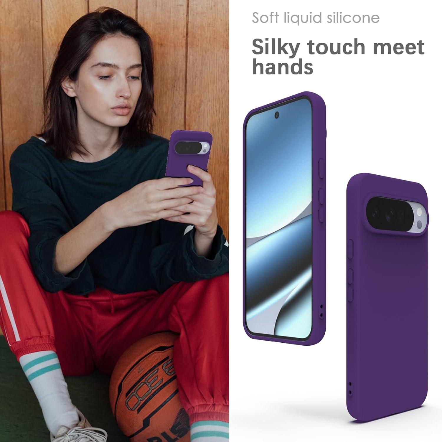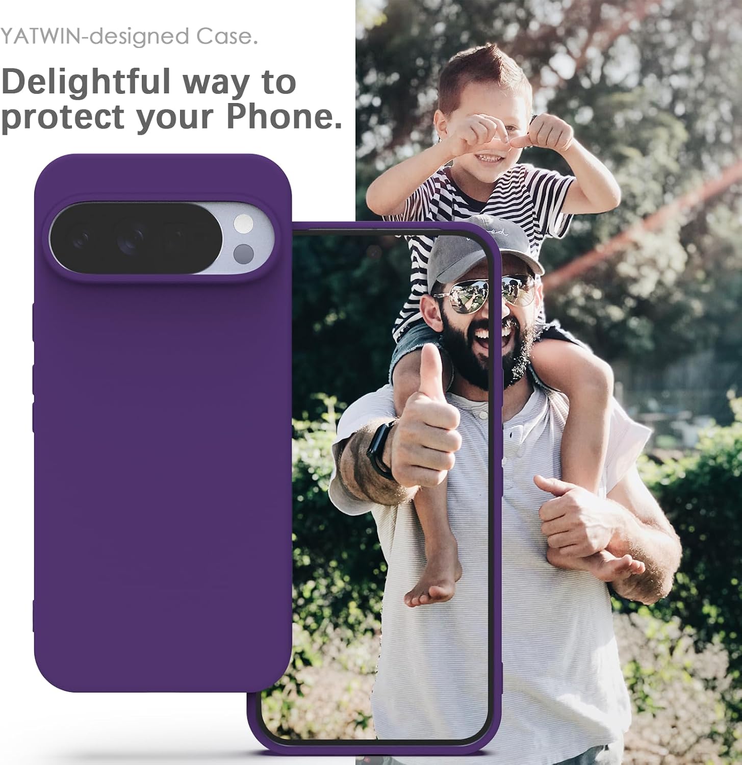 YATWIN Кейс за Google Pixel 10 Pro XL, Премиум силиконов калъф за мобилен телефон със защита на камерата, Копринен, Мек на допир, Ултра тънък, Удароустойчив, Устойчив на надраскване, Защитен калъф, Лилав