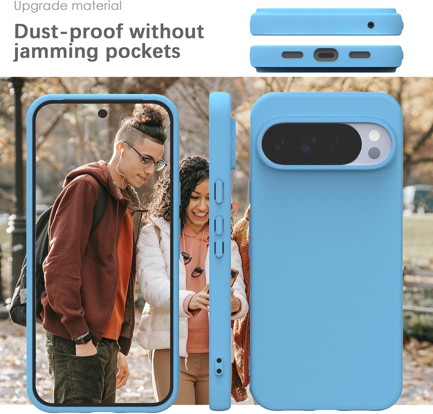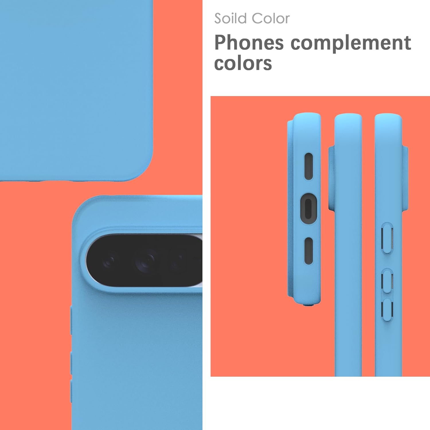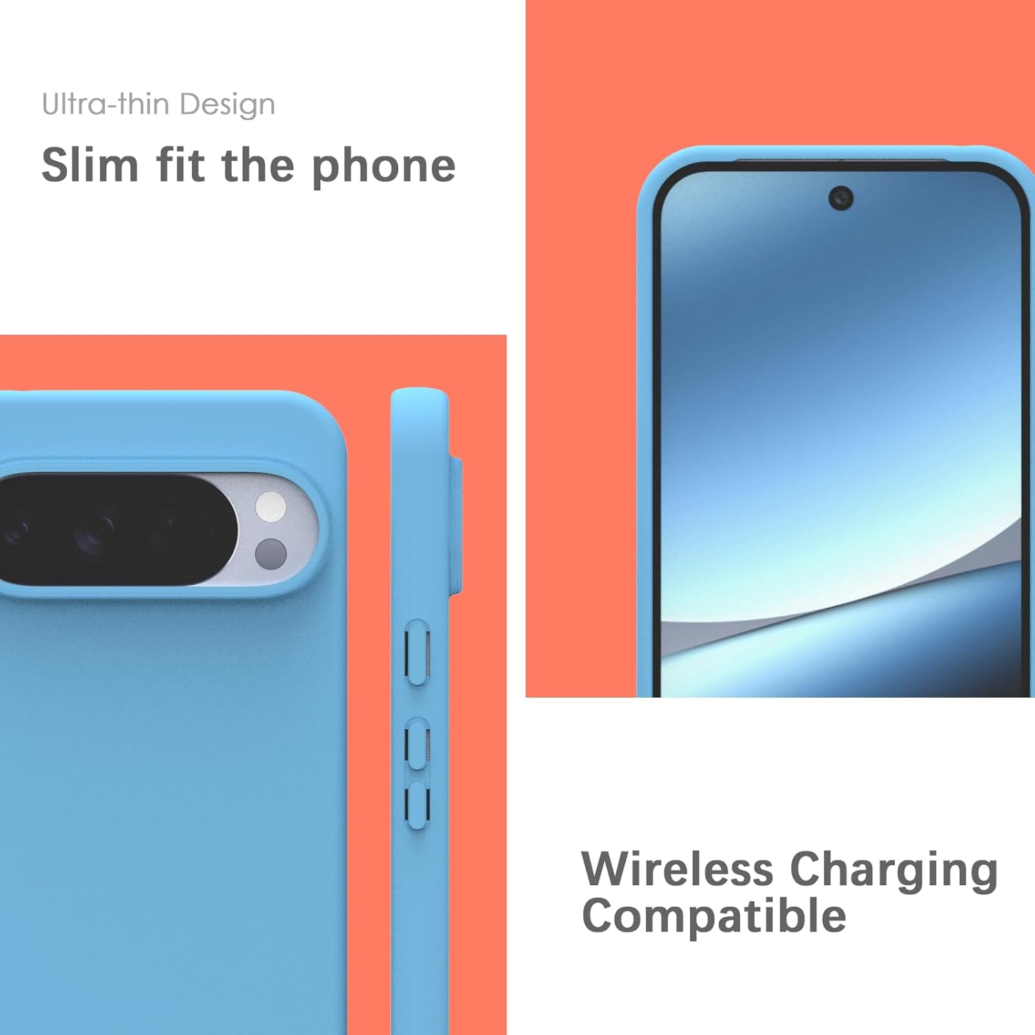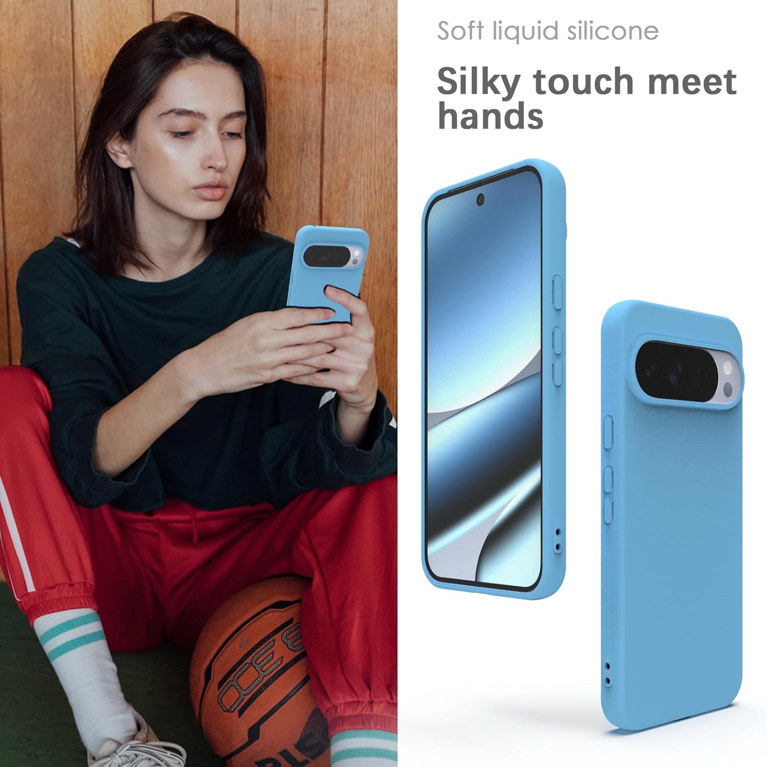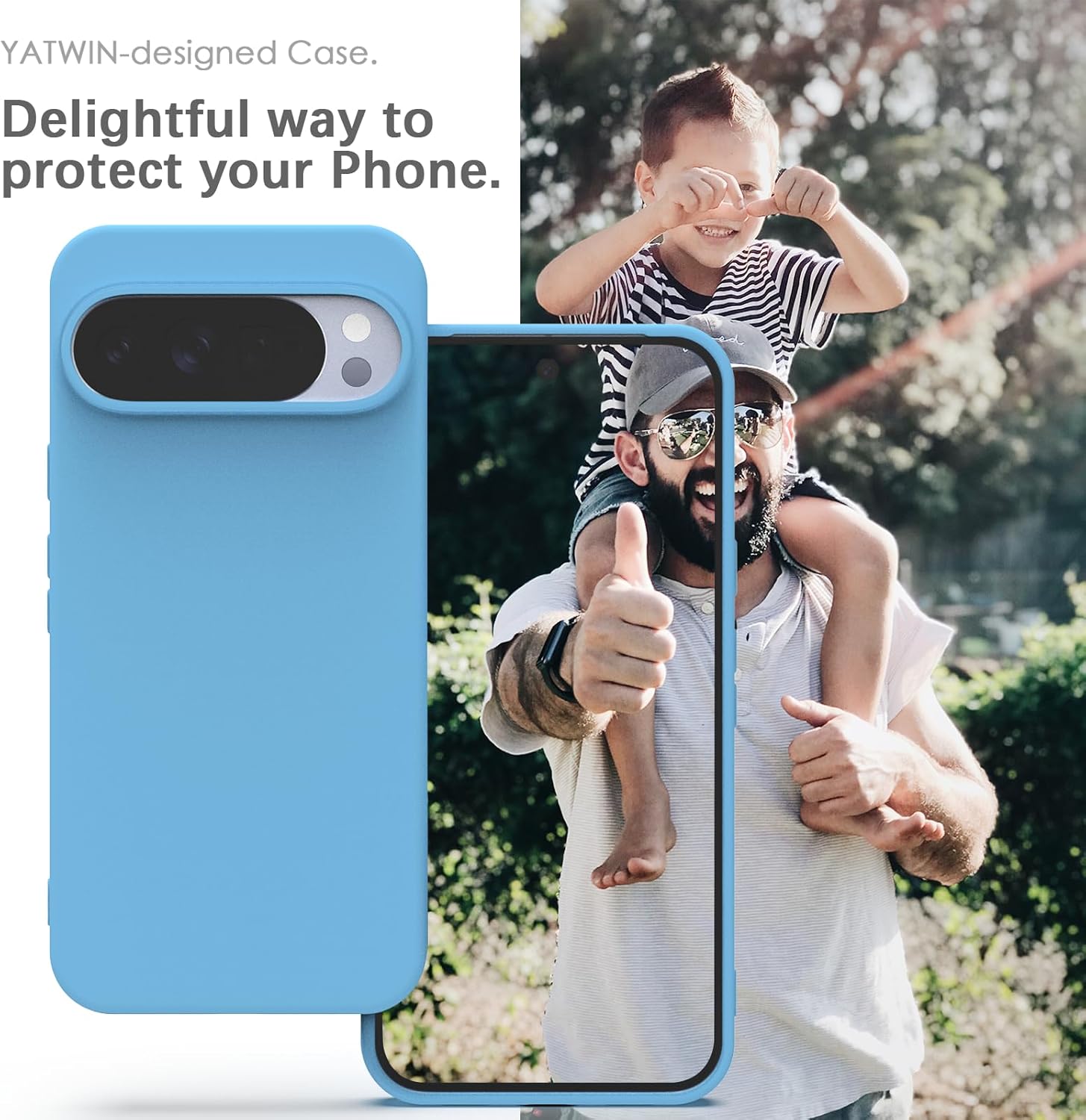 YATWIN Кейс за Google Pixel 10 Pro XL, Премиум силиконов калъф за мобилен телефон със защита на камерата, Копринен, Мек на допир, Ултра тънък, Удароустойчив, Устойчив на надраскване, Защитен калъф, Небесно син